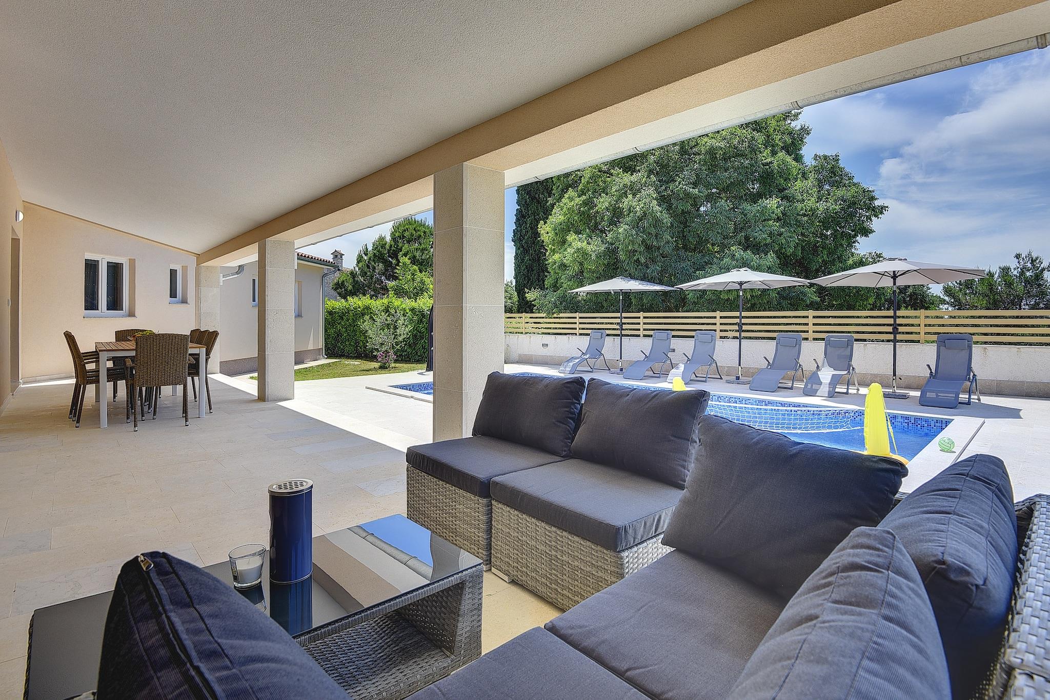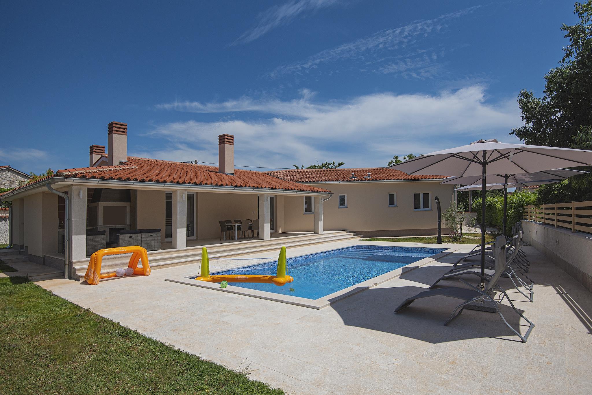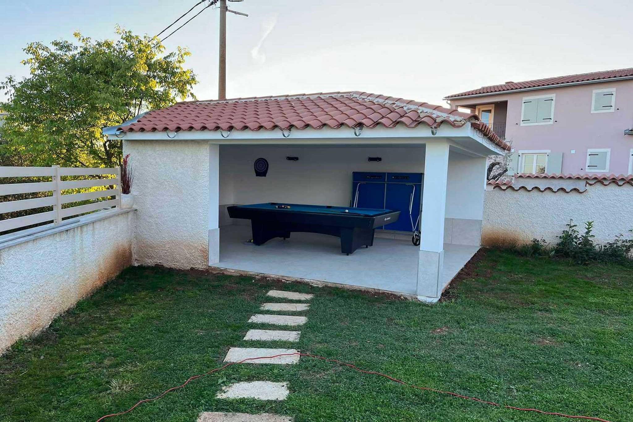 Stueetage: (Stue(dobbeltsovesofa, Fjernsyn(fladskærm, parabol), sofahjørne), Køkken(spisebord, elkedel, brødrister, komfur, kaffemaskine, ovn, mikrobølgeovn, opvaskemaskine , køle-fryseskab), Soveværelse med badeværelse(dobbeltseng(160 x 200 cm), Fjernsyn(fladskærm, parabol), bruser, håndvask, toilet, klimaanlæg), Soveværelse med badeværelse(dobbeltseng(160 x 200 cm), Fjernsyn(fladskærm, parabol), bruser, håndvask, toilet, klimaanlæg), Soveværelse med badeværelse(dobbeltseng(160 x 200 cm), Fjernsyn(fladskærm, parabol), bruser, håndvask, toilet, klimaanlæg), badeværelse(håndvask, toilet), terrasse(privat, 60 m2)) opholdsrum, tremmeseng, bruser(udendørs), vaskemaskine, patio, klimaanlæg, baggård(privat, indhegnet), terrasse, have(privat, indhegnet), cykelopbevaring, havemøbler, solstole, grill, parkering, Parasol, swimmingpool(privat), legeredskaber, bordtennisbord, dart, fodboldmål, biljard, strygebræt, strygejern, føntørrer, loungemøbler, playstation