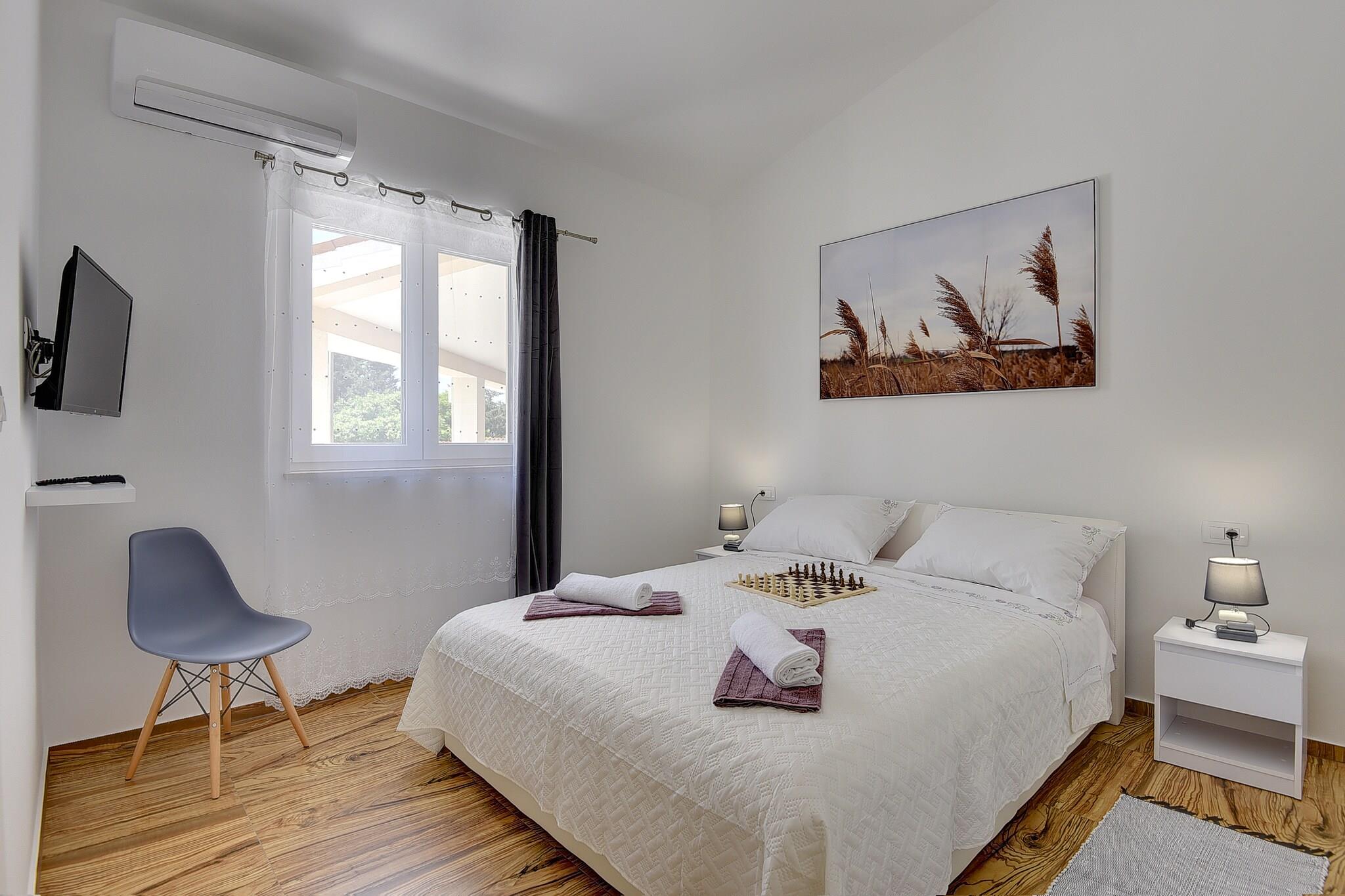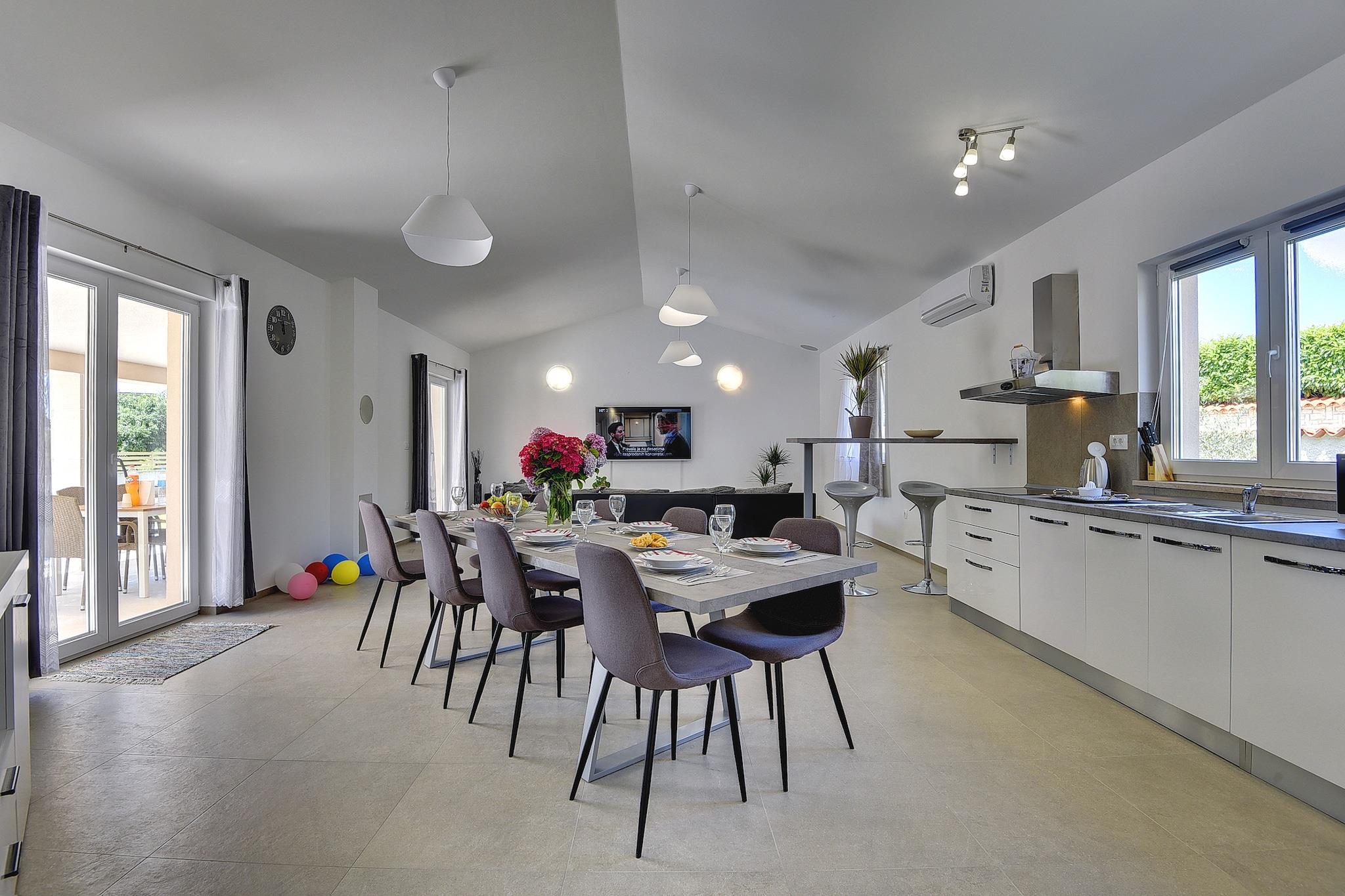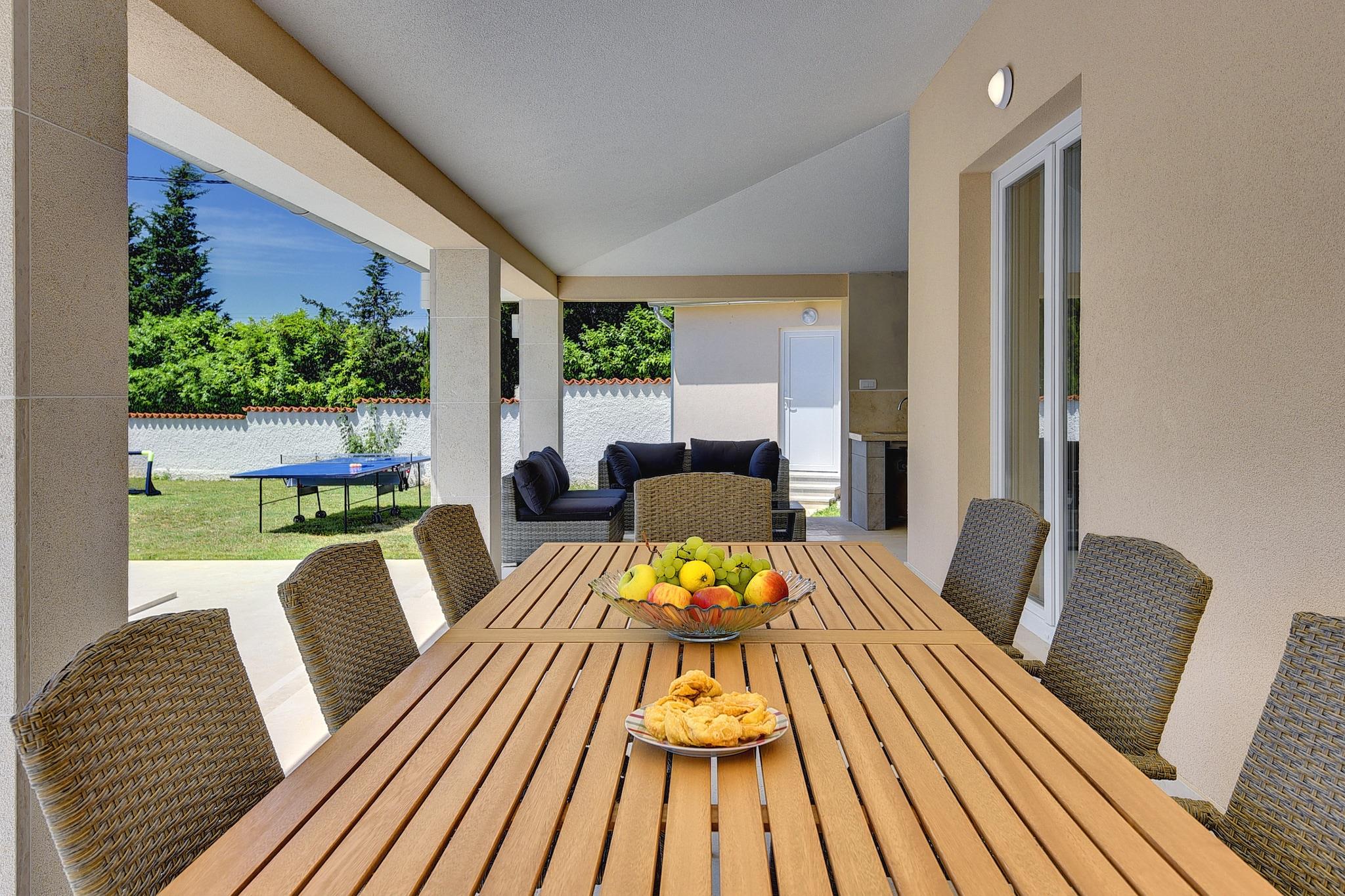Stueetage: (Stue(dobbeltsovesofa, Fjernsyn(fladskærm, parabol), sofahjørne), Køkken(spisebord, elkedel, brødrister, komfur, kaffemaskine, ovn, mikrobølgeovn, opvaskemaskine , køle-fryseskab), Soveværelse med badeværelse(dobbeltseng(160 x 200 cm), Fjernsyn(fladskærm, parabol), bruser, håndvask, toilet, klimaanlæg), Soveværelse med badeværelse(dobbeltseng(160 x 200 cm), Fjernsyn(fladskærm, parabol), bruser, håndvask, toilet, klimaanlæg), Soveværelse med badeværelse(dobbeltseng(160 x 200 cm), Fjernsyn(fladskærm, parabol), bruser, håndvask, toilet, klimaanlæg), badeværelse(håndvask, toilet), terrasse(privat, 60 m2)) opholdsrum, tremmeseng, bruser(udendørs), vaskemaskine, patio, klimaanlæg, baggård(privat, indhegnet), terrasse, have(privat, indhegnet), cykelopbevaring, havemøbler, solstole, grill, parkering, Parasol, swimmingpool(privat), legeredskaber, bordtennisbord, dart, fodboldmål, biljard, strygebræt, strygejern, føntørrer, loungemøbler, playstation