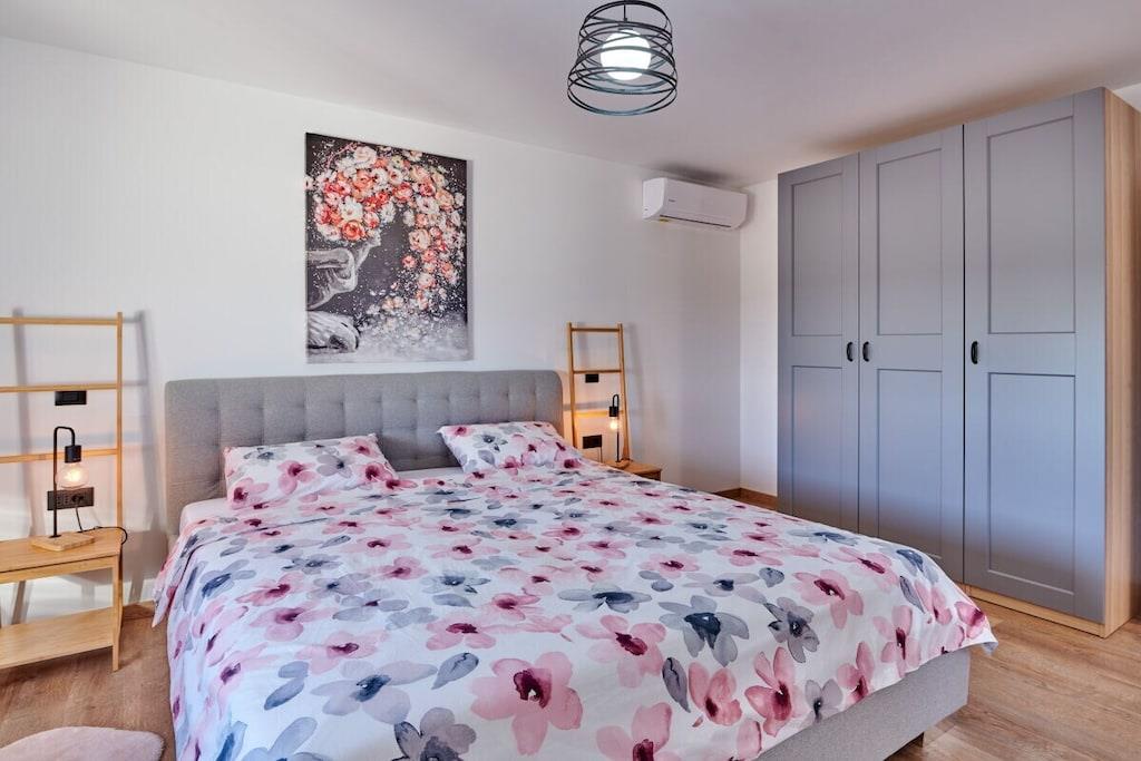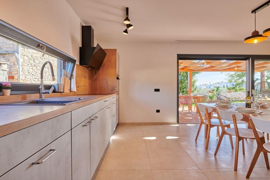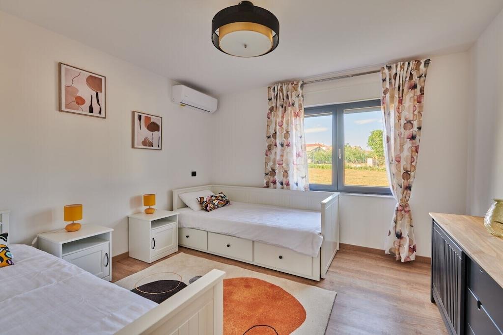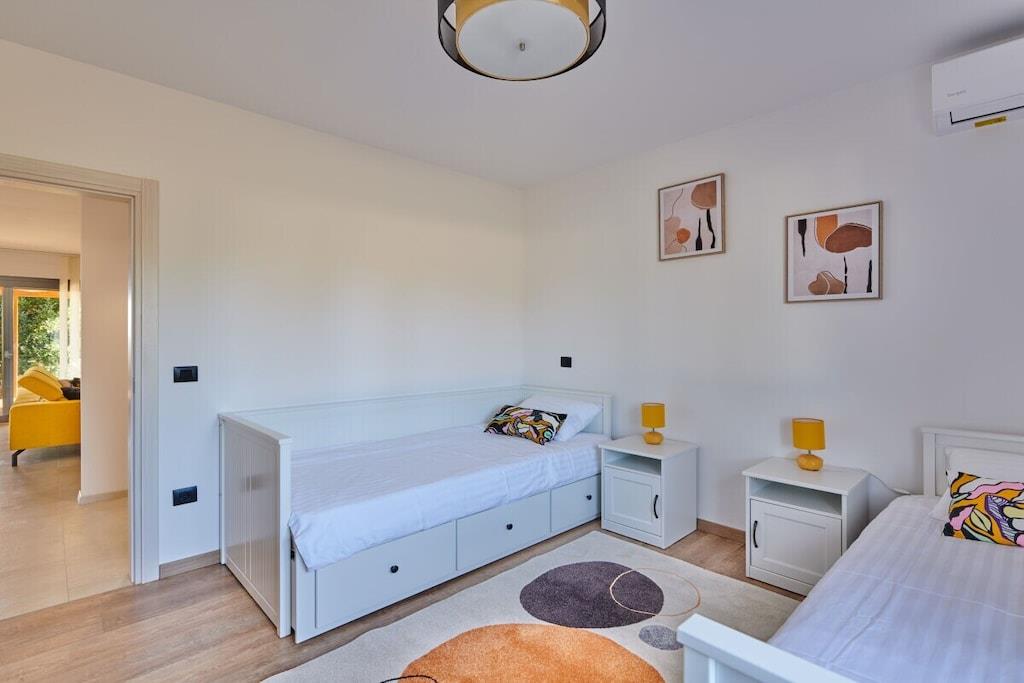 Denne villa kan prale af et generøst boligareal på 200 kvadratmeter og kan komfortabelt rumme op til 8 gæster. Med 4 soveværelser og 4 badeværelser er det det ideelle sted til en familieferie eller en afslapning med vennerne. Hvert soveværelse er udstyret med aircondition og komfortabel sengetøj, hvilket sikrer, at du sover godt efter en dag med at udforske området. Badeværelserne er moderne og stilfulde. Villaens fuldt udstyrede køkken inkluderer opvaskemaskine, elkedel og kaffemaskine, hvilket gør madlavning til en leg.