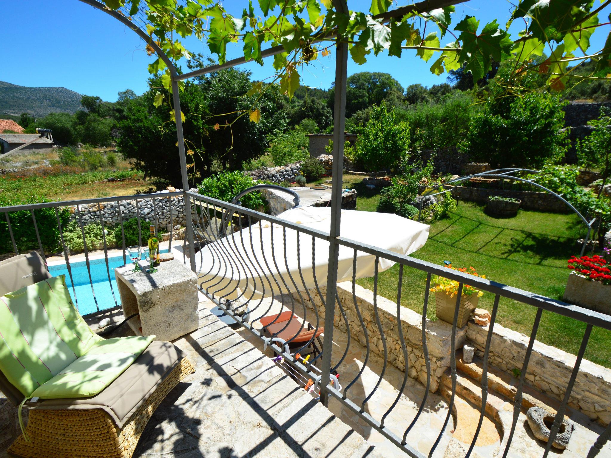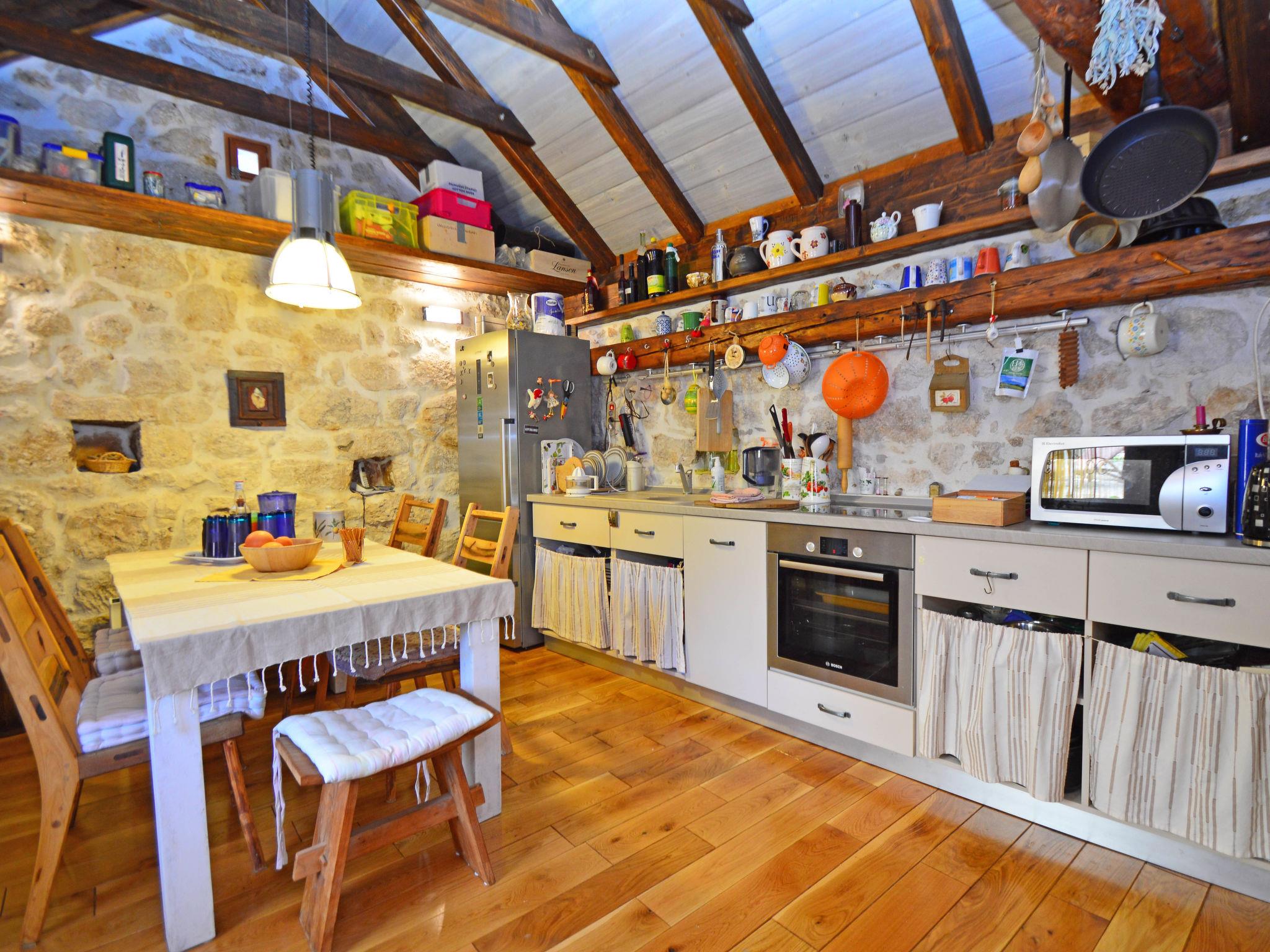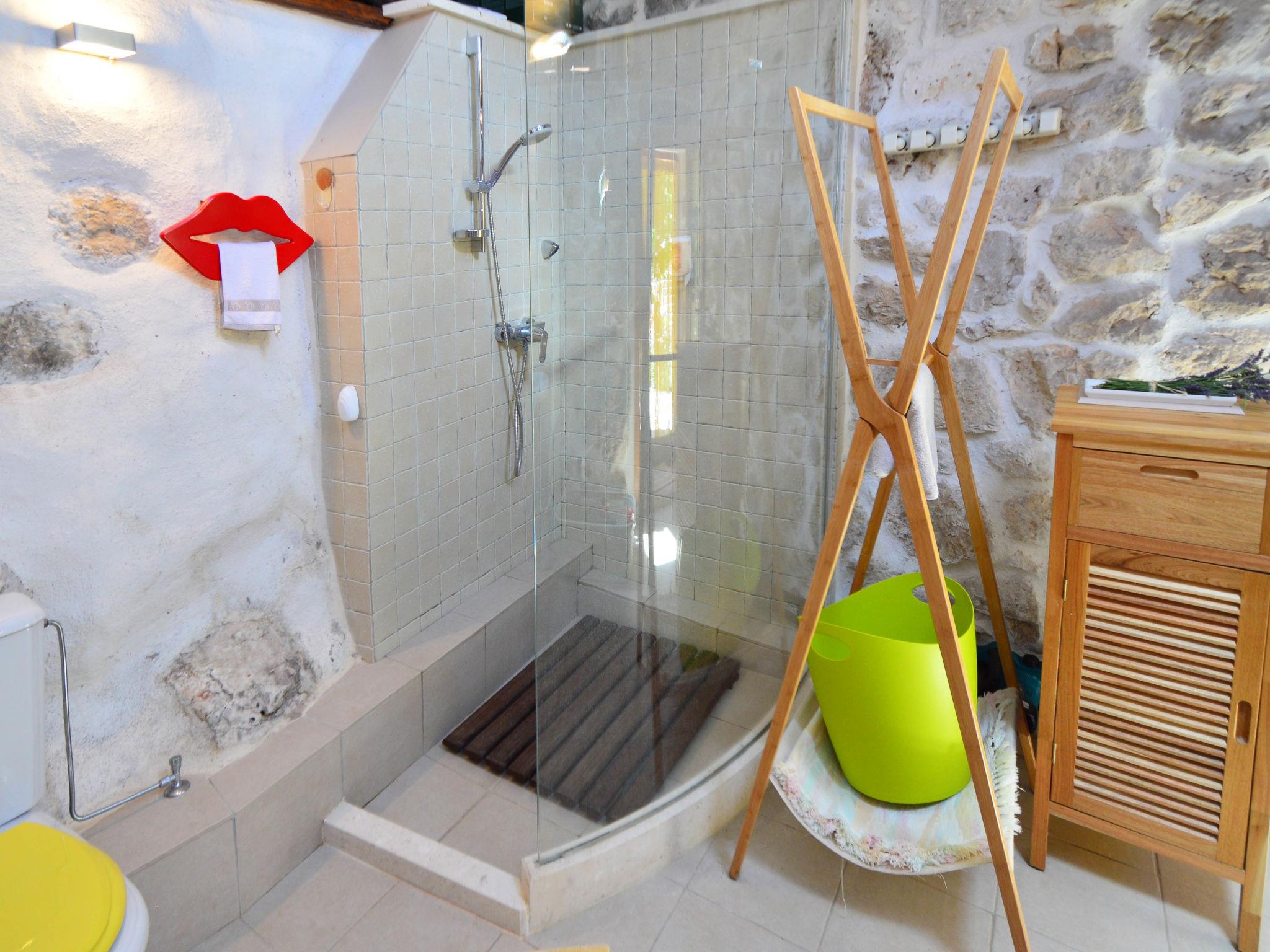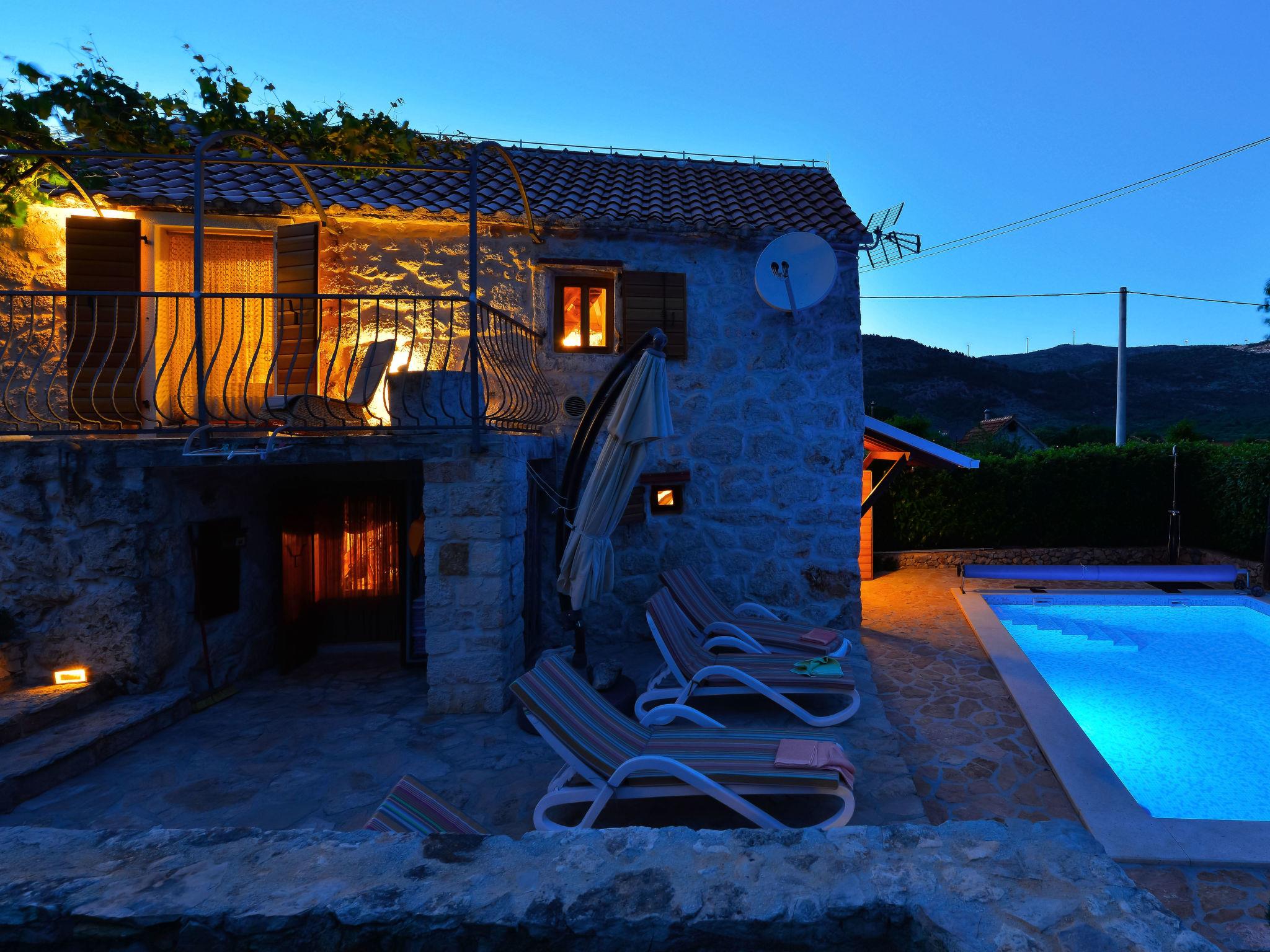 Single-family house "Home sweet home", 2 storeys. In the hamlet Vrsine 5 km from the centre of Marina, in a quiet, sunny position, 2.4 km from the sea, 2.4 km from the beach. Private: property 720 m2 (fenced), garden 20 m2 with lawn 220 m2, swimming pool angular (6 x 4 m, depth 150 cm, seasonal availability: 25.Apr. - 10.Oct.) with internal staircase. Outdoor shower, terrace (20 m2), garden furniture. In the house: internet access, sauna, washing machine. Breakfast possible on request (extra). Parking at the house on the premises. Shop 3.5 km, restaurant 2.5 km, bus stop 500 m, pebble beach 2.4 km. Tennis 5 km. The unit consists of 2 houses rented as one unit.