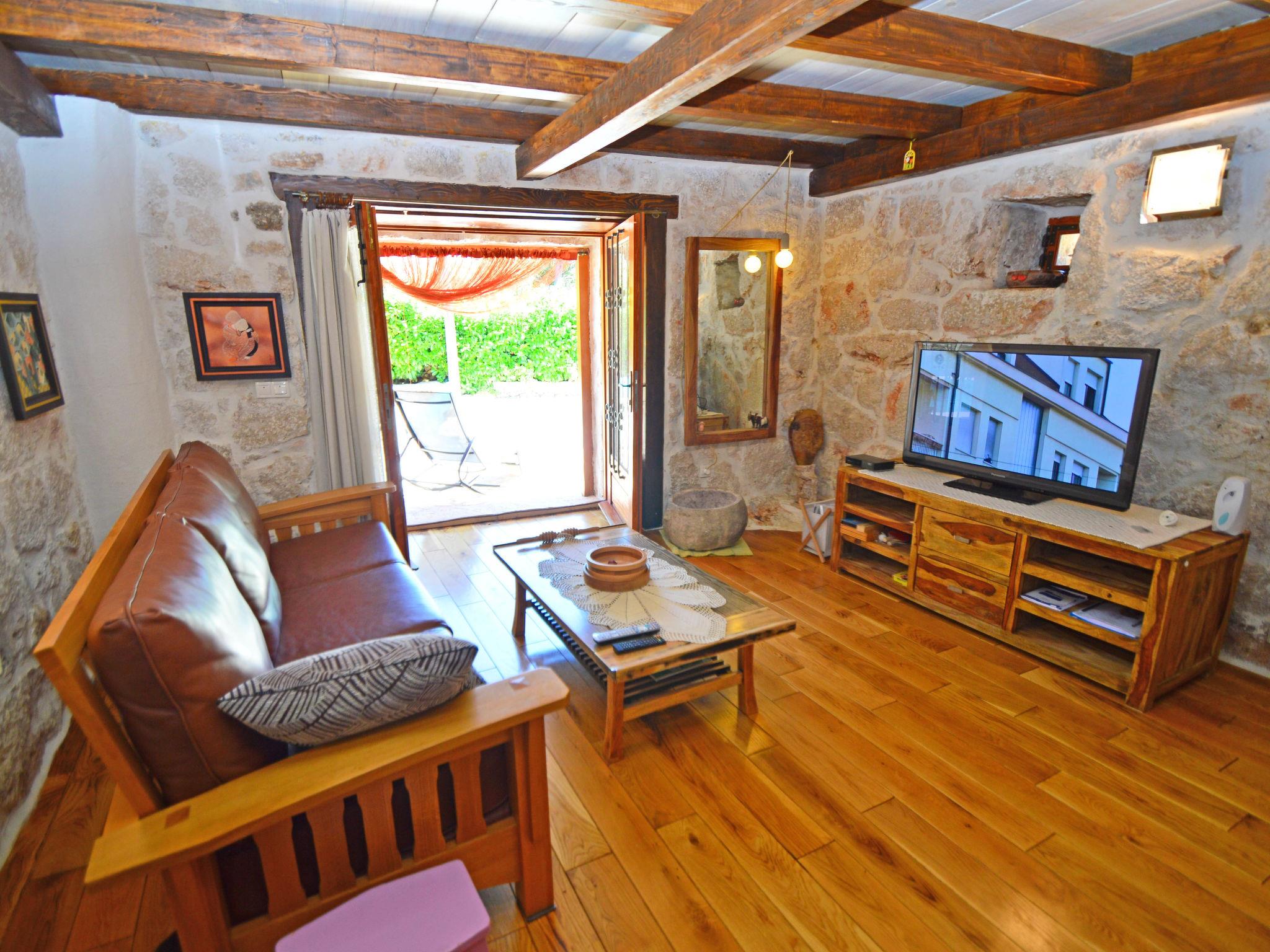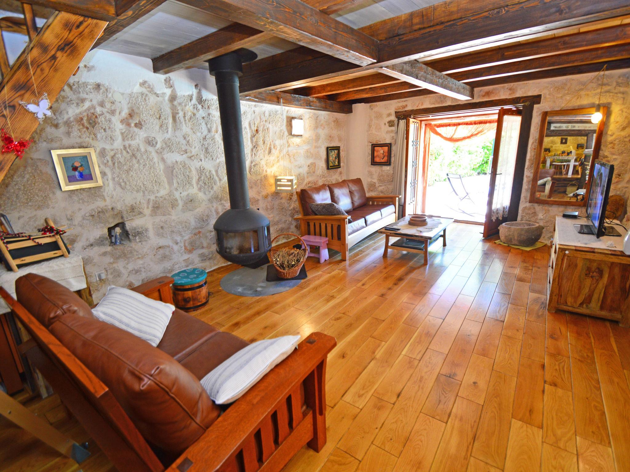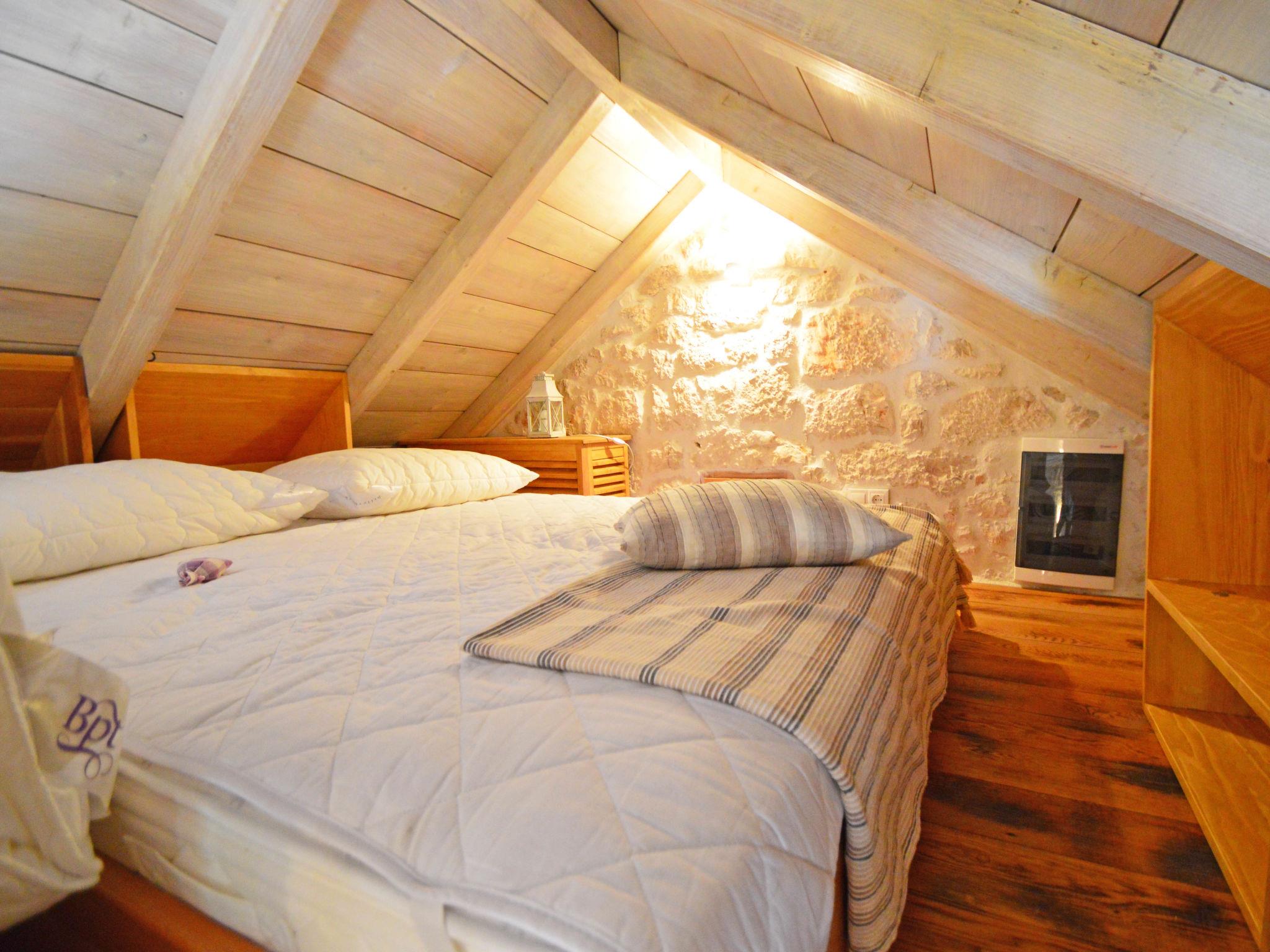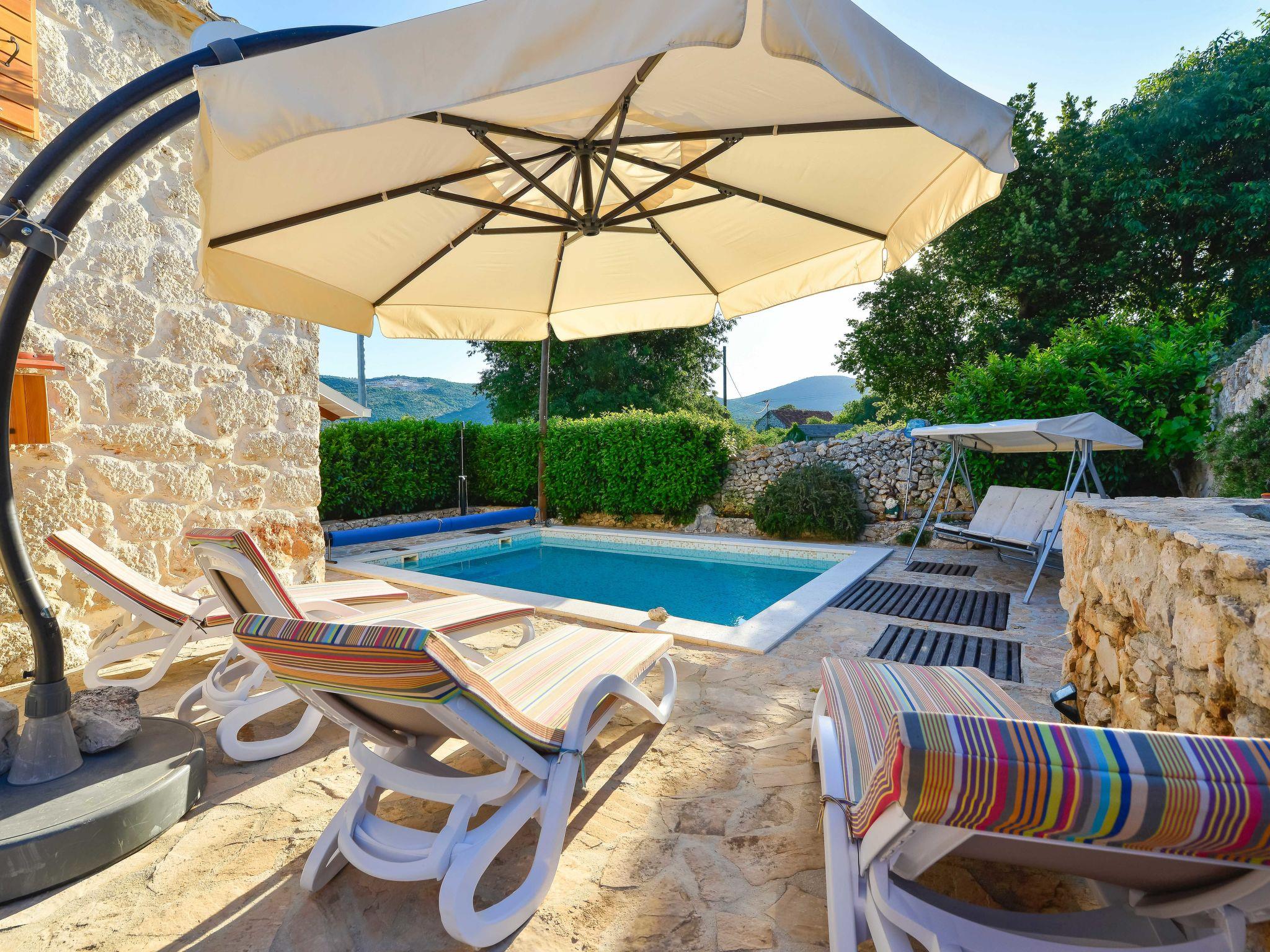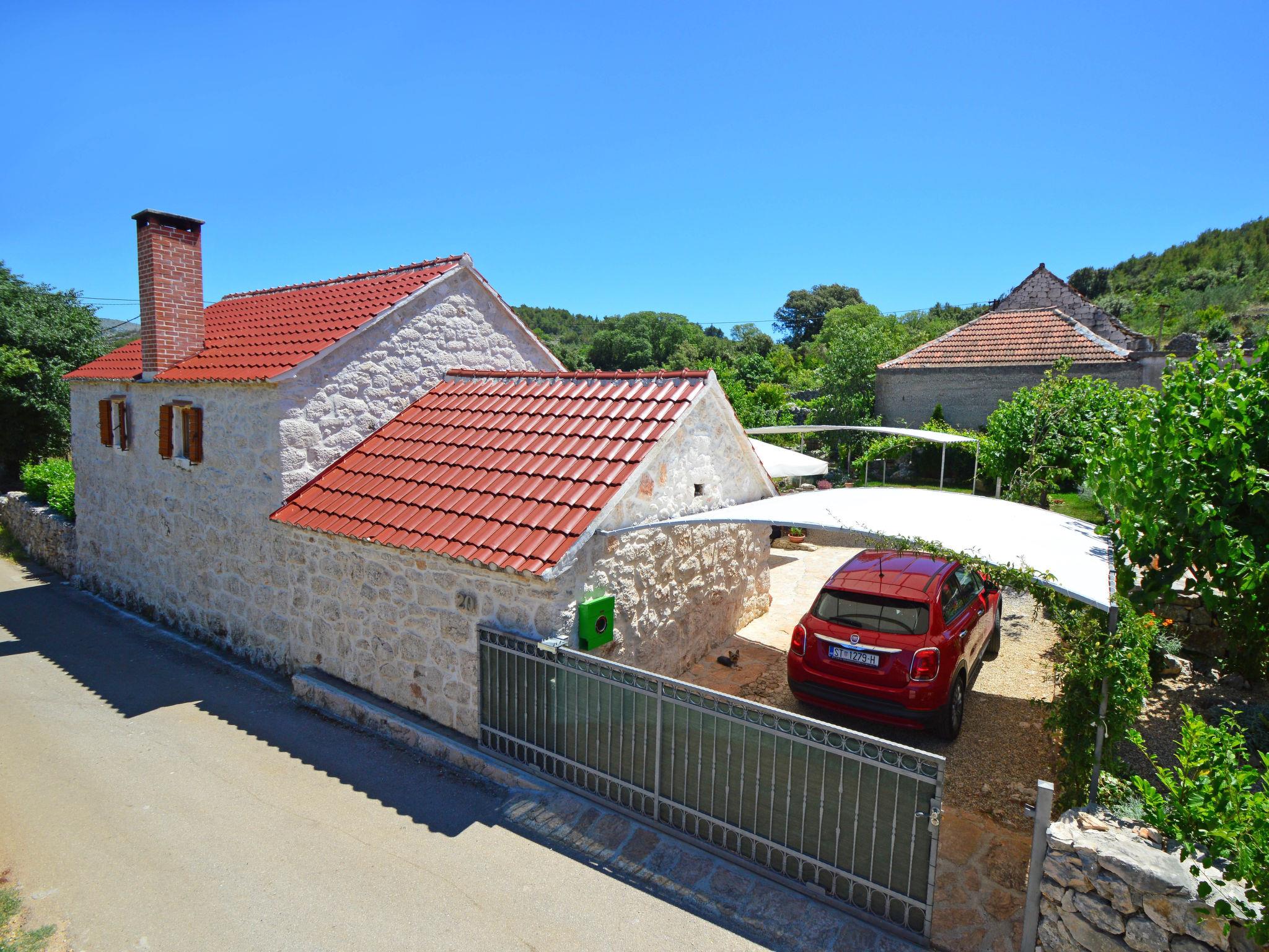 Single-family house "Home sweet home", 2 storeys. In the hamlet Vrsine 5 km from the centre of Marina, in a quiet, sunny position, 2.4 km from the sea, 2.4 km from the beach. Private: property 720 m2 (fenced), garden 20 m2 with lawn 220 m2, swimming pool angular (6 x 4 m, depth 150 cm, seasonal availability: 25.Apr. - 10.Oct.) with internal staircase. Outdoor shower, terrace (20 m2), garden furniture. In the house: internet access, sauna, washing machine. Breakfast possible on request (extra). Parking at the house on the premises. Shop 3.5 km, restaurant 2.5 km, bus stop 500 m, pebble beach 2.4 km. Tennis 5 km. The unit consists of 2 houses rented as one unit.