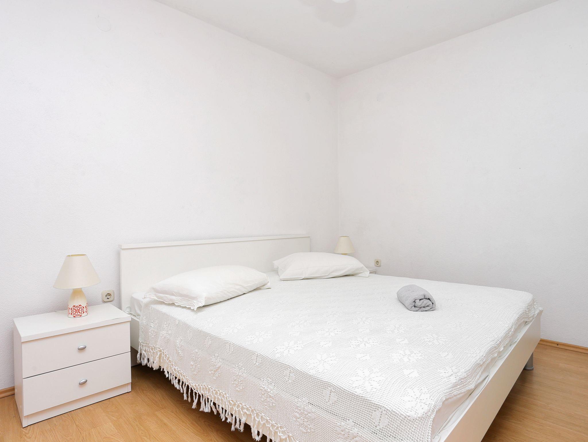 Ferienwohnung bietet Platz für 4 Gäste. Die Betten sind in Schlafzimmern, die es 1 gibt, und in Wohnzimmer, innerhalb einer Gesamtfläche von 40m2, angeordnet. Die Gäste haben einen eigenen Balkon zur Verfügung, auf der sie in warmen Sommernächten genießen können. Das Apartment bietet Meerblick. Es ist erlaubt, Speisen auf dem Gemeinschafts-Grill vorzubereiten. IM PREIS INBEGRIFFEN: Kurtaxe, Endreinigung, Klimatisierung, Parkplatz, Internet. VERBINDLICHE ZUSÄTZLICHE KOSTEN: Aufzahlung für Kurzaufenthalte (prozentualer Zuschlag pro Nächtigungsanzahl: 30% - 1, 20% - 2, 10% - 3). Die Verfügbarkeit zusätzlicher Dienstleistungen in Ihrem reservierten Termin und die Preise derselben (falls nicht aufgeführt) müssen im Voraus überprüft werden. Zusätzliche Dienstleistungen die in der Zahlungsaufforderung nicht aufgeführt sind werden direkt beim Vermieter bezahlt, angenommen der Gast nutzt auch diese. Ermäßigung auf den Grundpreis: Gratistag 14=13 (bei einem Aufenthalt von 14 Tagen oder mehr erhalten Sie einen Gratistag für den Aufenthalt bis 31.12.26).