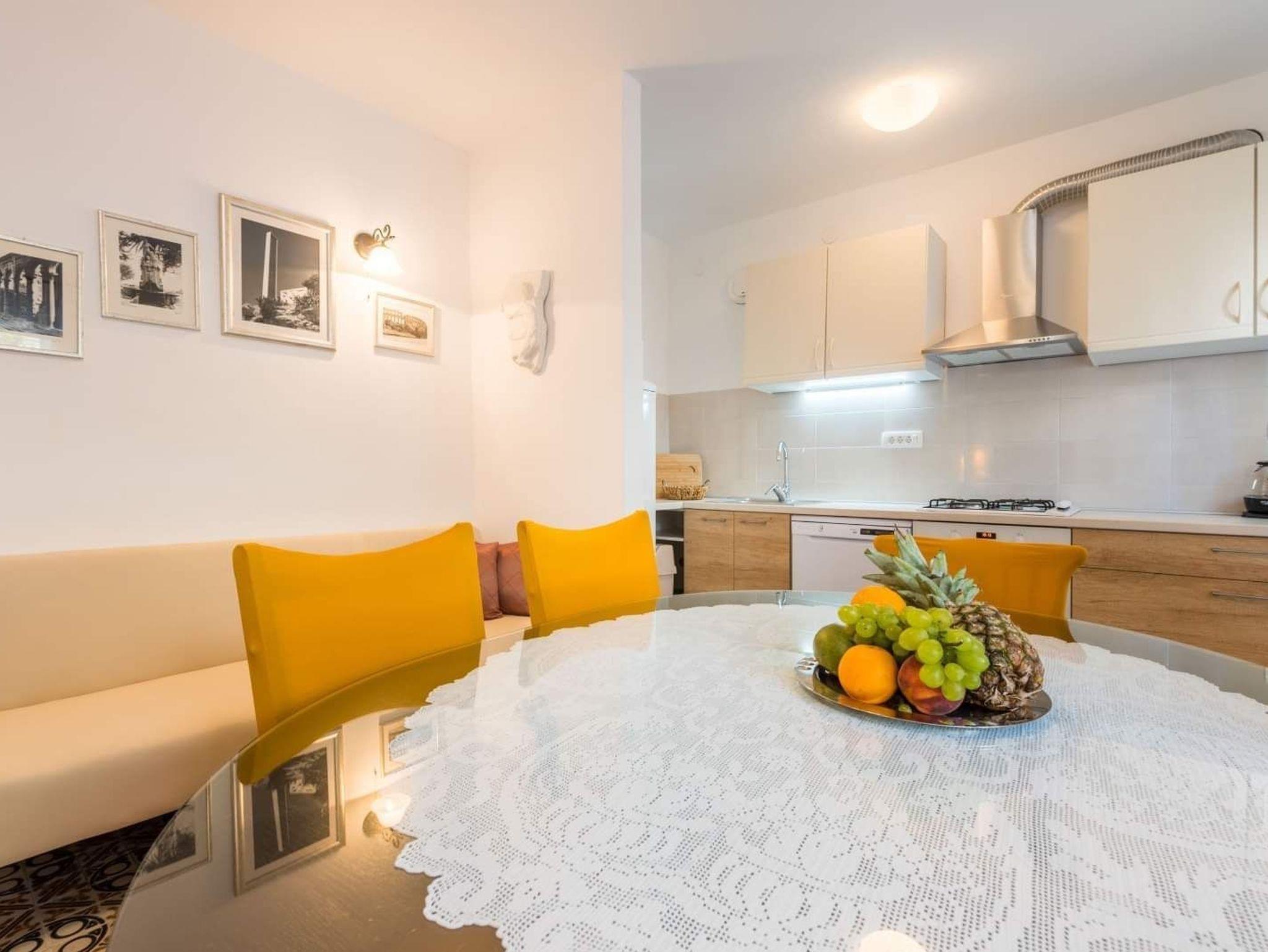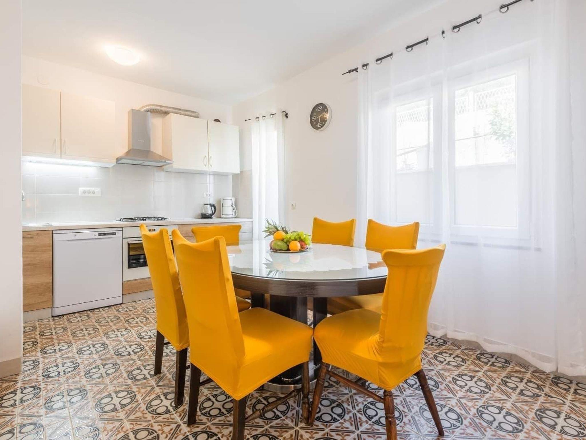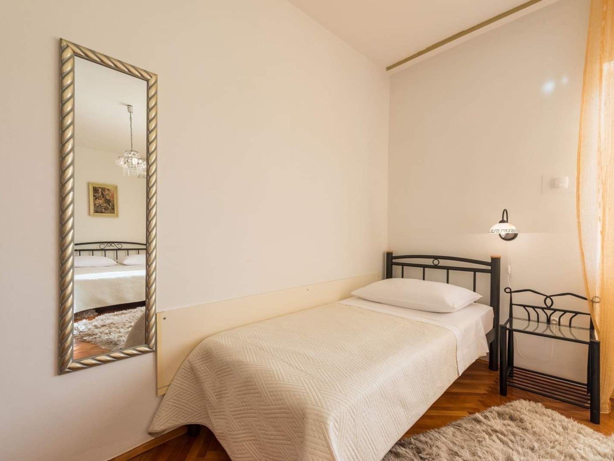 Ferienwohnung bietet Platz für 6 Gäste. Die Betten sind in Schlafzimmern, die es 2 gibt, innerhalb einer Gesamtfläche von 66m2, angeordnet. Die Gäste haben einen eigenen Balkon zur Verfügung, auf der sie in warmen Sommernächten genießen können. Das Apartment bietet Meerblick. Es ist erlaubt, Speisen auf dem Gemeinschafts-Grill vorzubereiten. In der Unterkunftseinheit besteht die Möglichkeit des Mitbringens von Haustieren gegen Aufpreis. IM PREIS INBEGRIFFEN: Kurtaxe, Endreinigung, Klimatisierung, Parkplatz, Internet, Kinderbett, Föhn, tragbarer Grill. UNVERBINDLICHE ZUSÄTZLICHE KOSTEN: Bootsanlegeplatz (5,00 € pro Nacht), Haustiere (5,00 € pro Nacht). Die Verfügbarkeit zusätzlicher Dienstleistungen in Ihrem reservierten Termin und die Preise derselben (falls nicht aufgeführt) müssen im Voraus überprüft werden. Zusätzliche Dienstleistungen die in der Zahlungsaufforderung nicht aufgeführt sind werden direkt beim Vermieter bezahlt, angenommen der Gast nutzt auch diese.