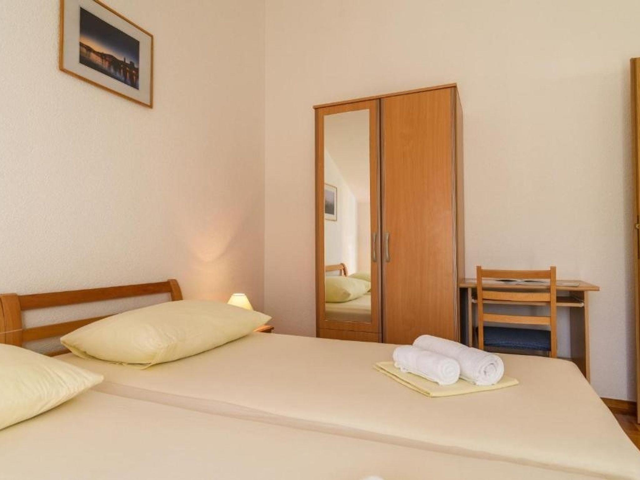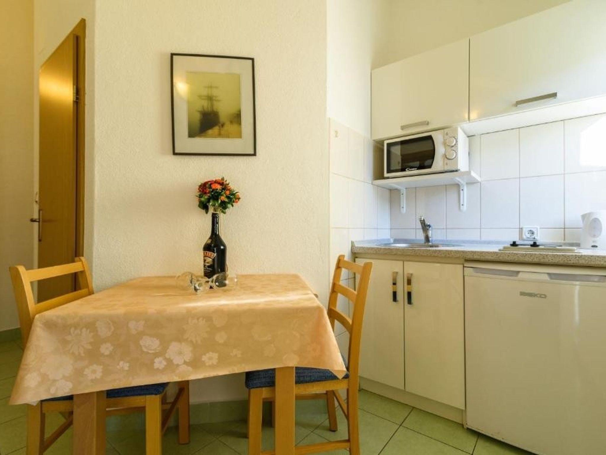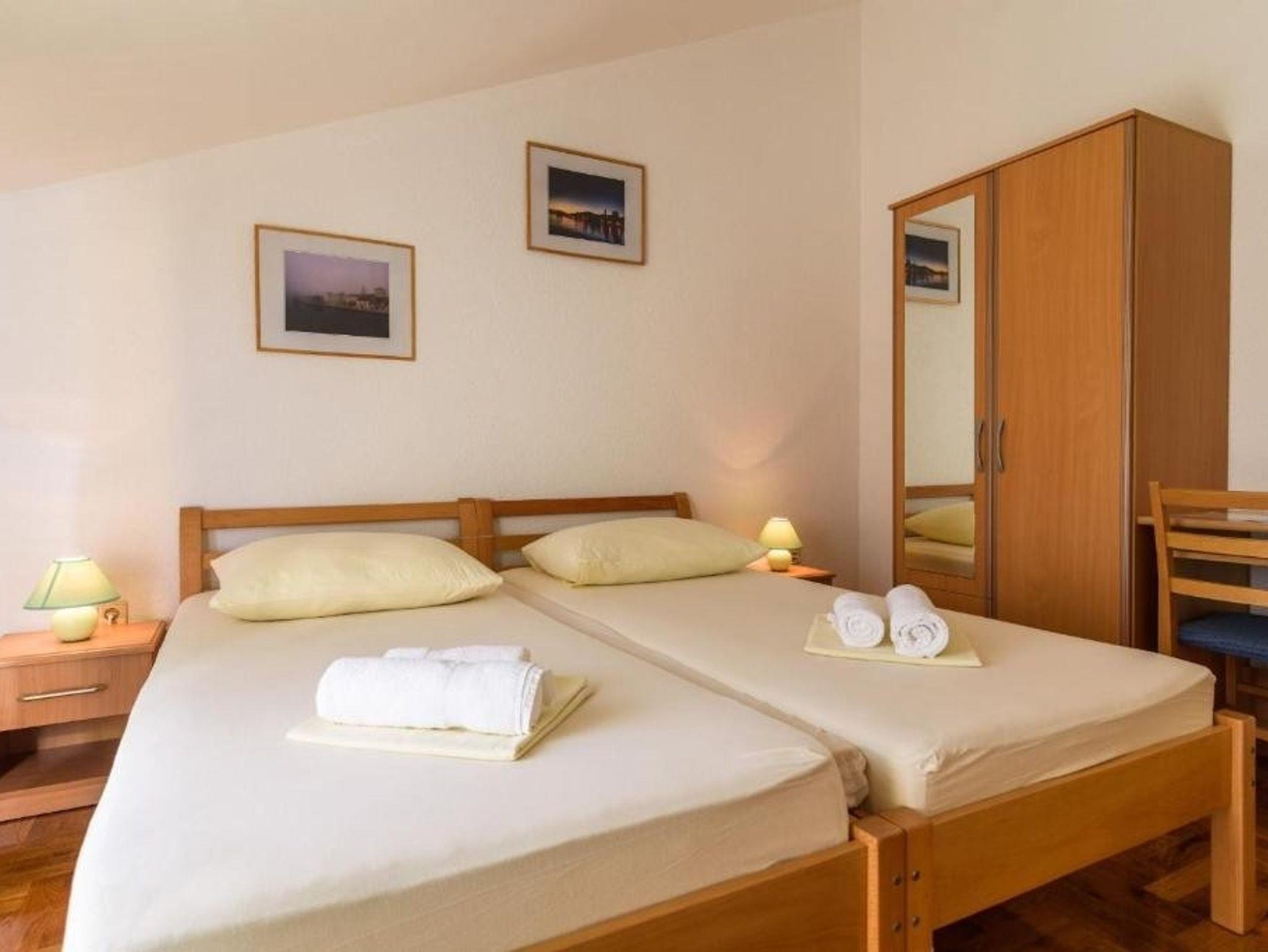 Ferienwohnung bietet Platz für 2 Gäste. Die Betten sind in Schlafzimmern, die es 1 gibt, innerhalb einer Gesamtfläche von 25m2, angeordnet. Die Gäste haben eine eigene Terrasse zur Verfügung, auf der sie in warmen Sommernächten genießen können. Es ist erlaubt, Speisen auf dem Gemeinschafts-Grill vorzubereiten. IM PREIS INBEGRIFFEN: Kurtaxe, Endreinigung, Klimatisierung, Parkplatz, Internet, Kinderbett, Föhn. VERBINDLICHE ZUSÄTZLICHE KOSTEN: Aufzahlung für Kurzaufenthalte (prozentualer Zuschlag pro Nächtigungsanzahl: 30% - 1, 20% - 2, 10% - 3). Die Verfügbarkeit zusätzlicher Dienstleistungen in Ihrem reservierten Termin und die Preise derselben (falls nicht aufgeführt) müssen im Voraus überprüft werden. Zusätzliche Dienstleistungen die in der Zahlungsaufforderung nicht aufgeführt sind werden direkt beim Vermieter bezahlt, angenommen der Gast nutzt auch diese. Ermäßigung auf den Grundpreis: Gratistag 21=19 (bei einem Aufenthalt von 21 Tagen oder mehr erhalten Sie 2 Gratistage für den Aufenthalt bis 31.12.26).