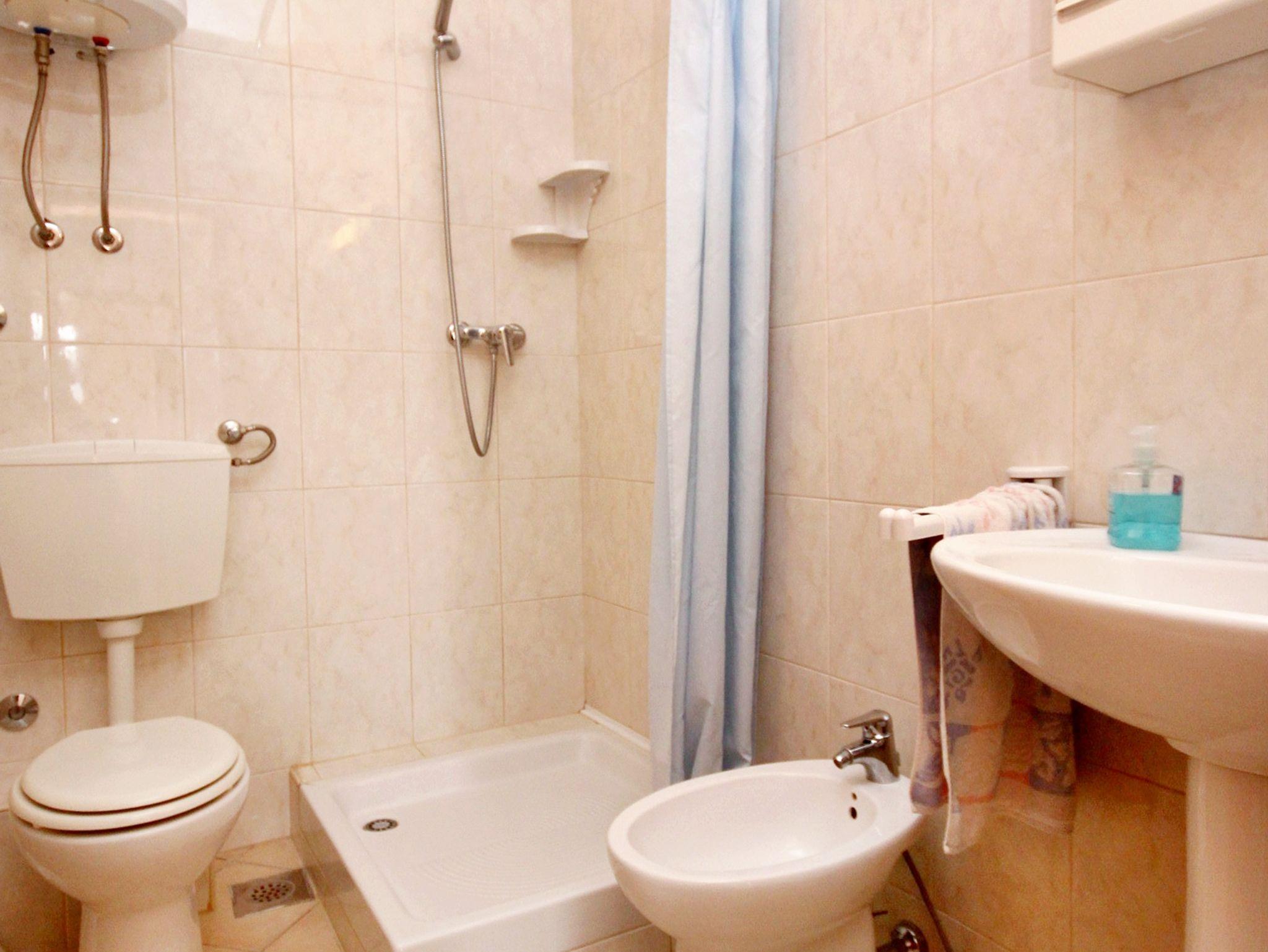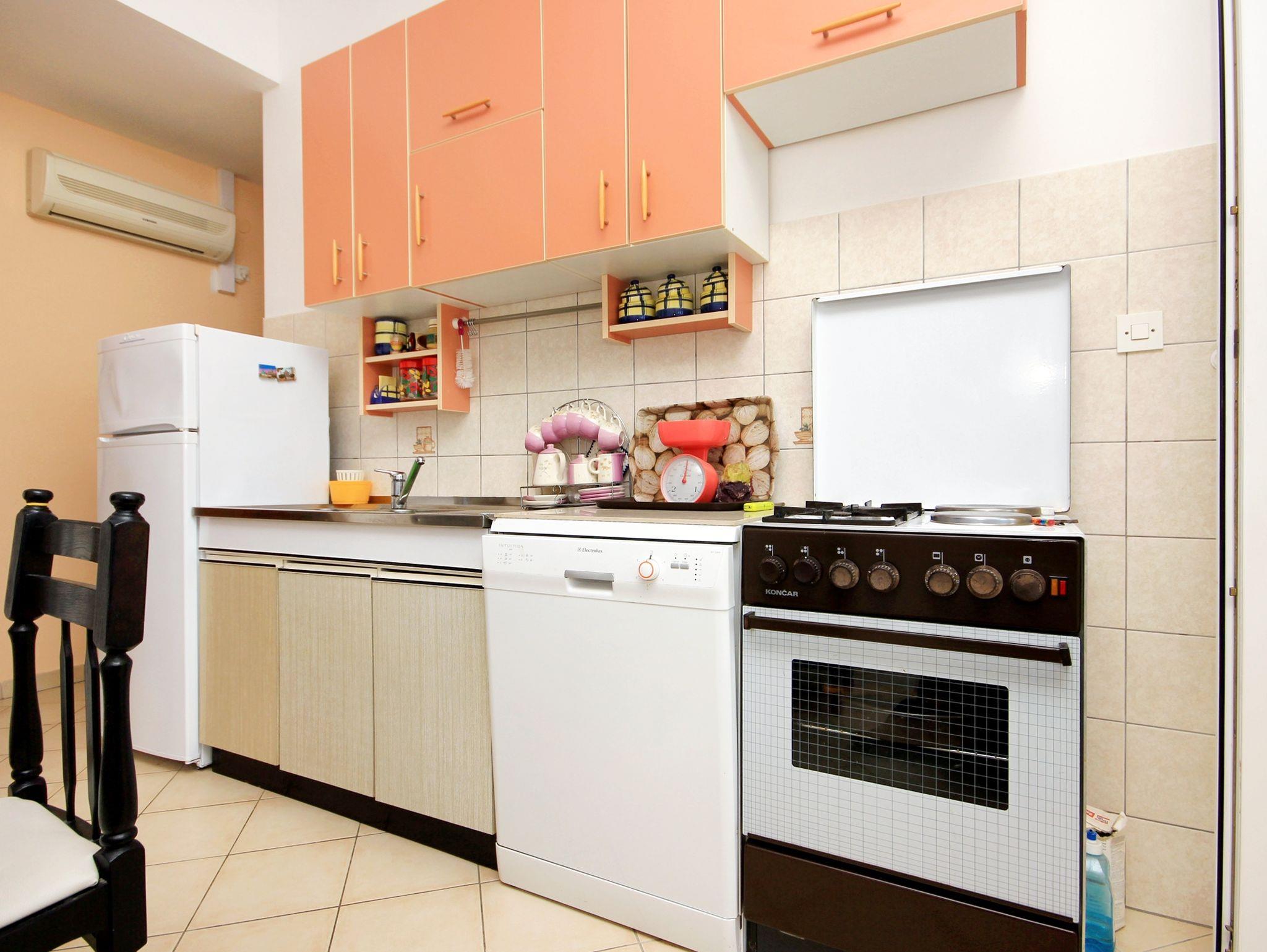 Ferienwohnung bietet Platz für 3 Gäste. Die Betten sind in Schlafzimmern, die es 1 gibt, und in Esszimmer, innerhalb einer Gesamtfläche von 30m2, angeordnet. Die Gäste haben einen eigenen Balkon zur Verfügung, auf der sie in warmen Sommernächten genießen können. Das Apartment bietet Meerblick. Es ist erlaubt, Speisen auf dem Gemeinschafts-Grill vorzubereiten. IM PREIS INBEGRIFFEN: Kurtaxe, Endreinigung, Klimatisierung, Parkplatz, Internet, Bügeleisen, Föhn. VERBINDLICHE ZUSÄTZLICHE KOSTEN: Aufzahlung für Kurzaufenthalte (prozentualer Zuschlag pro Nächtigungsanzahl: 30% - 1, 20% - 2, 10% - 3). Die Verfügbarkeit zusätzlicher Dienstleistungen in Ihrem reservierten Termin und die Preise derselben (falls nicht aufgeführt) müssen im Voraus überprüft werden. Zusätzliche Dienstleistungen die in der Zahlungsaufforderung nicht aufgeführt sind werden direkt beim Vermieter bezahlt, angenommen der Gast nutzt auch diese. Ermäßigung auf den Grundpreis: Gratistag 14=13 (bei einem Aufenthalt von 14 Tagen oder mehr erhalten Sie einen Gratistag für den Aufenthalt bis 31.12.26).