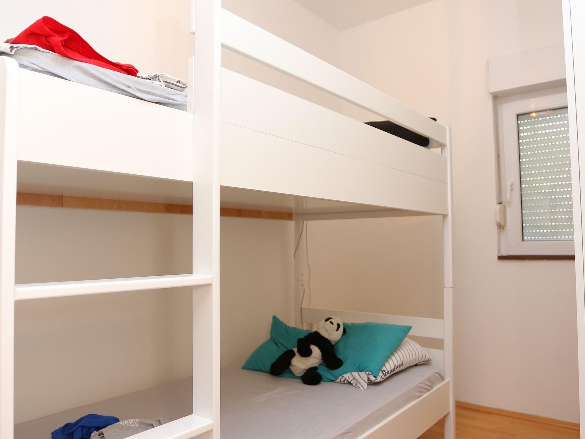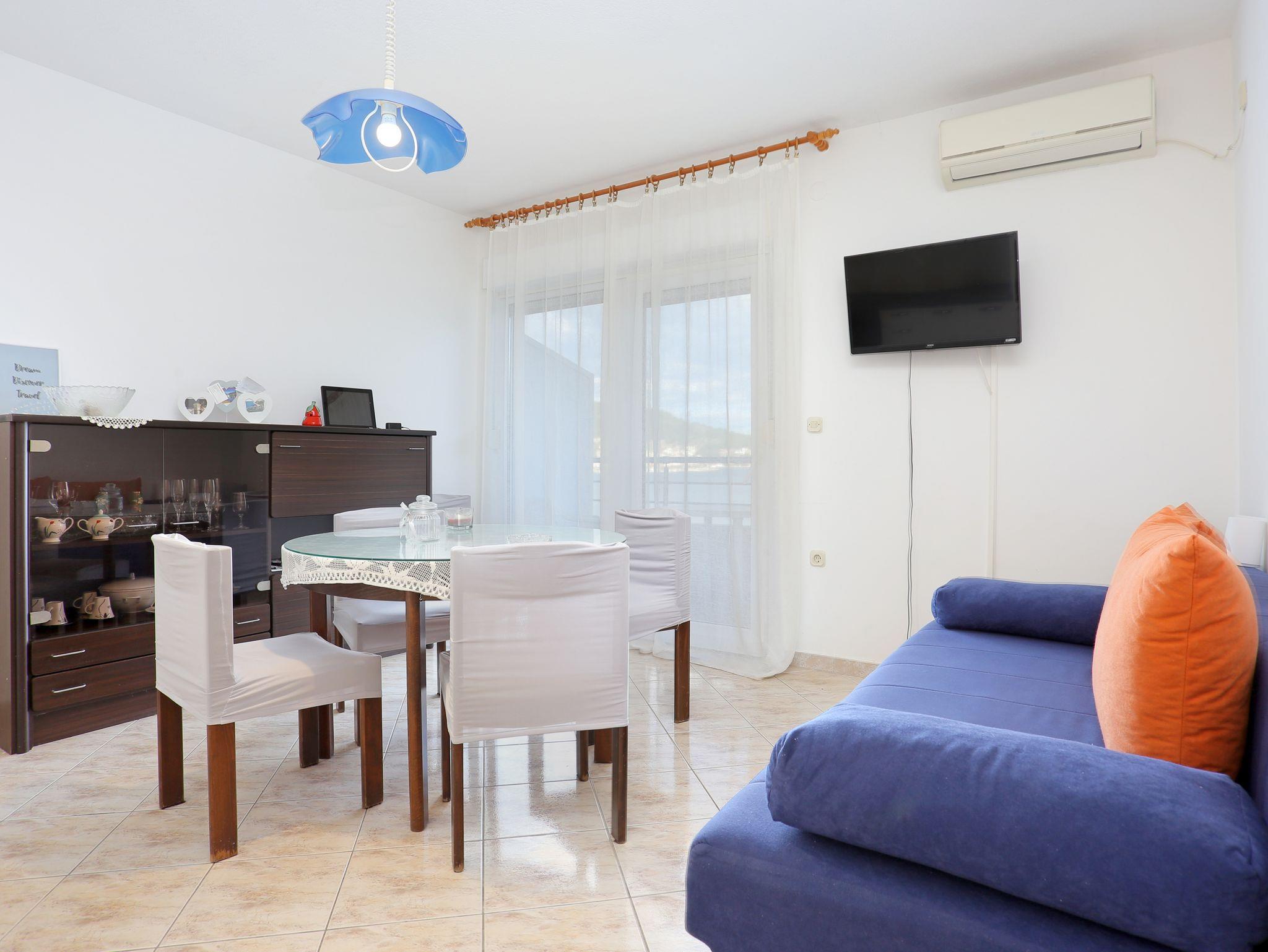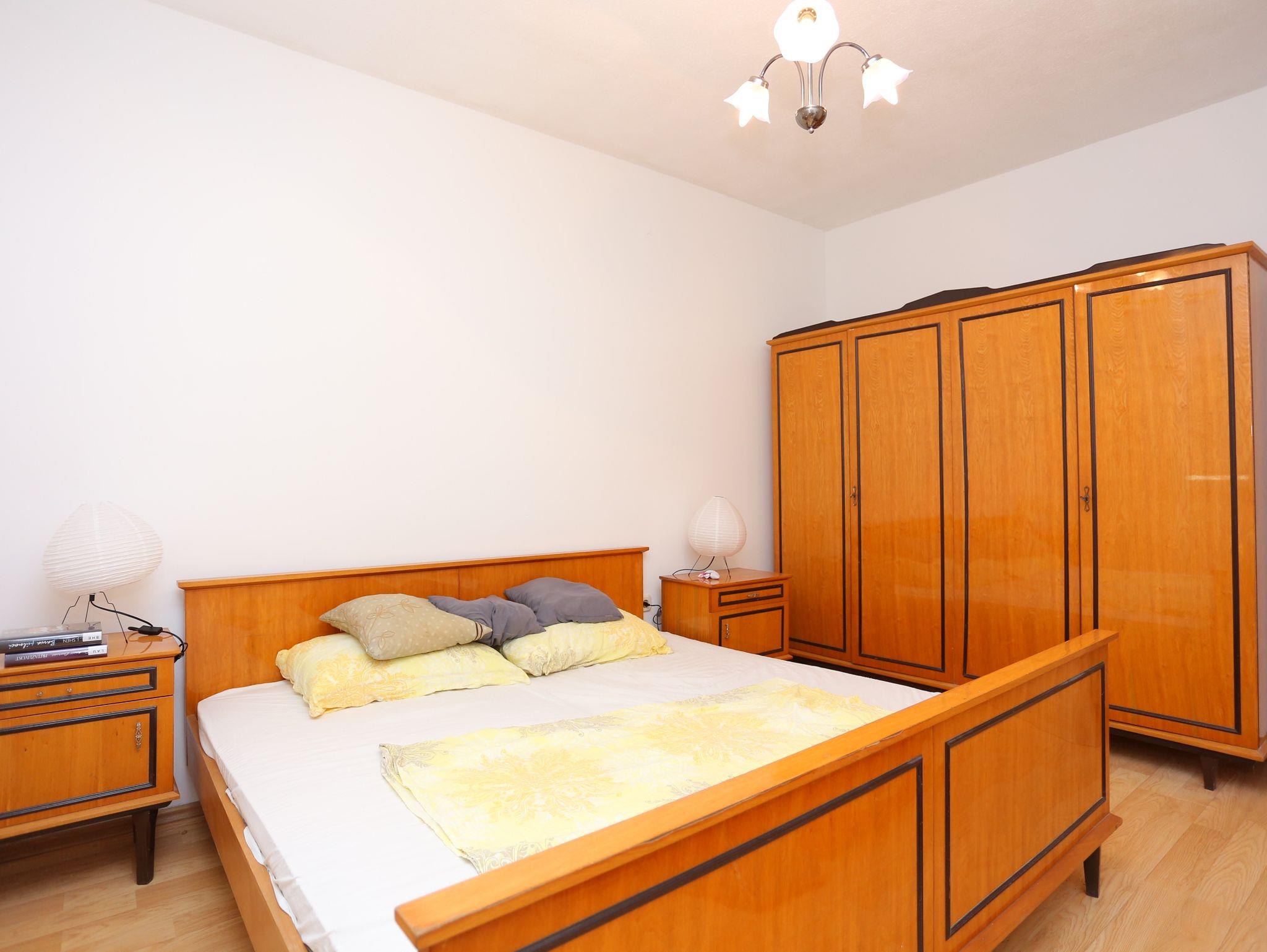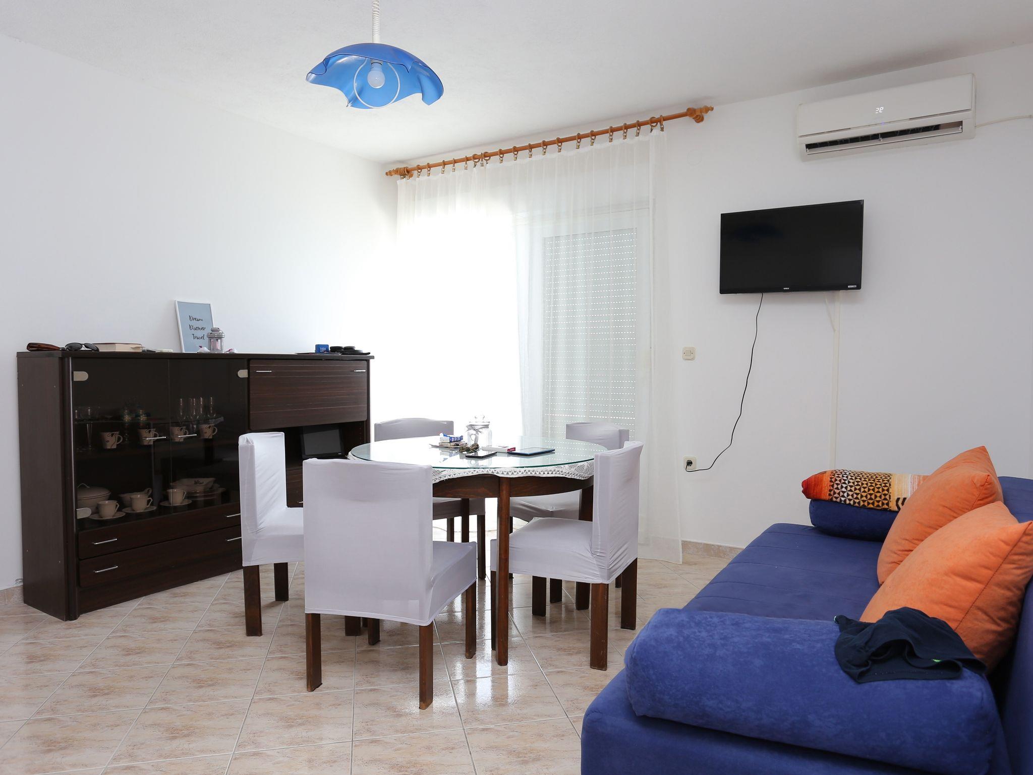 Ferienwohnung bietet Platz für 6 Gäste. Die Betten sind in Schlafzimmern, die es 2 gibt, und in Wohnzimmer, innerhalb einer Gesamtfläche von 48m2, angeordnet. Die Gäste haben eine eigene Terrasse zur Verfügung, auf der sie in warmen Sommernächten genießen können. Das Apartment bietet Meerblick. Für vollen Genuss und Entspannung gibt es einen privaten Grill für Gäste dieser Unterkunft. IM PREIS INBEGRIFFEN: Kurtaxe, Endreinigung, Klimatisierung, Parkplatz, Internet. VERBINDLICHE ZUSÄTZLICHE KOSTEN: Aufzahlung für Kurzaufenthalte (prozentualer Zuschlag pro Nächtigungsanzahl: 30% - 1, 20% - 2, 10% - 3). Die Verfügbarkeit zusätzlicher Dienstleistungen in Ihrem reservierten Termin und die Preise derselben (falls nicht aufgeführt) müssen im Voraus überprüft werden. Zusätzliche Dienstleistungen die in der Zahlungsaufforderung nicht aufgeführt sind werden direkt beim Vermieter bezahlt, angenommen der Gast nutzt auch diese. Ermäßigung auf den Grundpreis: Gratistag 14=13 (bei einem Aufenthalt von 14 Tagen oder mehr erhalten Sie einen Gratistag für den Aufenthalt bis 31.12.26).