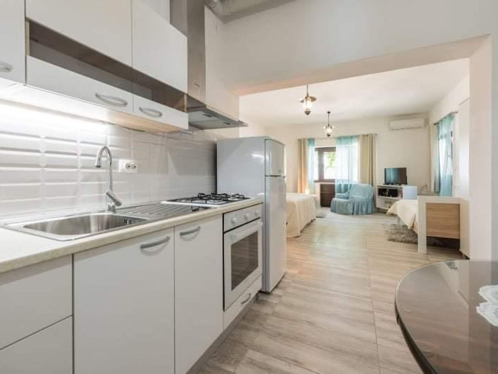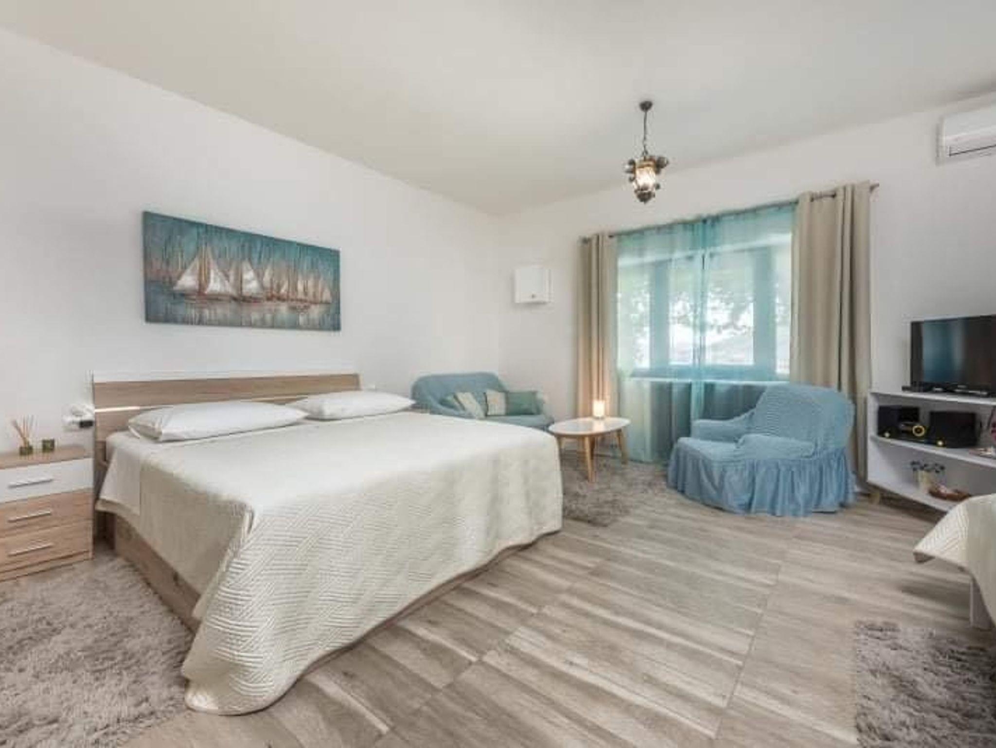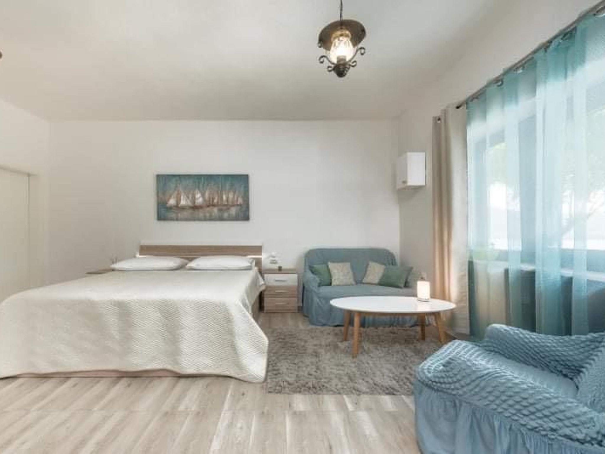 Studio bietet Platz für 3 Gäste. Die Betten sind in Schlafzimmern, die es 1 gibt, innerhalb einer Gesamtfläche von 40m2, angeordnet. Die Gäste haben eine eigene Terrasse zur Verfügung, auf der sie in warmen Sommernächten genießen können. Das Studio-Apartment bietet Meerblick. Für vollen Genuss und Entspannung gibt es einen privaten Grill für Gäste dieser Unterkunft. In der Unterkunftseinheit besteht die Möglichkeit des Mitbringens von Haustieren gegen Aufpreis. IM PREIS INBEGRIFFEN: Kurtaxe, Endreinigung, Klimatisierung, Parkplatz, Internet, Kinderbett, Föhn, tragbarer Grill. UNVERBINDLICHE ZUSÄTZLICHE KOSTEN: Bootsanlegeplatz (5,00 € pro Nacht), Haustiere (5,00 € pro Nacht). Die Verfügbarkeit zusätzlicher Dienstleistungen in Ihrem reservierten Termin und die Preise derselben (falls nicht aufgeführt) müssen im Voraus überprüft werden. Zusätzliche Dienstleistungen die in der Zahlungsaufforderung nicht aufgeführt sind werden direkt beim Vermieter bezahlt, angenommen der Gast nutzt auch diese.