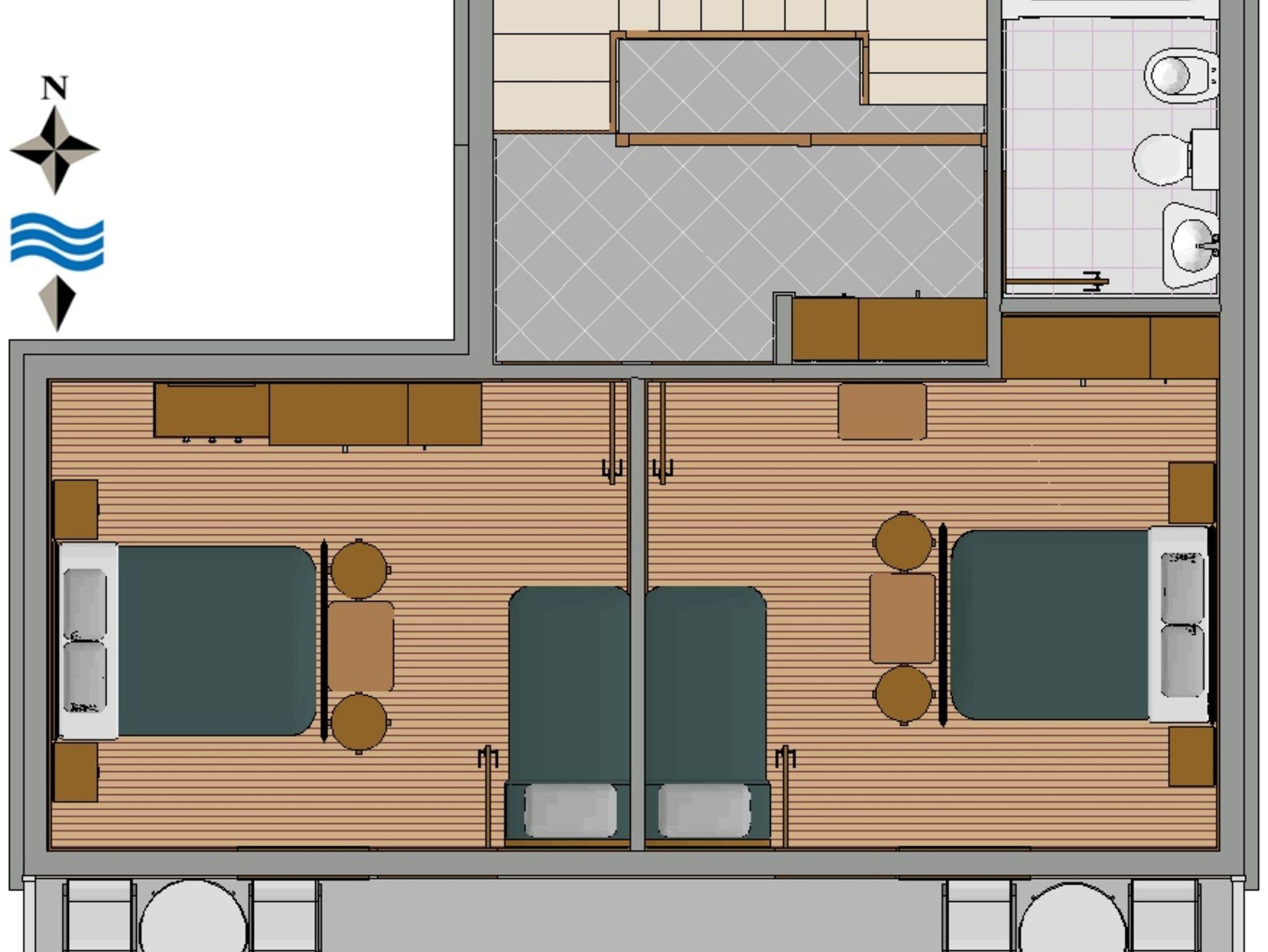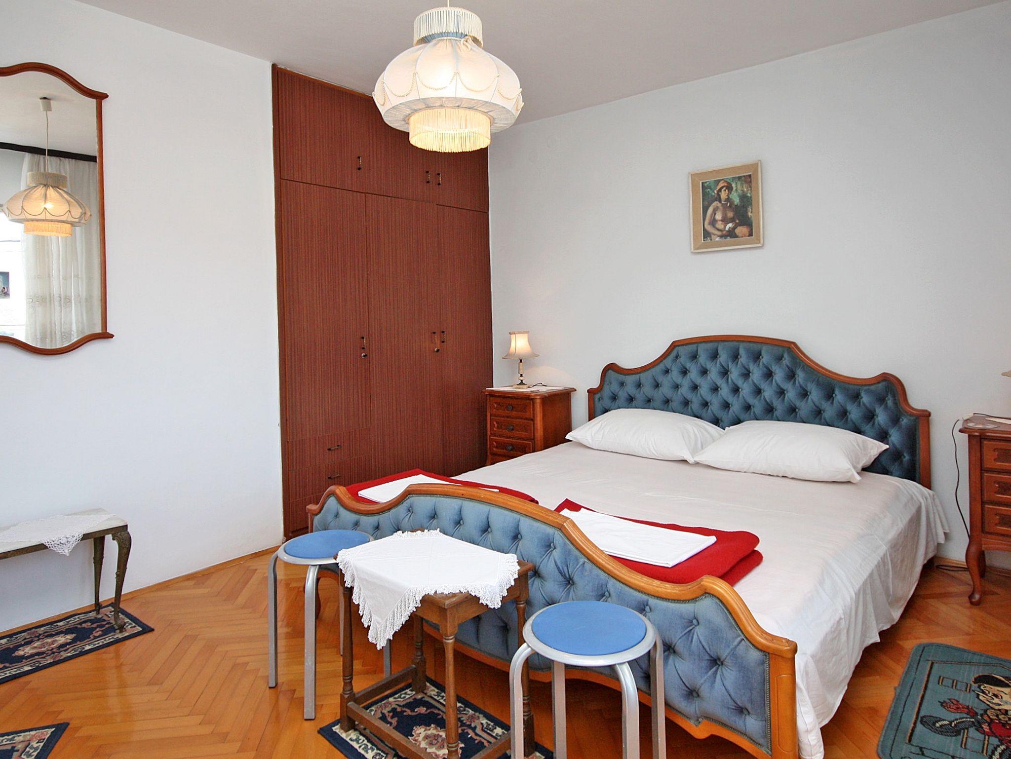 Ferienwohnung bietet Platz für 6 Gäste. Die Betten sind in Schlafzimmern, die es 2 gibt, innerhalb einer Gesamtfläche von 87m2, angeordnet. Die Gäste haben eine eigene Terrasse zur Verfügung, auf der sie in warmen Sommernächten genießen können. Das Apartment bietet Meerblick. Es ist erlaubt, Speisen auf dem Gemeinschafts-Grill vorzubereiten. IM PREIS INBEGRIFFEN: Kurtaxe, Endreinigung, Klimatisierung, Parkplatz, Internet, Bügeleisen, Bügelbrett. VERBINDLICHE ZUSÄTZLICHE KOSTEN: Aufzahlung für Kurzaufenthalte (prozentualer Zuschlag pro Nächtigungsanzahl: 30% - 1, 20% - 2, 10% - 3). UNVERBINDLICHE ZUSÄTZLICHE KOSTEN: Wäschewaschen (5,00 € Waschen). Die Verfügbarkeit zusätzlicher Dienstleistungen in Ihrem reservierten Termin und die Preise derselben (falls nicht aufgeführt) müssen im Voraus überprüft werden. Zusätzliche Dienstleistungen die in der Zahlungsaufforderung nicht aufgeführt sind werden direkt beim Vermieter bezahlt, angenommen der Gast nutzt auch diese.