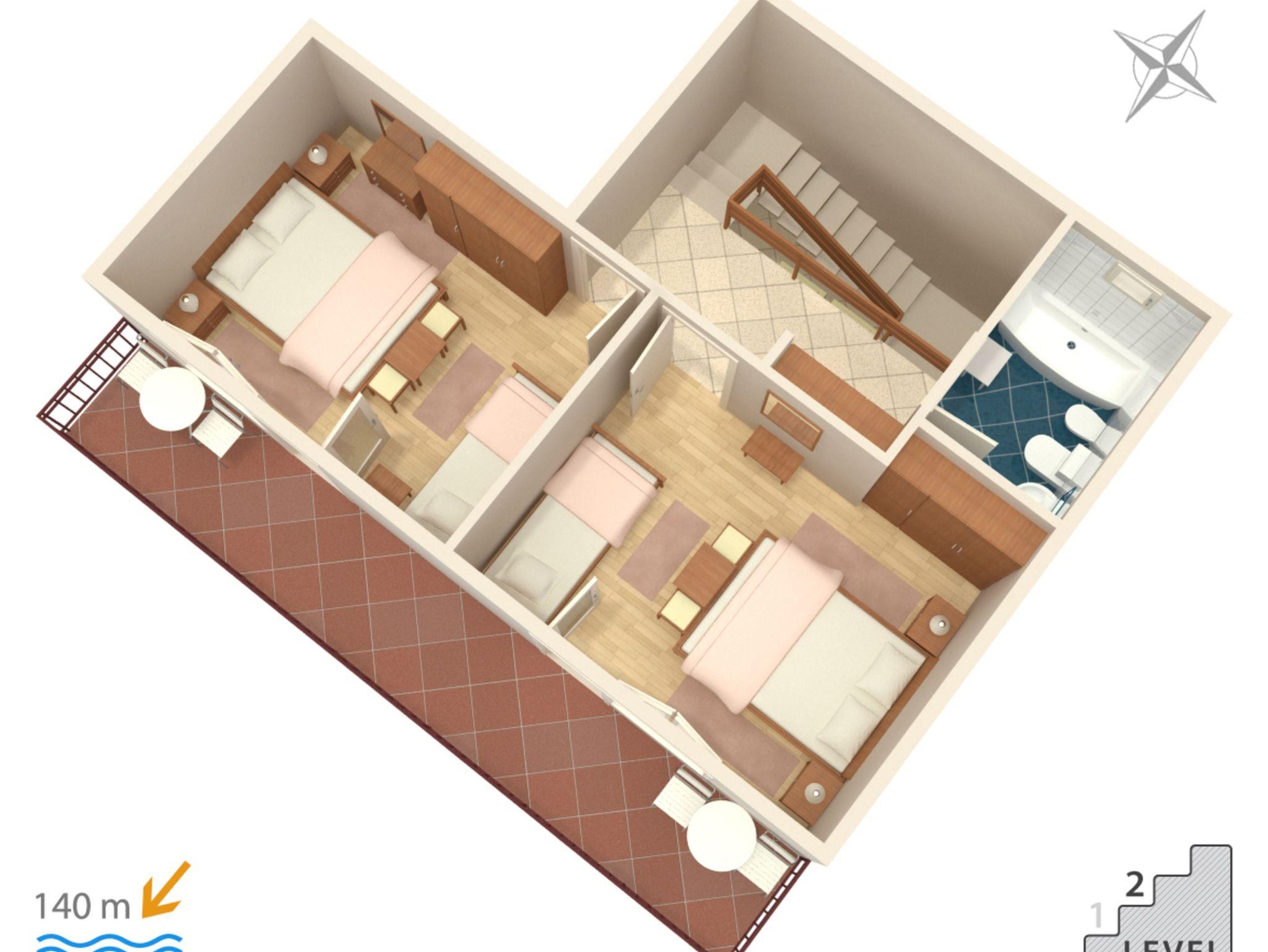 • Stufenanzahl vom Objekt zum Strand: 17