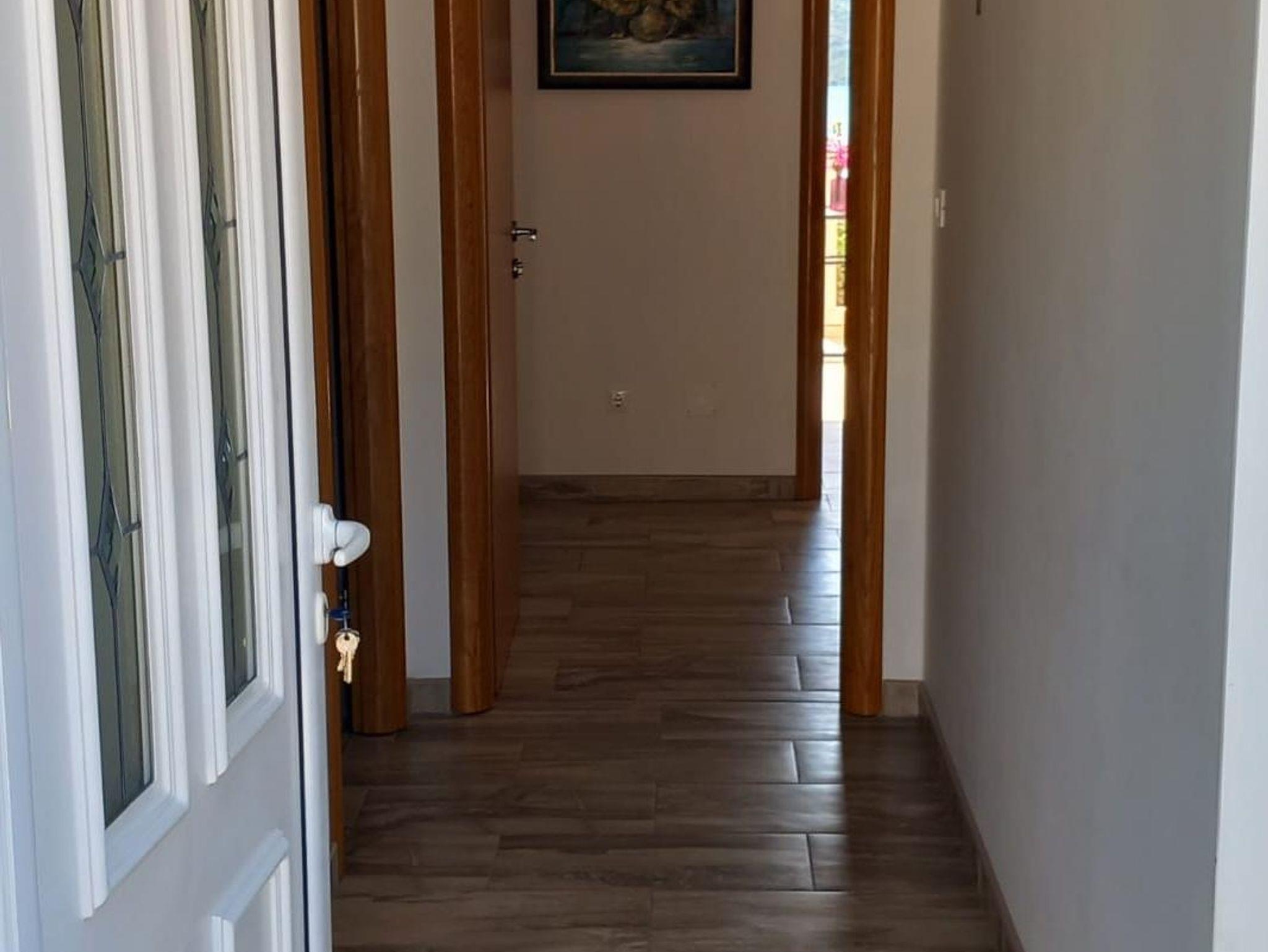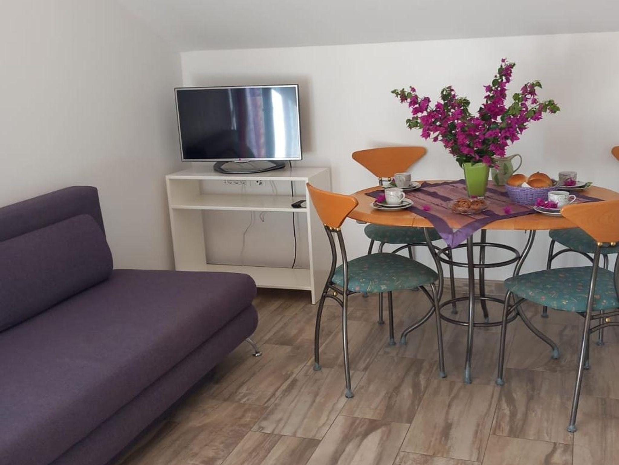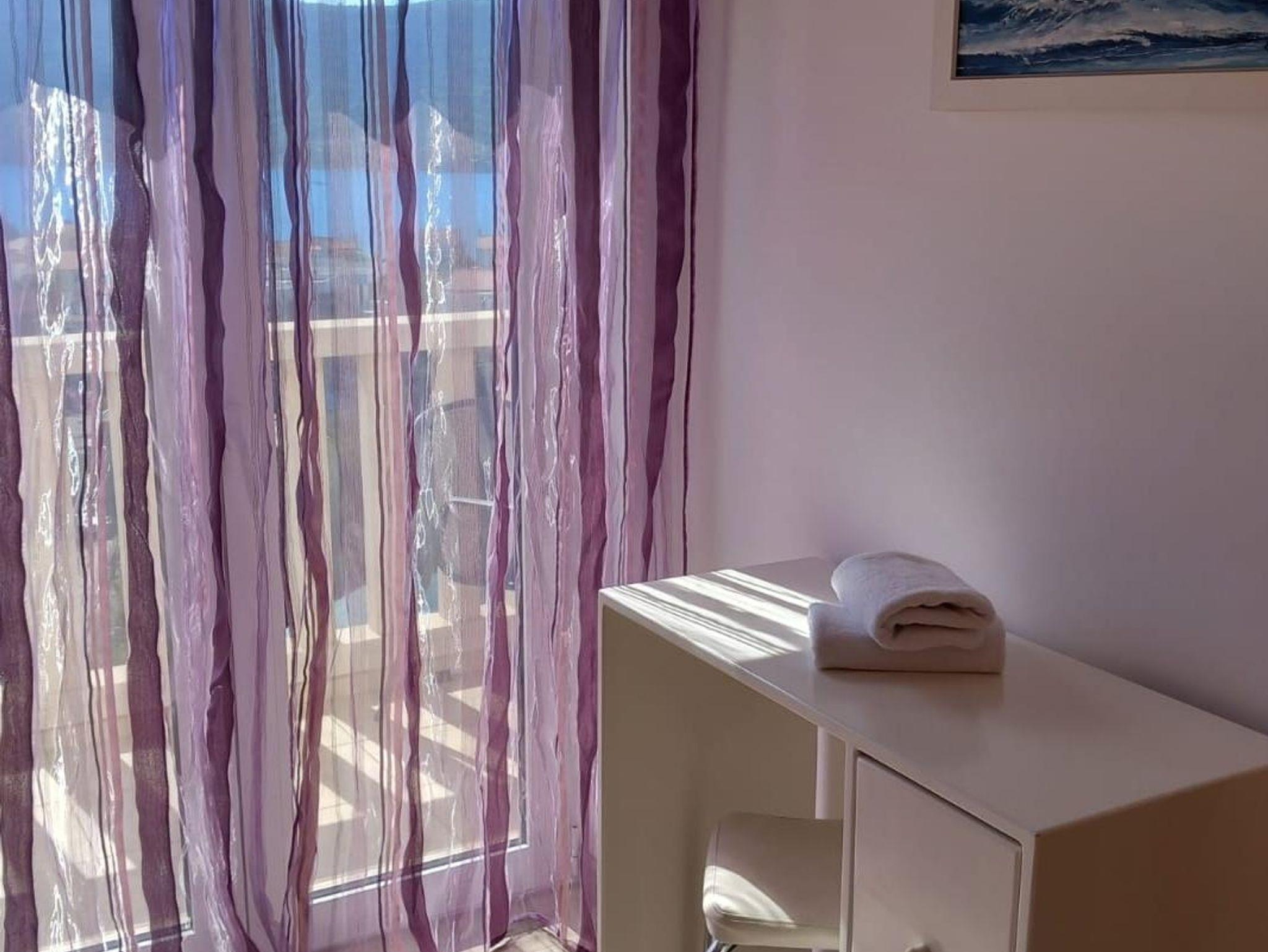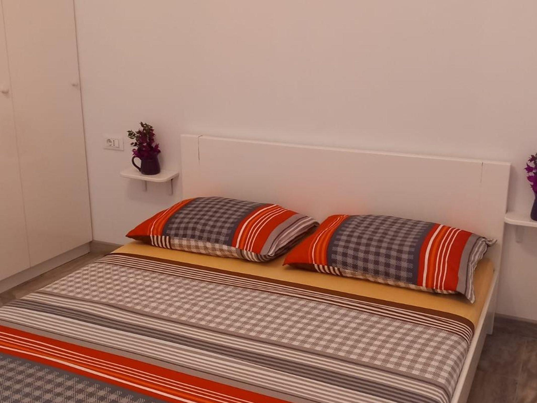 Ferienwohnung bietet Platz für 6 Gäste. Die Betten sind in Schlafzimmern, die es 3 gibt, innerhalb einer Gesamtfläche von 93m2, angeordnet. Die Gäste haben eine eigene Terrasse zur Verfügung, auf der sie in warmen Sommernächten genießen können. Das Apartment bietet Meerblick. Es ist erlaubt, Speisen auf dem Gemeinschafts-Grill vorzubereiten. IM PREIS INBEGRIFFEN: Kurtaxe, Endreinigung, Klimatisierung, Parkplatz, Internet, Bügeleisen, Bügelbrett, Föhn. VERBINDLICHE ZUSÄTZLICHE KOSTEN: Aufzahlung für Kurzaufenthalte (prozentualer Zuschlag pro Nächtigungsanzahl: 30% - 1, 20% - 2, 10% - 3). Die Verfügbarkeit zusätzlicher Dienstleistungen in Ihrem reservierten Termin und die Preise derselben (falls nicht aufgeführt) müssen im Voraus überprüft werden. Zusätzliche Dienstleistungen die in der Zahlungsaufforderung nicht aufgeführt sind werden direkt beim Vermieter bezahlt, angenommen der Gast nutzt auch diese. Ermäßigung auf den Grundpreis: Gratistag 14=13 (bei einem Aufenthalt von 14 Tagen oder mehr erhalten Sie einen Gratistag für den Aufenthalt bis 31.12.26).