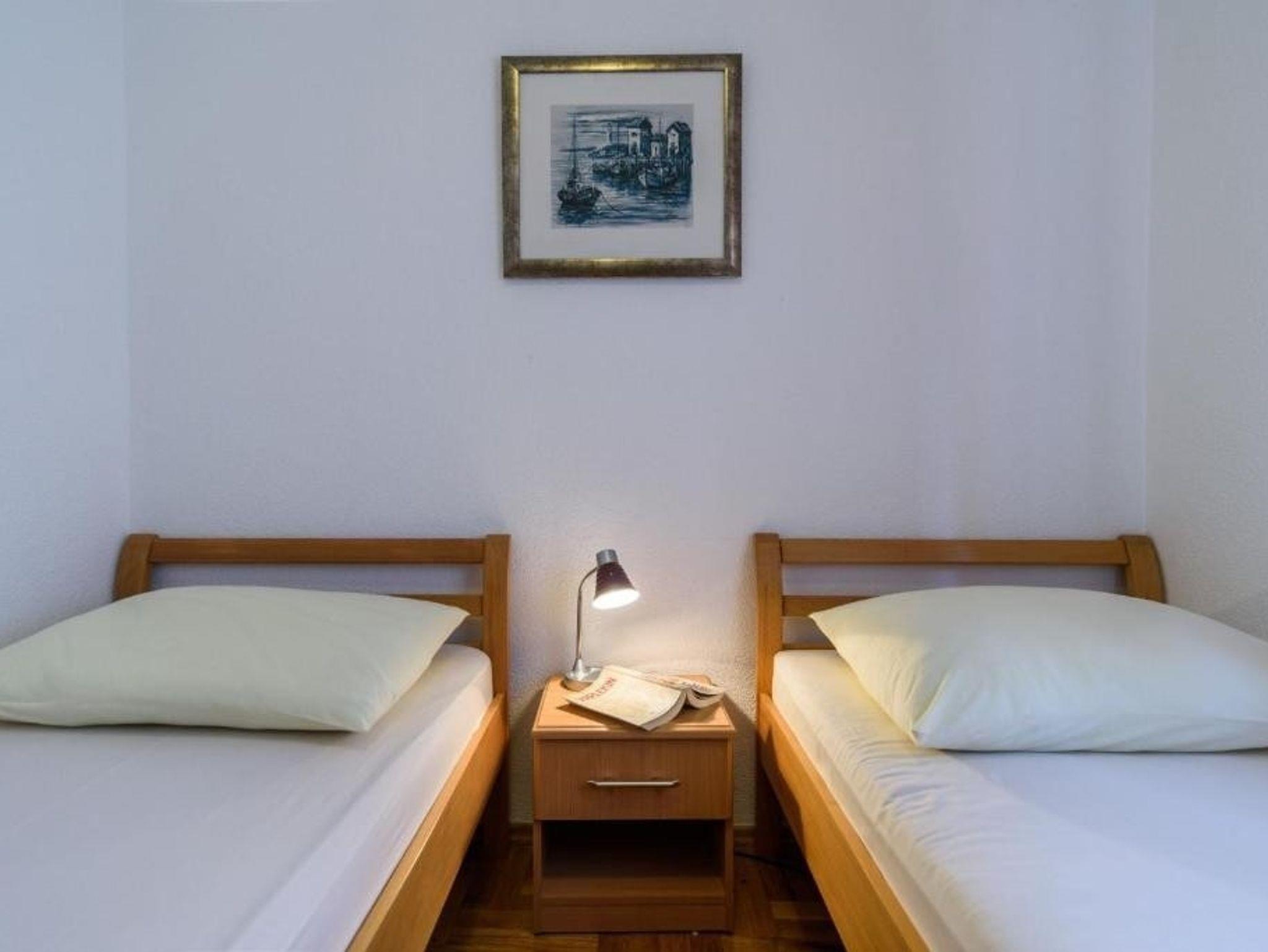 Ferienwohnung bietet Platz für 5 Gäste. Die Betten sind in Schlafzimmern, die es 2 gibt, und in Wohnzimmer, innerhalb einer Gesamtfläche von 65m2, angeordnet. Die Gäste haben einen eigenen Balkon zur Verfügung, auf der sie in warmen Sommernächten genießen können. Es ist erlaubt, Speisen auf dem Gemeinschafts-Grill vorzubereiten. IM PREIS INBEGRIFFEN: Kurtaxe, Endreinigung, Klimatisierung, Parkplatz, Internet, Kinderbett, Föhn. VERBINDLICHE ZUSÄTZLICHE KOSTEN: Aufzahlung für Kurzaufenthalte (prozentualer Zuschlag pro Nächtigungsanzahl: 30% - 1, 20% - 2, 10% - 3). Die Verfügbarkeit zusätzlicher Dienstleistungen in Ihrem reservierten Termin und die Preise derselben (falls nicht aufgeführt) müssen im Voraus überprüft werden. Zusätzliche Dienstleistungen die in der Zahlungsaufforderung nicht aufgeführt sind werden direkt beim Vermieter bezahlt, angenommen der Gast nutzt auch diese. Ermäßigung auf den Grundpreis: Gratistag 21=19 (bei einem Aufenthalt von 21 Tagen oder mehr erhalten Sie 2 Gratistage für den Aufenthalt bis 31.12.26).
