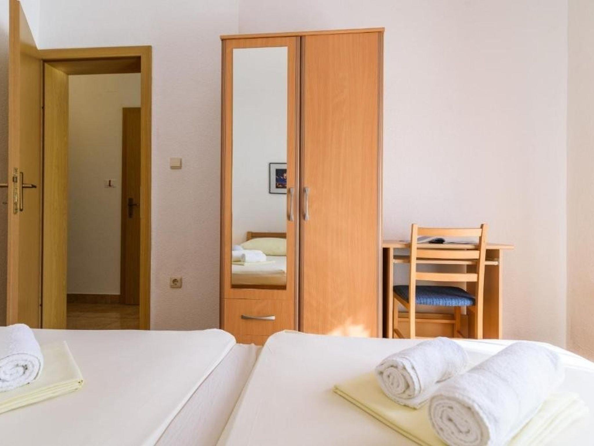 Ferienwohnung bietet Platz für 3 Gäste. Die Betten sind in Schlafzimmern, die es 1 gibt, und in Wohnzimmer, innerhalb einer Gesamtfläche von 35m2, angeordnet. Die Gäste haben einen eigenen Balkon zur Verfügung, auf der sie in warmen Sommernächten genießen können. Es ist erlaubt, Speisen auf dem Gemeinschafts-Grill vorzubereiten. IM PREIS INBEGRIFFEN: Kurtaxe, Endreinigung, Klimatisierung, Parkplatz, Internet, Kinderbett, Föhn. VERBINDLICHE ZUSÄTZLICHE KOSTEN: Aufzahlung für Kurzaufenthalte (prozentualer Zuschlag pro Nächtigungsanzahl: 30% - 1, 20% - 2, 10% - 3). Die Verfügbarkeit zusätzlicher Dienstleistungen in Ihrem reservierten Termin und die Preise derselben (falls nicht aufgeführt) müssen im Voraus überprüft werden. Zusätzliche Dienstleistungen die in der Zahlungsaufforderung nicht aufgeführt sind werden direkt beim Vermieter bezahlt, angenommen der Gast nutzt auch diese. Ermäßigung auf den Grundpreis: Gratistag 21=19 (bei einem Aufenthalt von 21 Tagen oder mehr erhalten Sie 2 Gratistage für den Aufenthalt bis 31.12.26).