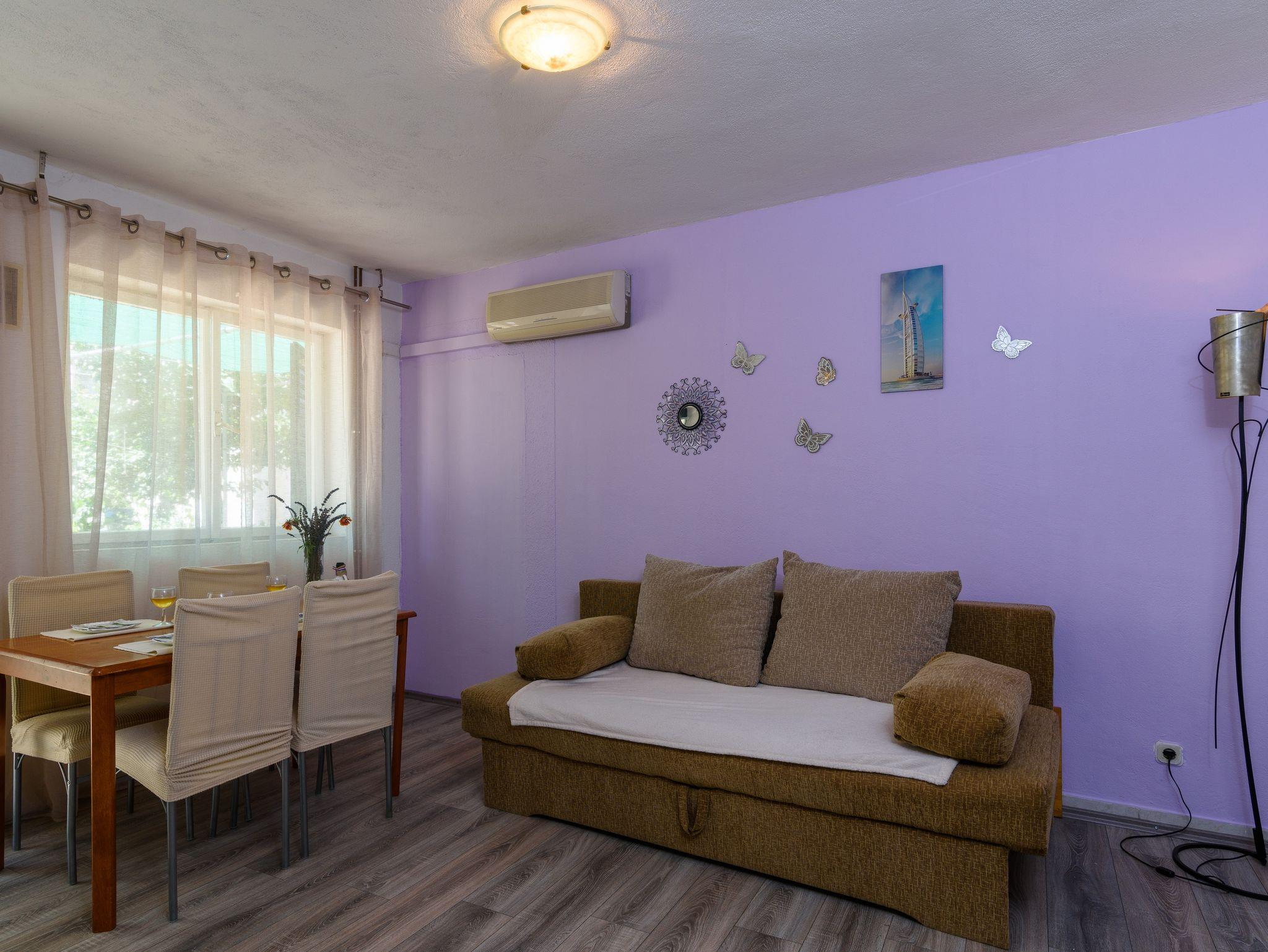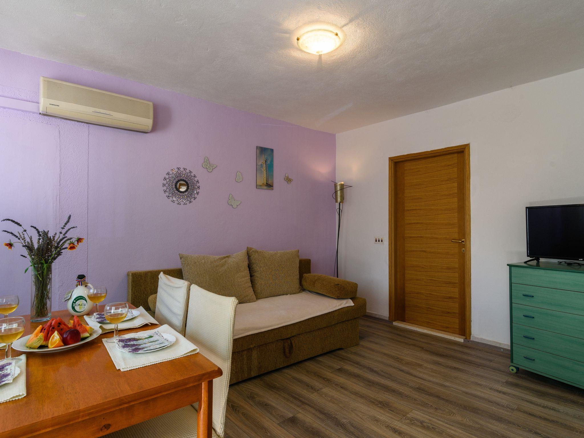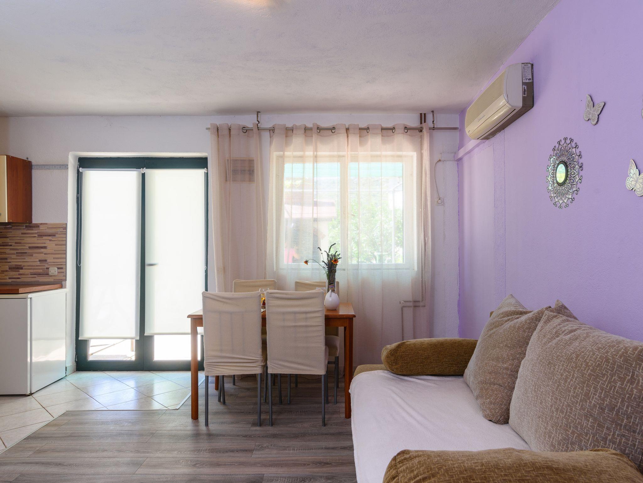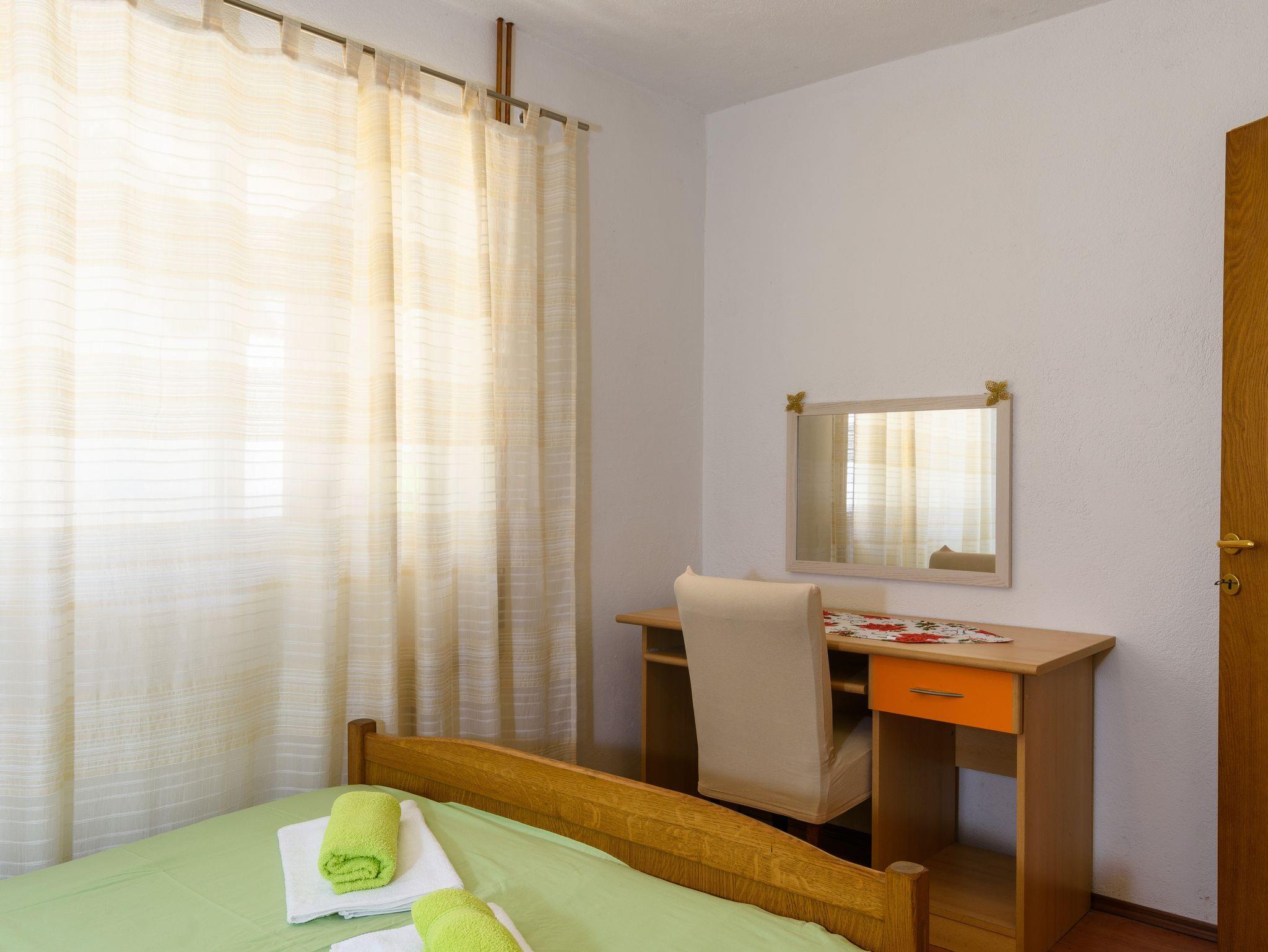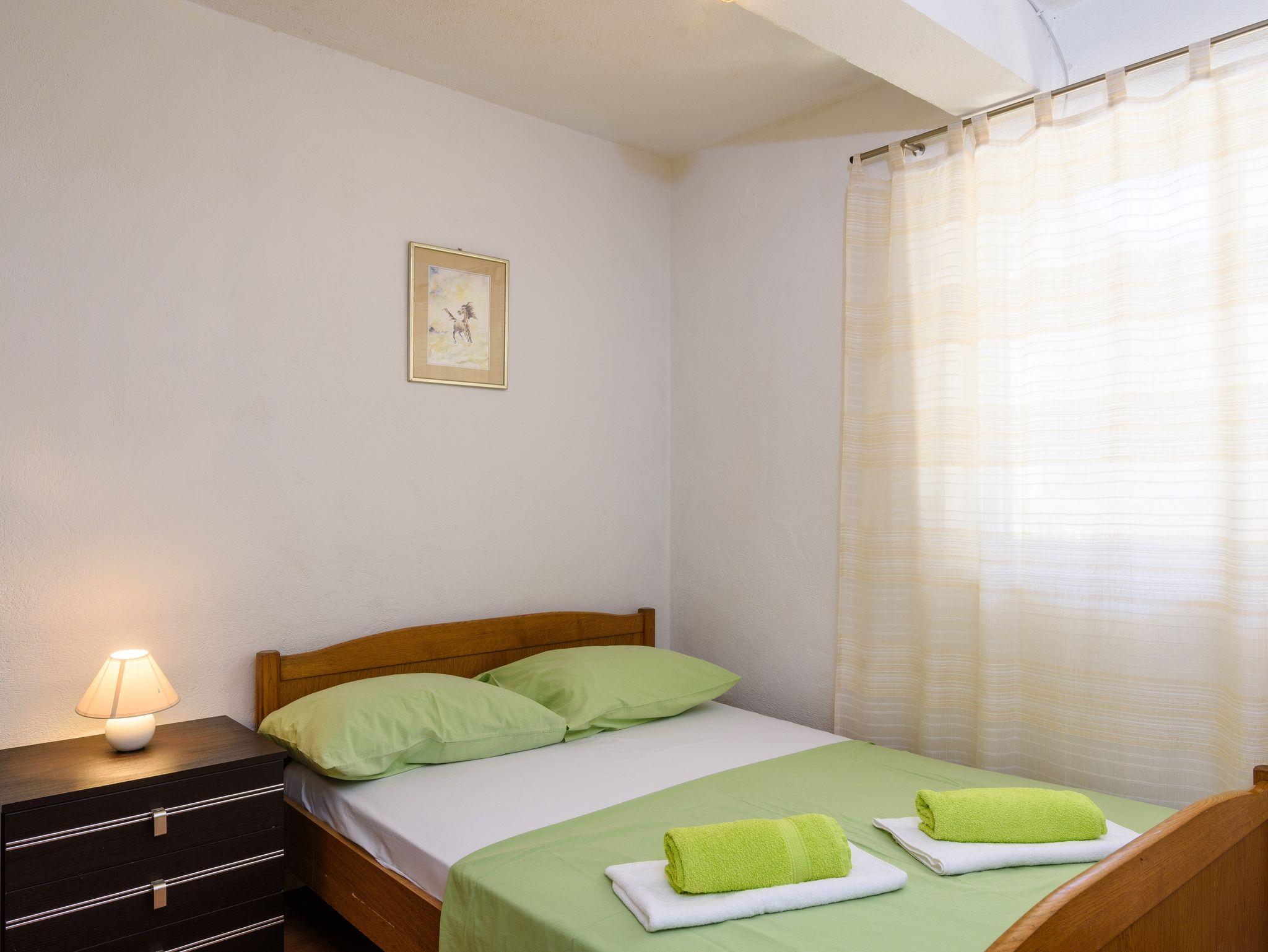 Studio bietet Platz für 4 Gäste. Die Betten sind in Schlafzimmern, die es 1 gibt, und in Wohnzimmer, innerhalb einer Gesamtfläche von 30m2, angeordnet. Die Gäste haben eine eigene Terrasse zur Verfügung, auf der sie in warmen Sommernächten genießen können. Es ist erlaubt, Speisen auf dem Gemeinschafts-Grill vorzubereiten. In der Unterkunftseinheit besteht die Möglichkeit des Mitbringens von Haustieren gegen Aufpreis. IM PREIS INBEGRIFFEN: Kurtaxe, Endreinigung, Klimatisierung, Parkplatz, Internet, Wäschewaschen, Kinderbett, Föhn. VERBINDLICHE ZUSÄTZLICHE KOSTEN: Aufzahlung für Kurzaufenthalte (prozentualer Zuschlag pro Nächtigungsanzahl: 30% - 1, 20% - 2, 10% - 3). UNVERBINDLICHE ZUSÄTZLICHE KOSTEN: Boot (250,00 € pro Nacht), Haustiere (5,00 € pro Nacht), Zusatzbett (5,00 € pro Nacht). Die Verfügbarkeit zusätzlicher Dienstleistungen in Ihrem reservierten Termin und die Preise derselben (falls nicht aufgeführt) müssen im Voraus überprüft werden. Zusätzliche Dienstleistungen die in der Zahlungsaufforderung nicht aufgeführt sind werden direkt beim Vermieter bezahlt, angenommen der Gast nutzt auch diese. Ermäßigung auf den Grundpreis: Gratistag 14=13 (bei einem Aufenthalt von 14 Tagen oder mehr erhalten Sie einen Gratistag für den Aufenthalt bis 31.12.26).