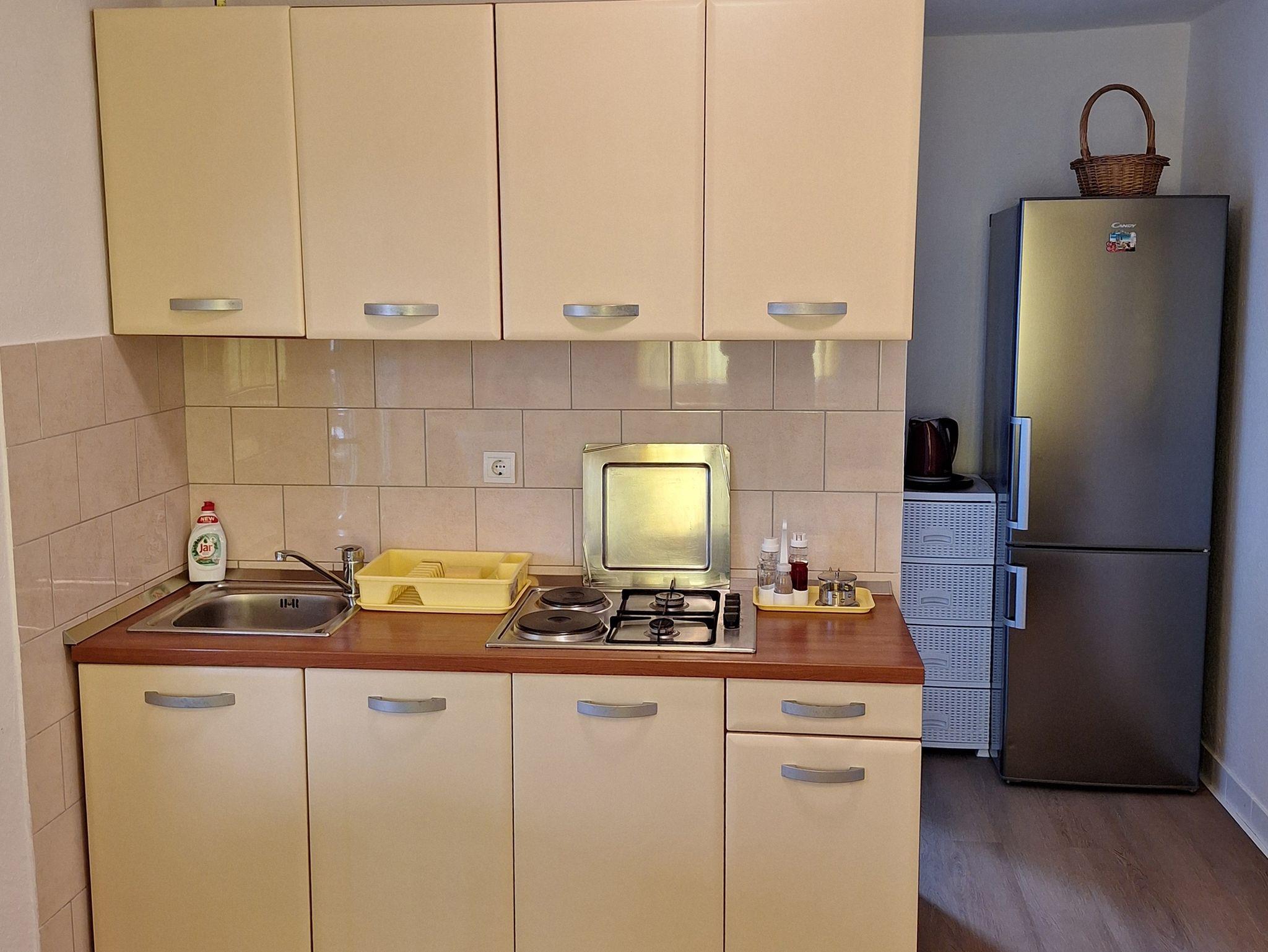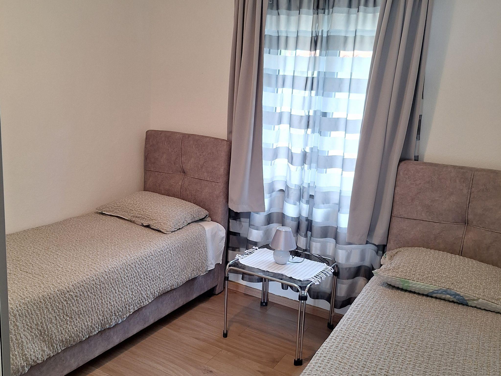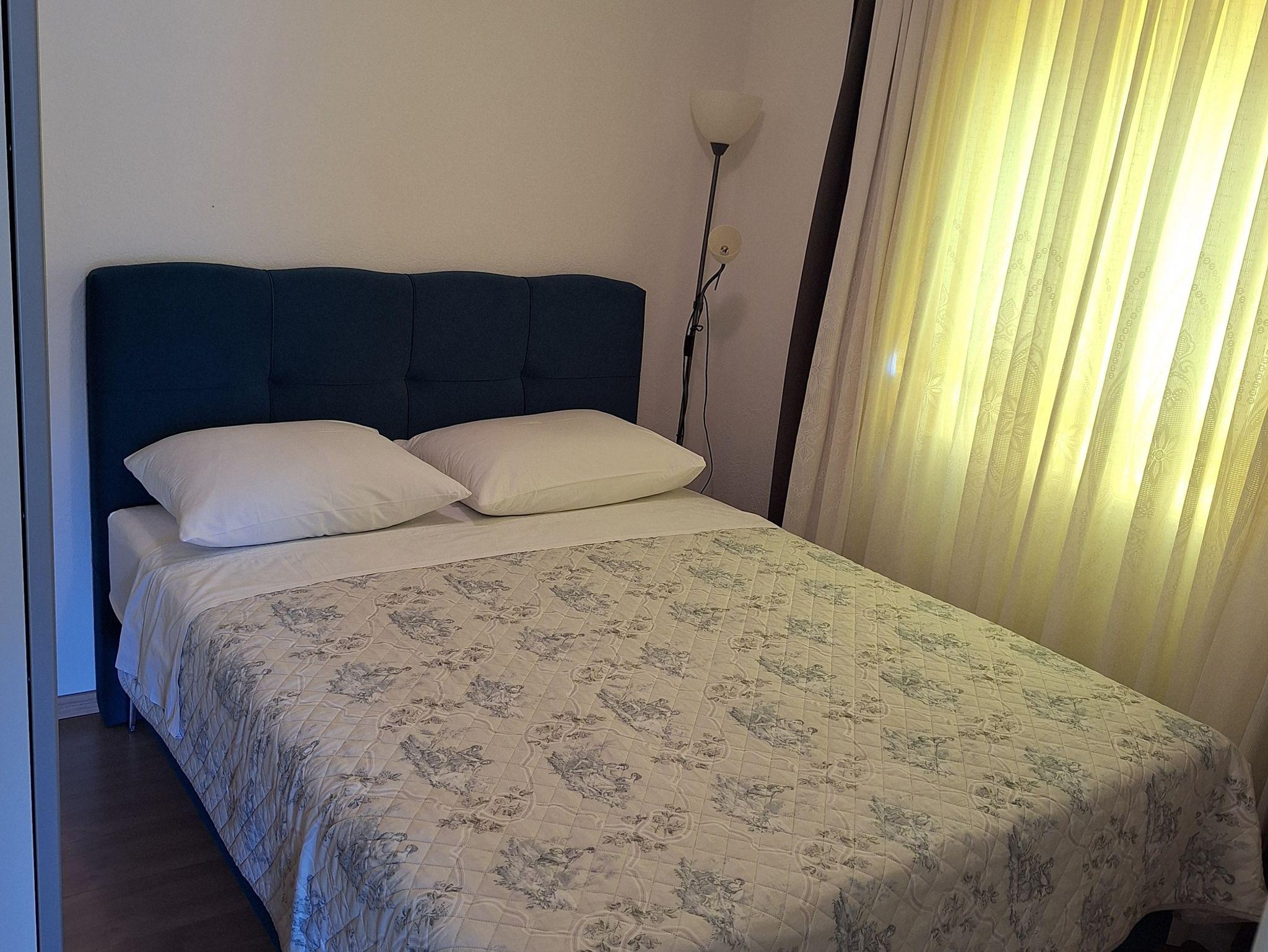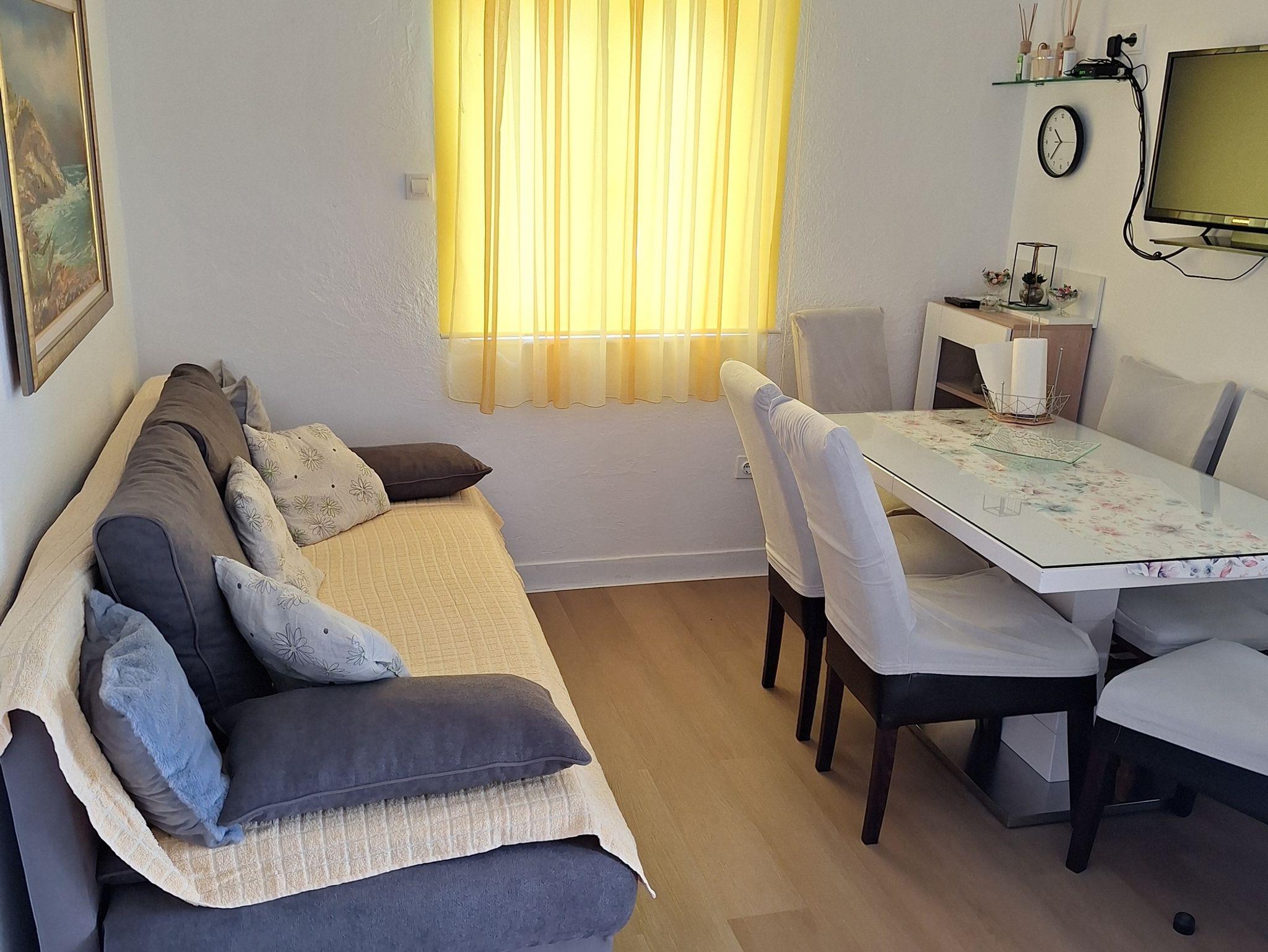 Ferienwohnung bietet Platz für 5 Gäste. Die Betten sind in Schlafzimmern, die es 2 gibt, und in Wohnzimmer, innerhalb einer Gesamtfläche von 40m2, angeordnet. Die Gäste haben eine eigene Terrasse zur Verfügung, auf der sie in warmen Sommernächten genießen können. Das Apartment bietet Meerblick. Es ist erlaubt, Speisen auf dem Gemeinschafts-Grill vorzubereiten. IM PREIS INBEGRIFFEN: Kurtaxe, Endreinigung, Klimatisierung, Parkplatz, Bügeleisen, Bügelbrett, Föhn. VERBINDLICHE ZUSÄTZLICHE KOSTEN: Aufzahlung für Kurzaufenthalte (prozentualer Zuschlag pro Nächtigungsanzahl: 30% - 1, 20% - 2, 10% - 3). Die Verfügbarkeit zusätzlicher Dienstleistungen in Ihrem reservierten Termin und die Preise derselben (falls nicht aufgeführt) müssen im Voraus überprüft werden. Zusätzliche Dienstleistungen die in der Zahlungsaufforderung nicht aufgeführt sind werden direkt beim Vermieter bezahlt, angenommen der Gast nutzt auch diese. Ermäßigung auf den Grundpreis: Gratistag 14=13 (bei einem Aufenthalt von 14 Tagen oder mehr erhalten Sie einen Gratistag für den Aufenthalt bis 31.12.26).