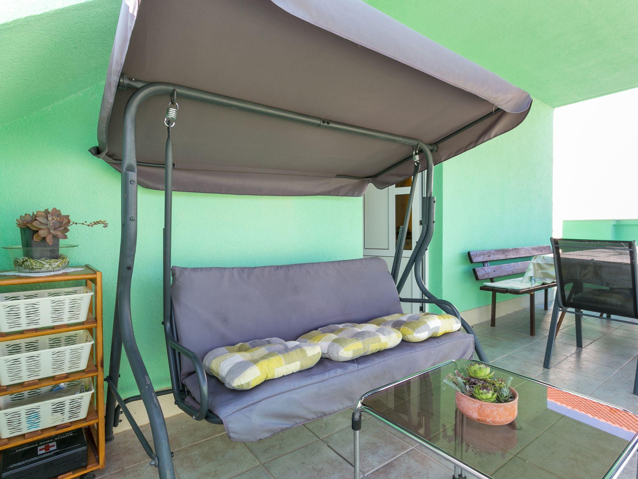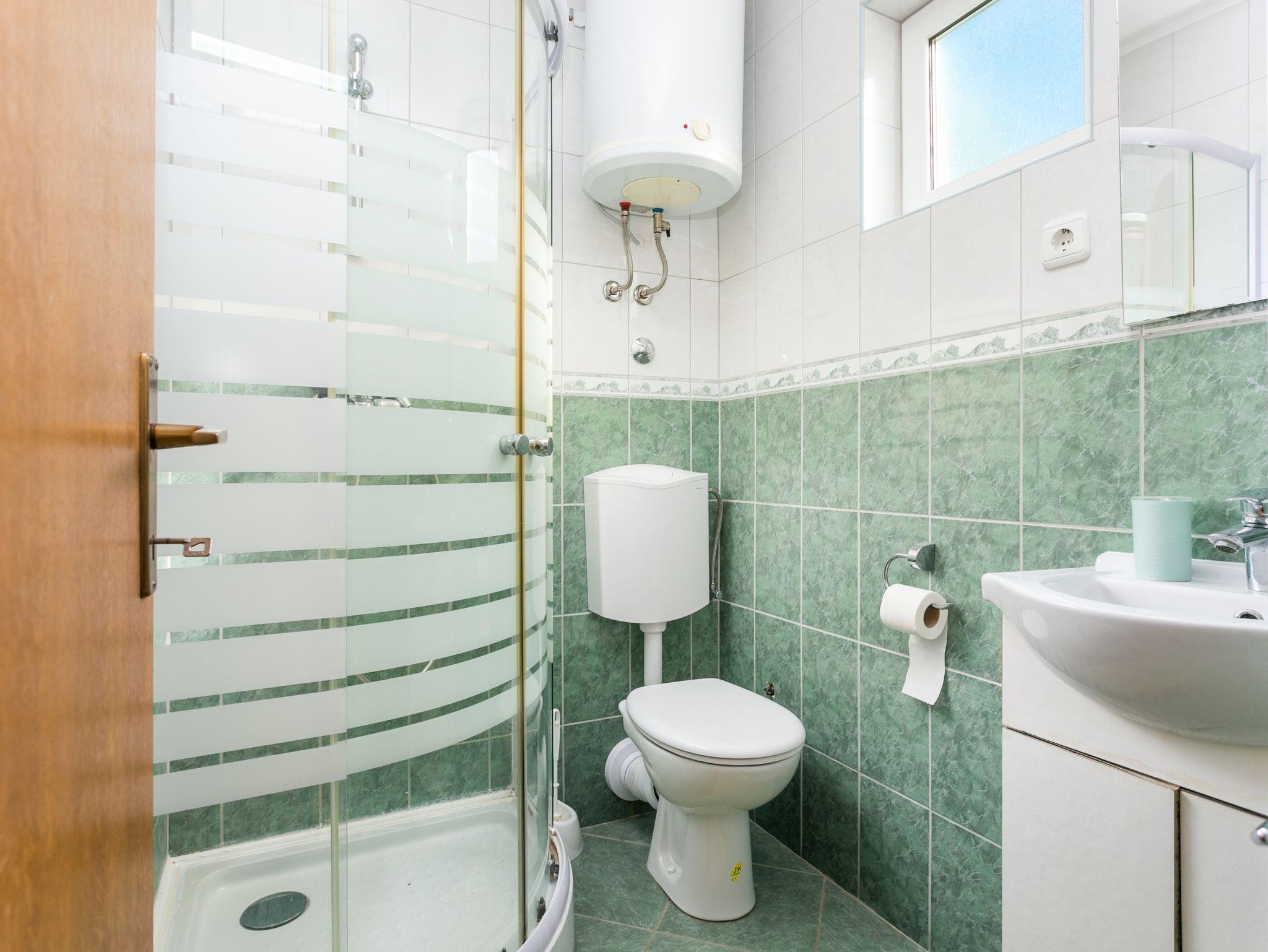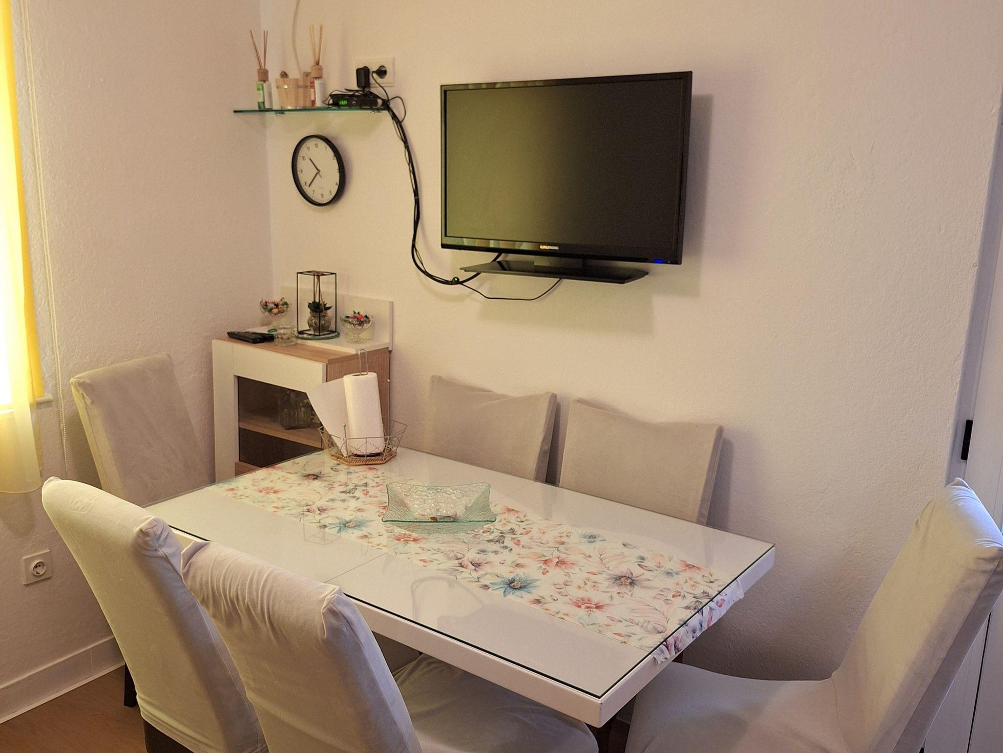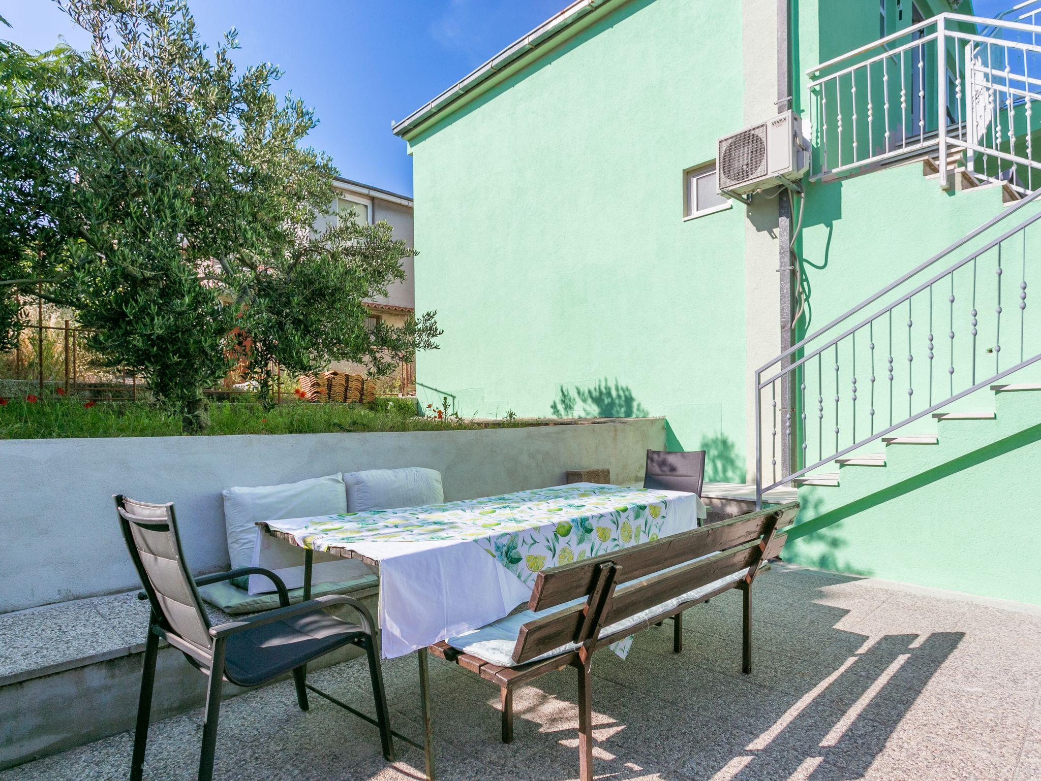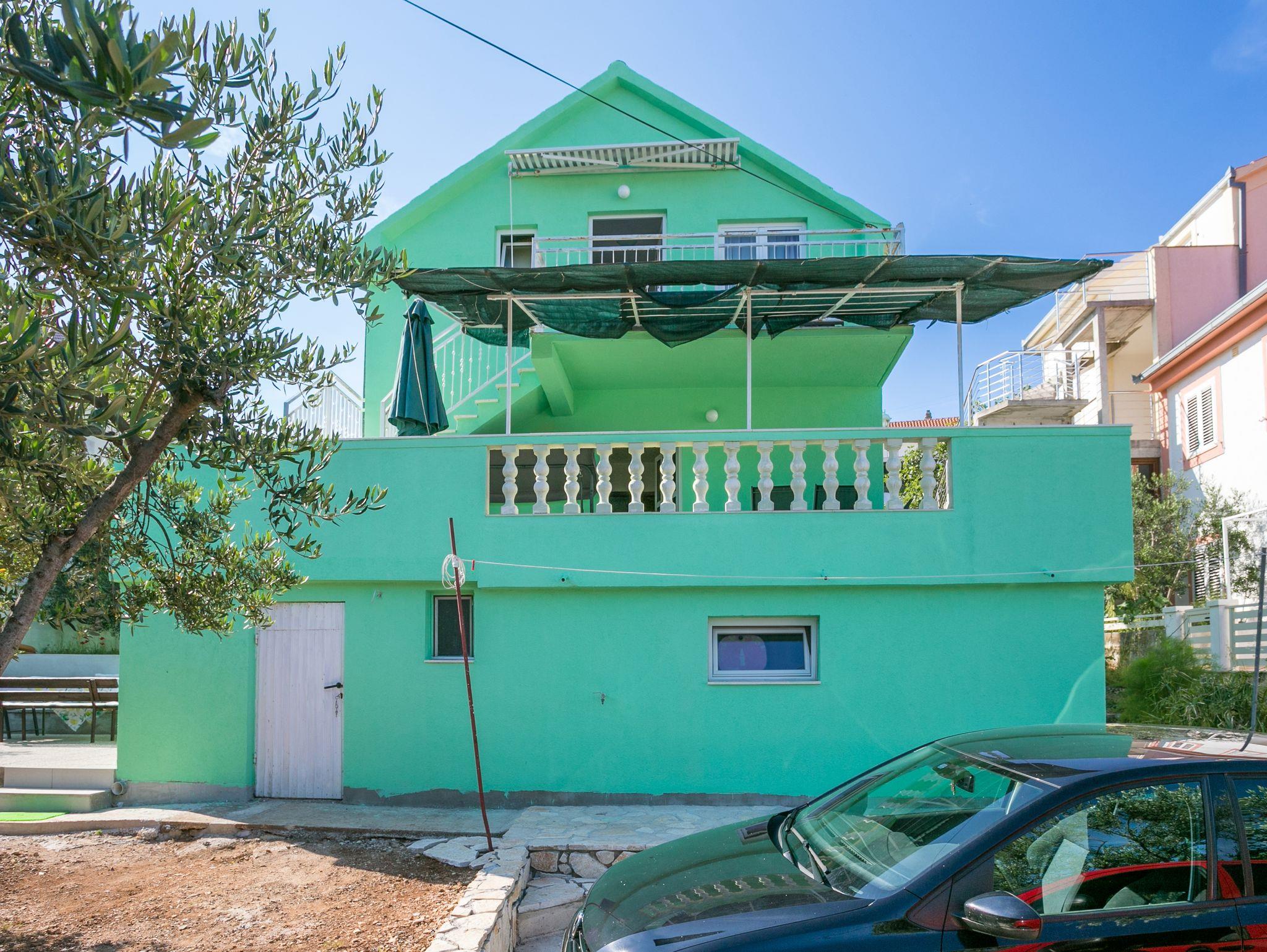 Ferienwohnung bietet Platz für 5 Gäste. Die Betten sind in Schlafzimmern, die es 2 gibt, und in Wohnzimmer, innerhalb einer Gesamtfläche von 40m2, angeordnet. Die Gäste haben eine eigene Terrasse zur Verfügung, auf der sie in warmen Sommernächten genießen können. Das Apartment bietet Meerblick. Es ist erlaubt, Speisen auf dem Gemeinschafts-Grill vorzubereiten. IM PREIS INBEGRIFFEN: Kurtaxe, Endreinigung, Klimatisierung, Parkplatz, Bügeleisen, Bügelbrett, Föhn. VERBINDLICHE ZUSÄTZLICHE KOSTEN: Aufzahlung für Kurzaufenthalte (prozentualer Zuschlag pro Nächtigungsanzahl: 30% - 1, 20% - 2, 10% - 3). Die Verfügbarkeit zusätzlicher Dienstleistungen in Ihrem reservierten Termin und die Preise derselben (falls nicht aufgeführt) müssen im Voraus überprüft werden. Zusätzliche Dienstleistungen die in der Zahlungsaufforderung nicht aufgeführt sind werden direkt beim Vermieter bezahlt, angenommen der Gast nutzt auch diese. Ermäßigung auf den Grundpreis: Gratistag 14=13 (bei einem Aufenthalt von 14 Tagen oder mehr erhalten Sie einen Gratistag für den Aufenthalt bis 31.12.26).