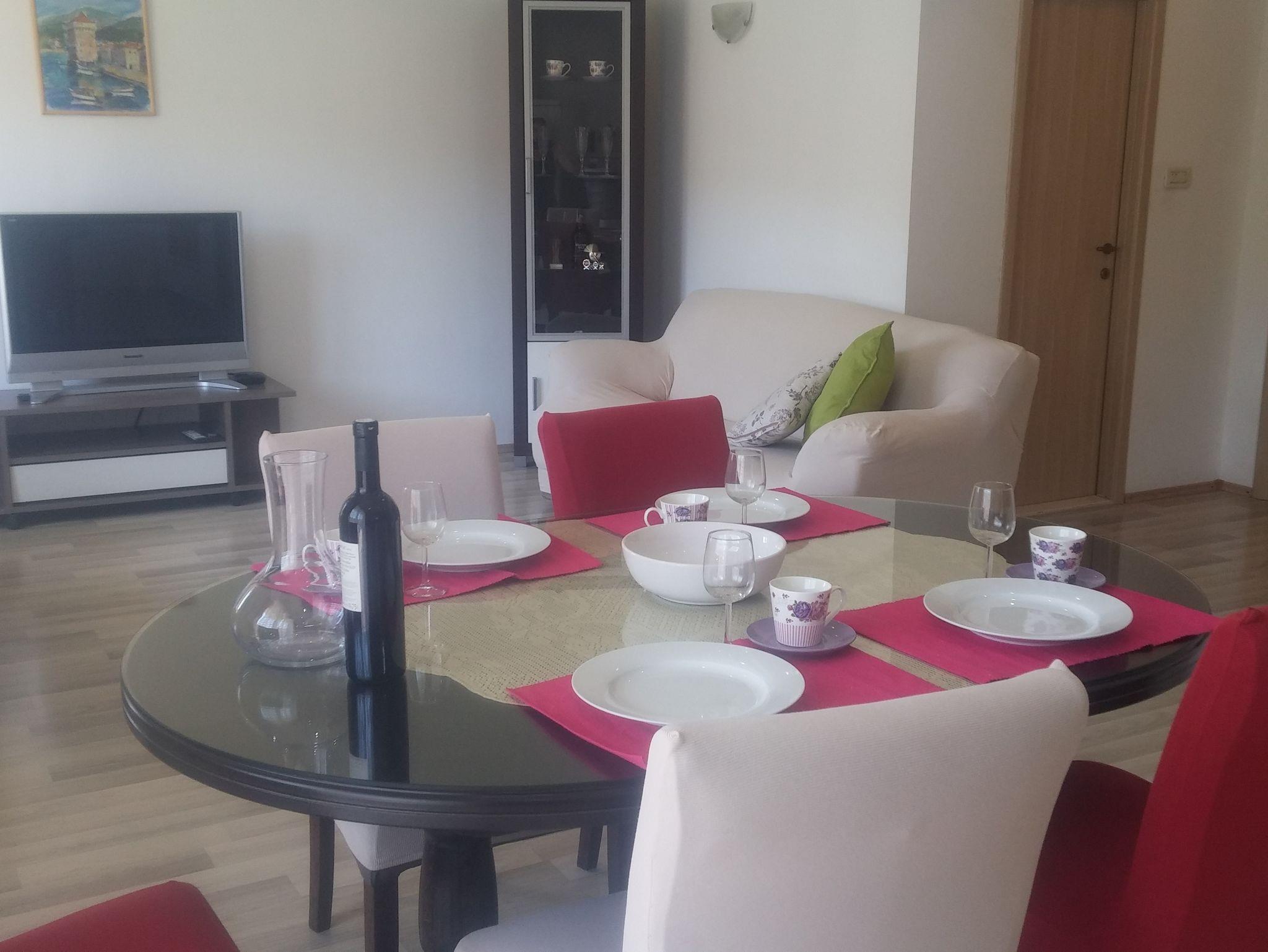 Ferienwohnung bietet Platz für 6 Gäste. Die Betten sind in Schlafzimmern, die es 2 gibt, und in Wohnzimmer, innerhalb einer Gesamtfläche von 55m2, angeordnet. Die Gäste haben einen eigenen Balkon zur Verfügung, auf der sie in warmen Sommernächten genießen können. Es ist erlaubt, Speisen auf dem Gemeinschafts-Grill vorzubereiten. In der Unterkunftseinheit besteht die Möglichkeit des Mitbringens von Haustieren gegen Aufpreis. IM PREIS INBEGRIFFEN: Kurtaxe, Endreinigung, Klimatisierung, Zentralheizung, Parkplatz, Internet, Wäschewaschen, Kinderbett, Föhn. VERBINDLICHE ZUSÄTZLICHE KOSTEN: Aufzahlung für Kurzaufenthalte (prozentualer Zuschlag pro Nächtigungsanzahl: 30% - 1, 20% - 2, 10% - 3). UNVERBINDLICHE ZUSÄTZLICHE KOSTEN: Boot (250,00 € pro Nacht), Haustiere (5,00 € pro Nacht), Zusatzbett (5,00 € pro Nacht). Die Verfügbarkeit zusätzlicher Dienstleistungen in Ihrem reservierten Termin und die Preise derselben (falls nicht aufgeführt) müssen im Voraus überprüft werden. Zusätzliche Dienstleistungen die in der Zahlungsaufforderung nicht aufgeführt sind werden direkt beim Vermieter bezahlt, angenommen der Gast nutzt auch diese. Ermäßigung auf den Grundpreis: Gratistag 14=13 (bei einem Aufenthalt von 14 Tagen oder mehr erhalten Sie einen Gratistag für den Aufenthalt bis 31.12.26).