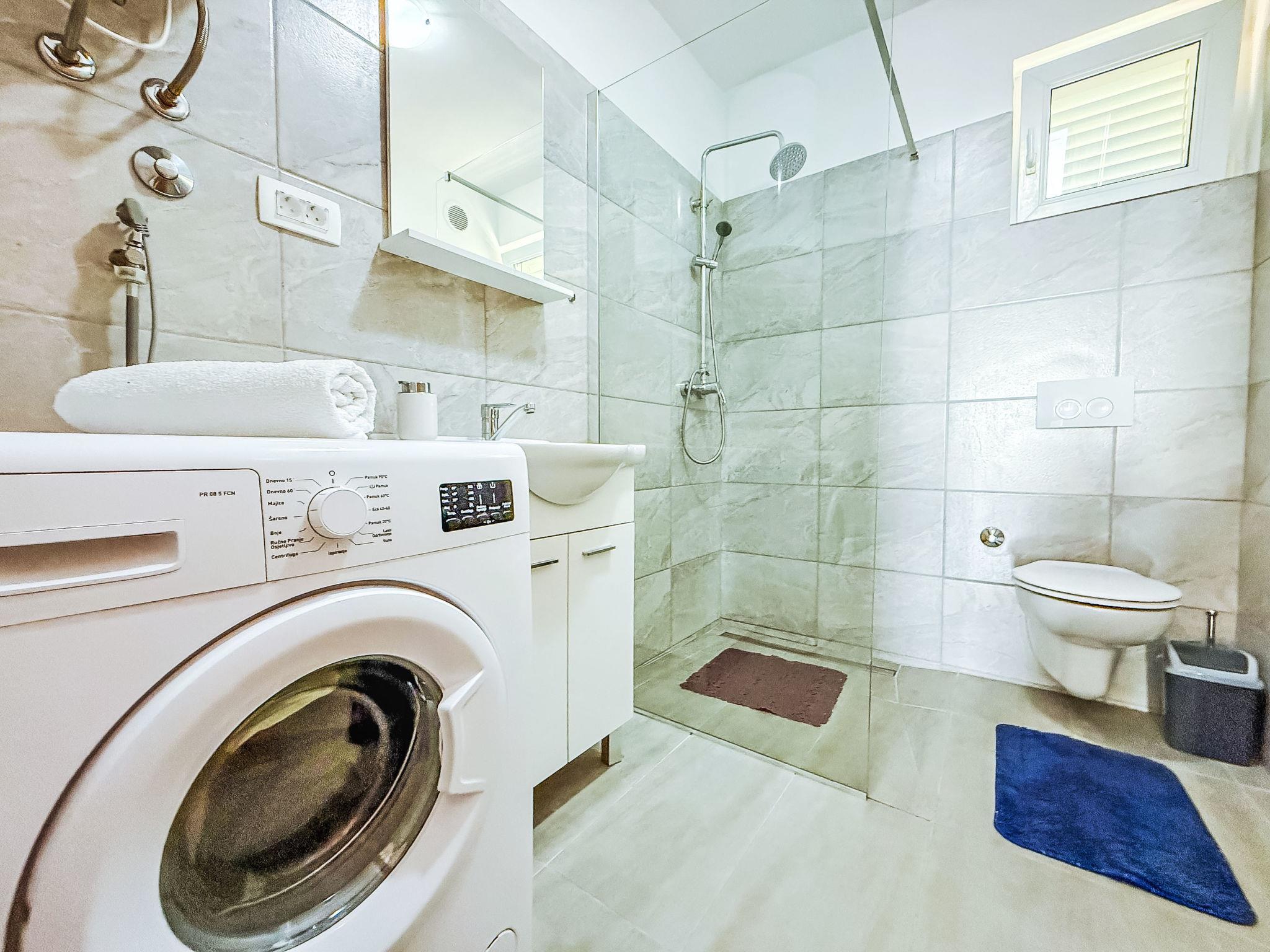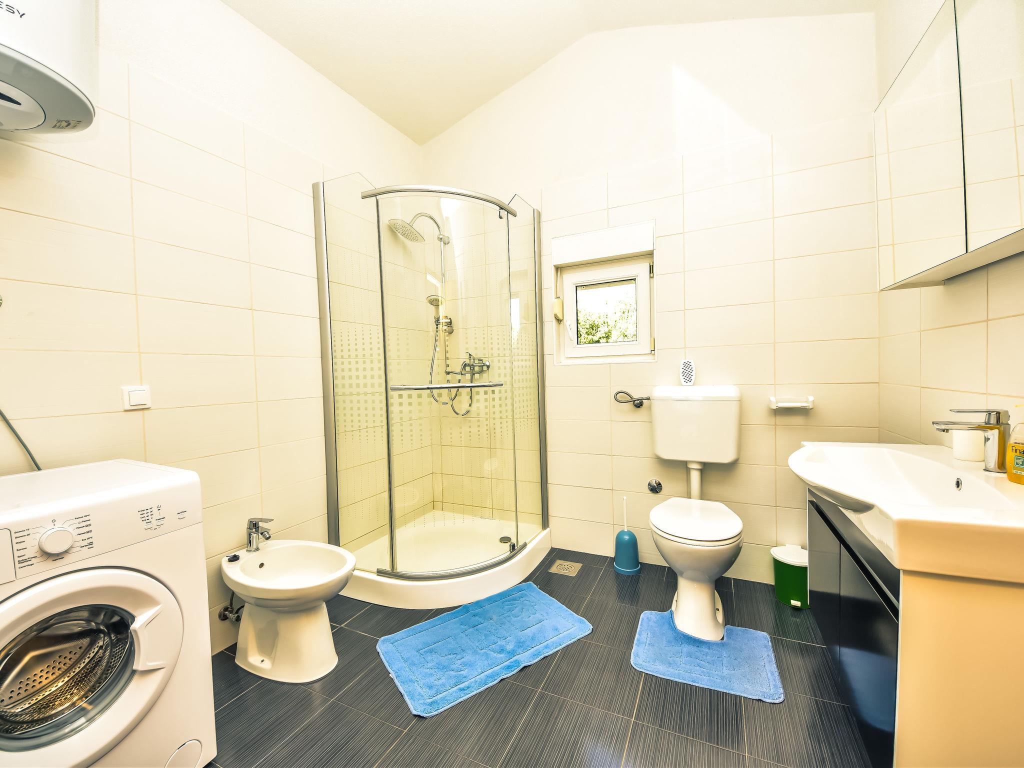2-family house "Marijana", 2 storeys. 16 km from the centre of Obrovac, in a quiet, sunny position, at the seaside, on the beach. Private: property 300 m2 (fenced), swimming pool angular (9 x 3 m, 33 m2, seasonal availability: 01.May. - 01.Oct.) with internal staircase. Outdoor shower, garden furniture, barbecue. In the house: internet access, washing machine. Motor access to the house (100 m via unmade road). Parking at the house on the premises. Shop 1.5 km, restaurant 1.5 km, bus stop 2.5 km, shingle beach 10 m. Nearby attractions: NP Paklenica 17 km, Rafting Zrmanja 35 km.