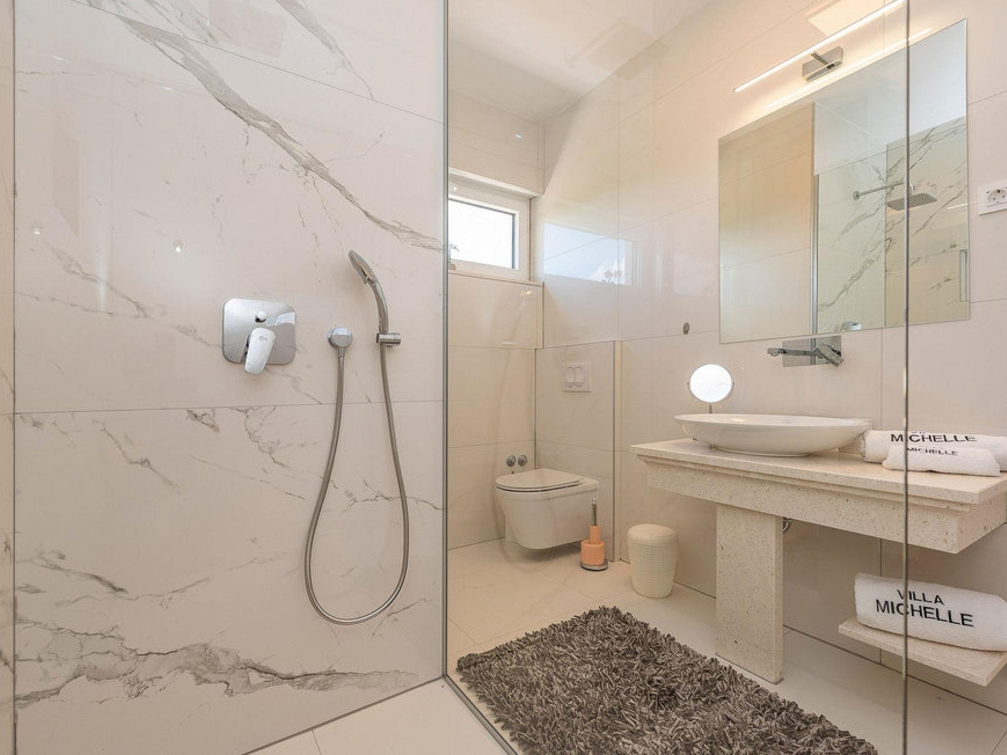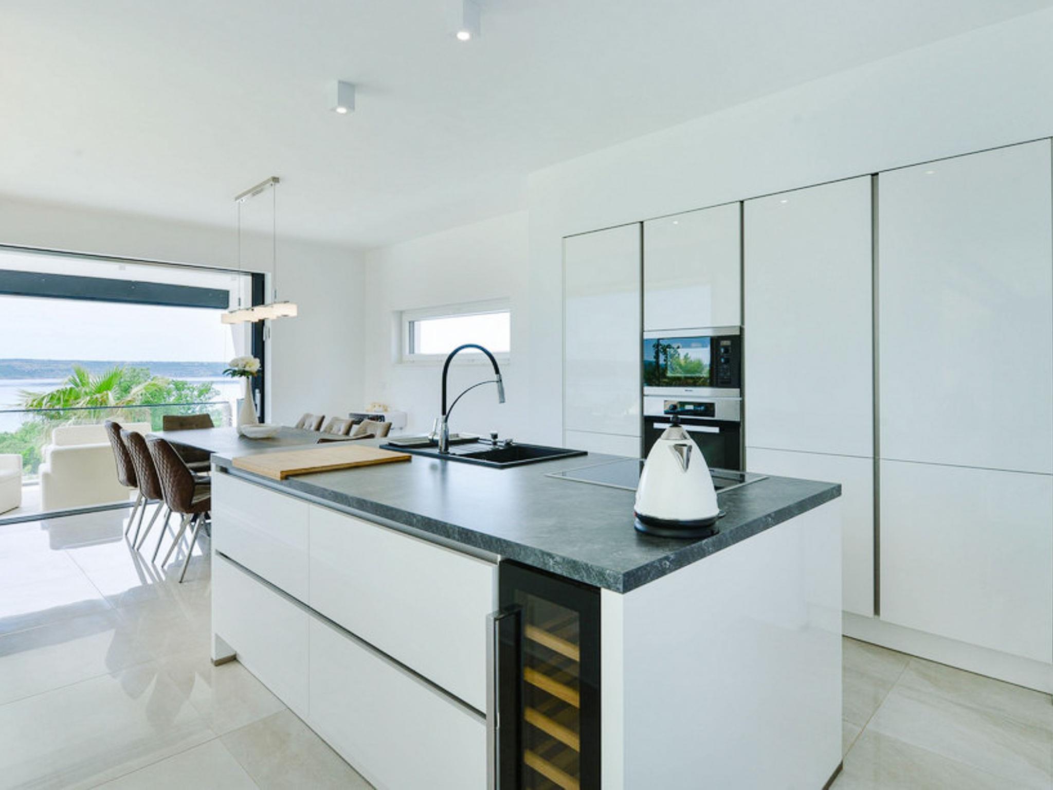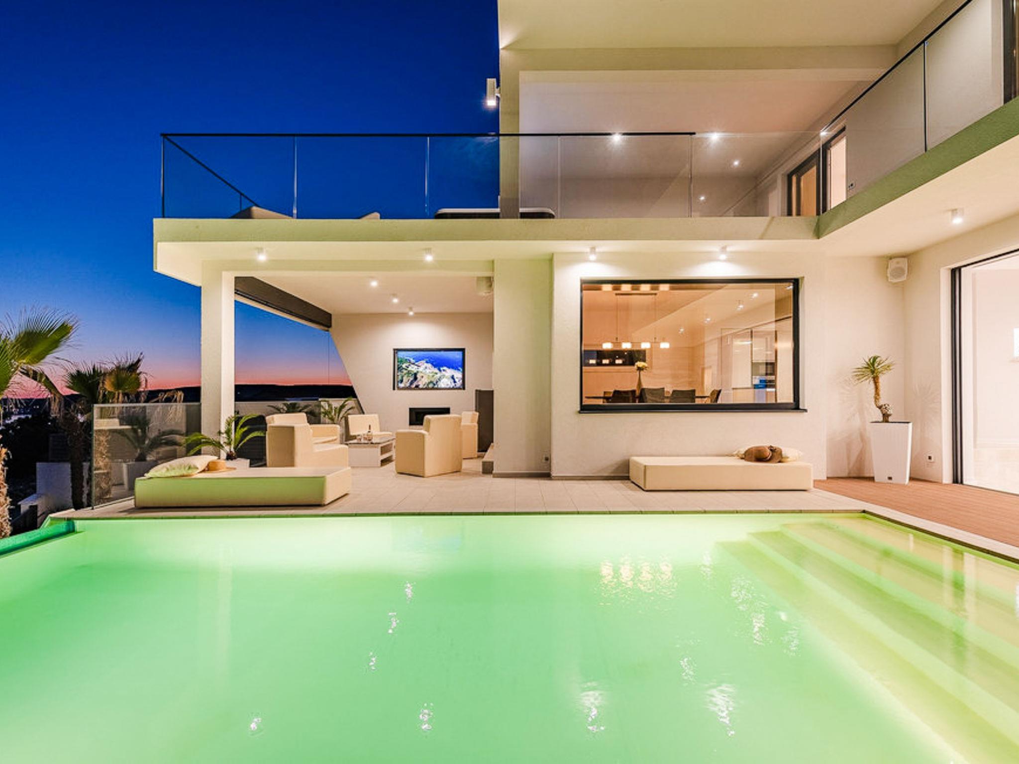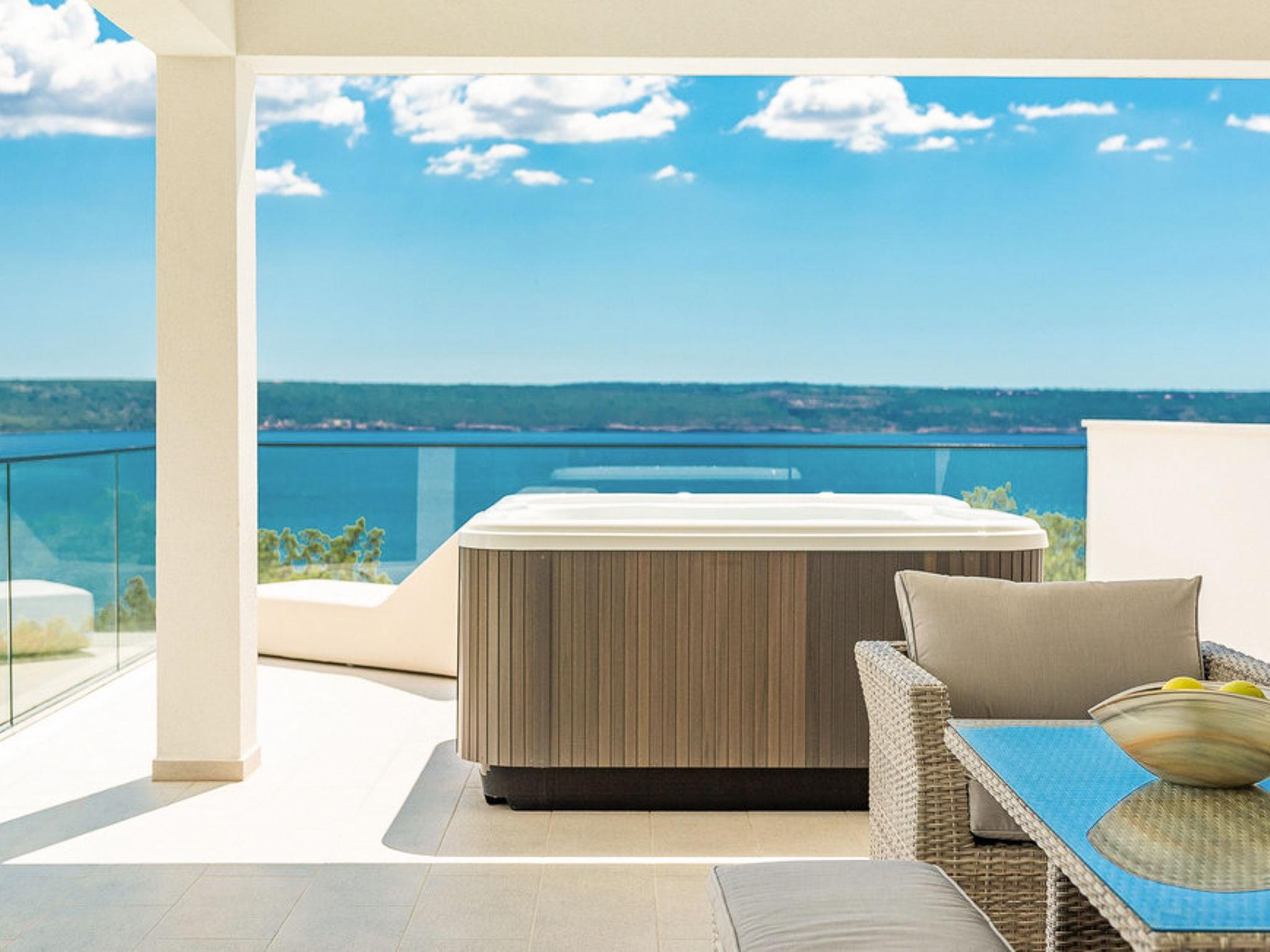 Luxurious villa "Michel", 2 storeys, built in 2024. 28 km from the centre of Zadar, in a sunny, elevated position, 600 m from the sea, 600 m from the beach, located by a road. Private: property 500 m2 (fenced), swimming pool angular (8 x 4 m, depth 150 cm, seasonal availability: 02.May. - 26.Sep.) with internal staircase. WC in the pool area, hot tub, pool house with shower, garden furniture, barbecue, pool maintenance by the owner/gardener. In the house: internet access, sauna, fitness room, billiard table, washing machine, tumble dryer. Parking (for 2 cars) at the house on the premises. Shop 1 km, restaurant 600 m, bus stop 900 m, pebble beach 600 m. Nearby attractions: NP Paklenica 17 km, rafting Zrmanja 35 km. Groups of teenagers on request only.