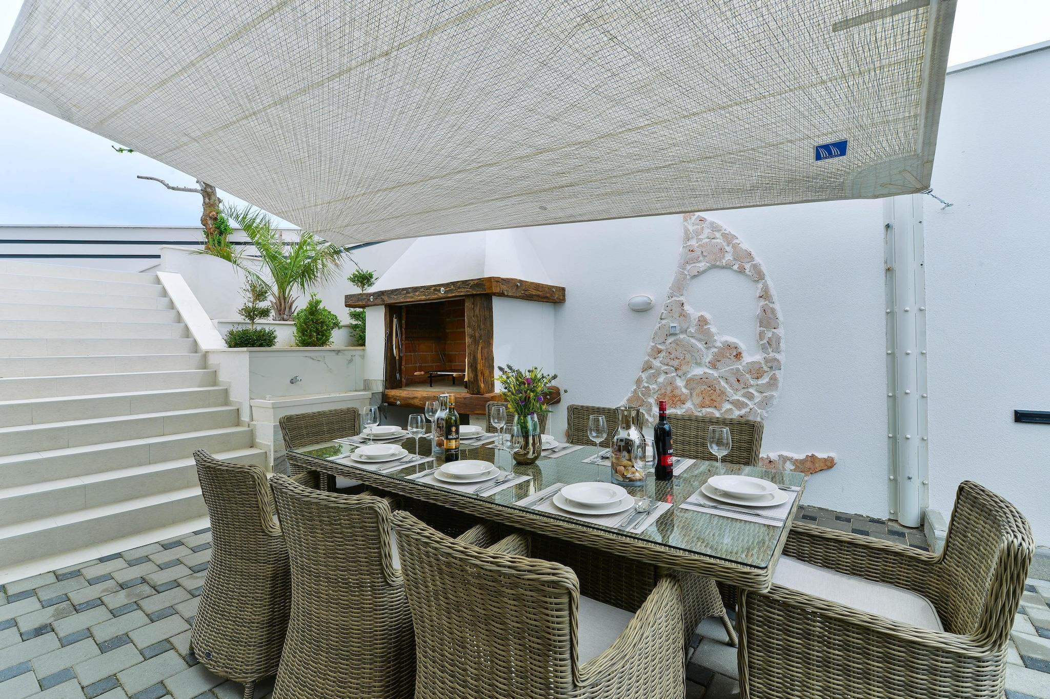 Beliggende i kystbyen Maslenica, denne luksuriøse 4-værelses villa kan rumme op til 8 gæster og tilbyder et fredfyldt tilflugtssted kun 800 m fra havet og stranden. Med en privat pool, indhegnet have og flere terrasser er det perfekt til familier eller venner, der søger komfort og rekreation i nærheden af Zadar (25 km). Hvert soveværelse har eget badeværelse, satellit-tv og aircondition, mens den rummelige stue har en hyggelig pejs og opholdsområde. Det fuldt udstyrede køkken har alt fra kaffemaskine til opvaskemaskine, og villaen indeholder også boblebad, sauna og opholdsrum med billard, dart og fitnessudstyr. Udendørs kan du nyde grillen, havemøblerne og loungen på den private terrasse. Børn vil elske legerum og playstation, mens praktiske faciliteter såsom vaskemaskine, tørretumbler og privat parkering sikrer et problemfrit ophold. Indtjekning fra kl. 16.00, udtjekning kl. 10.00. En velindrettet base for at udforske den dalmatiske kyst.