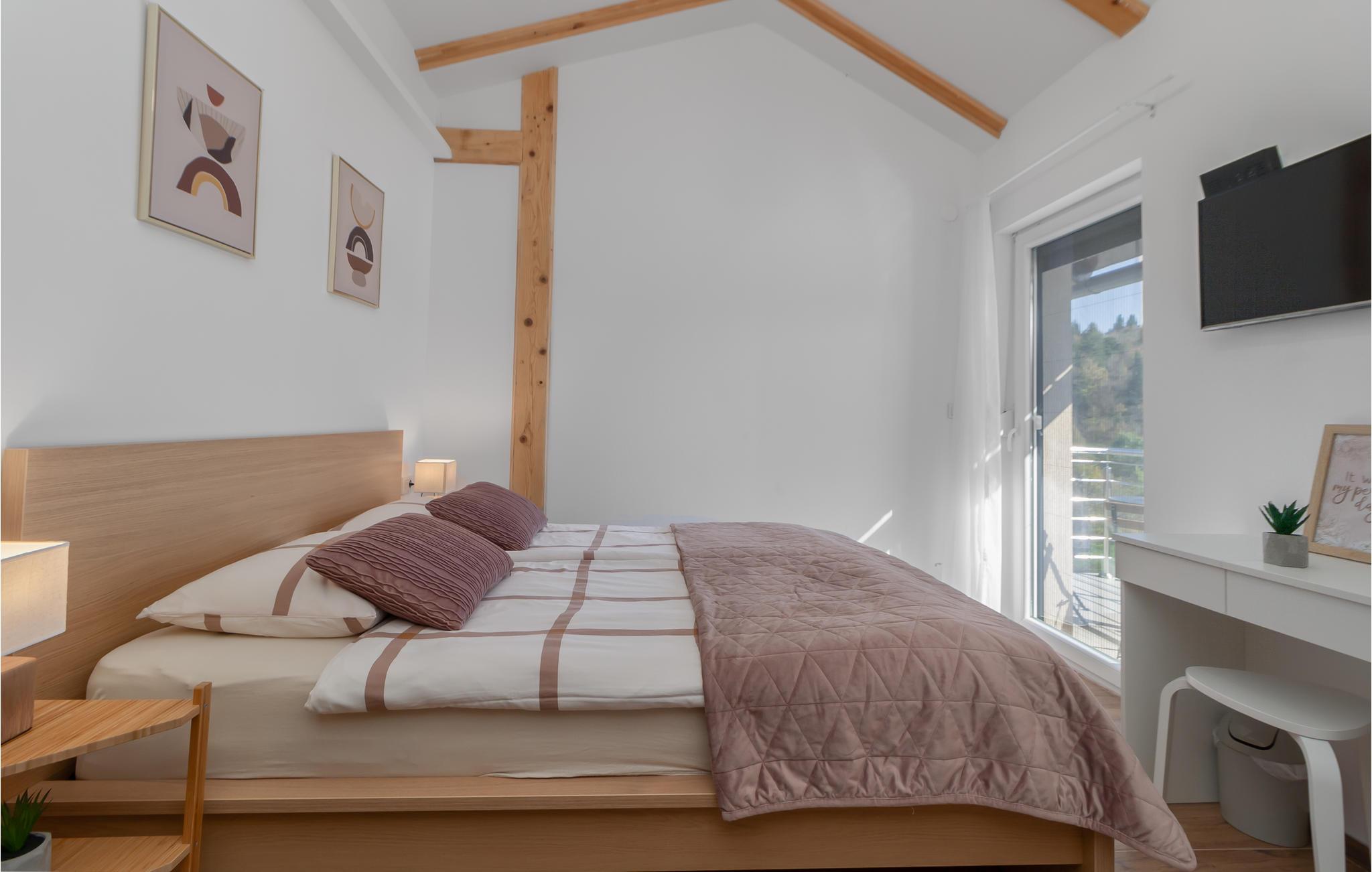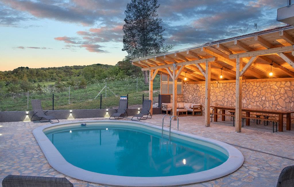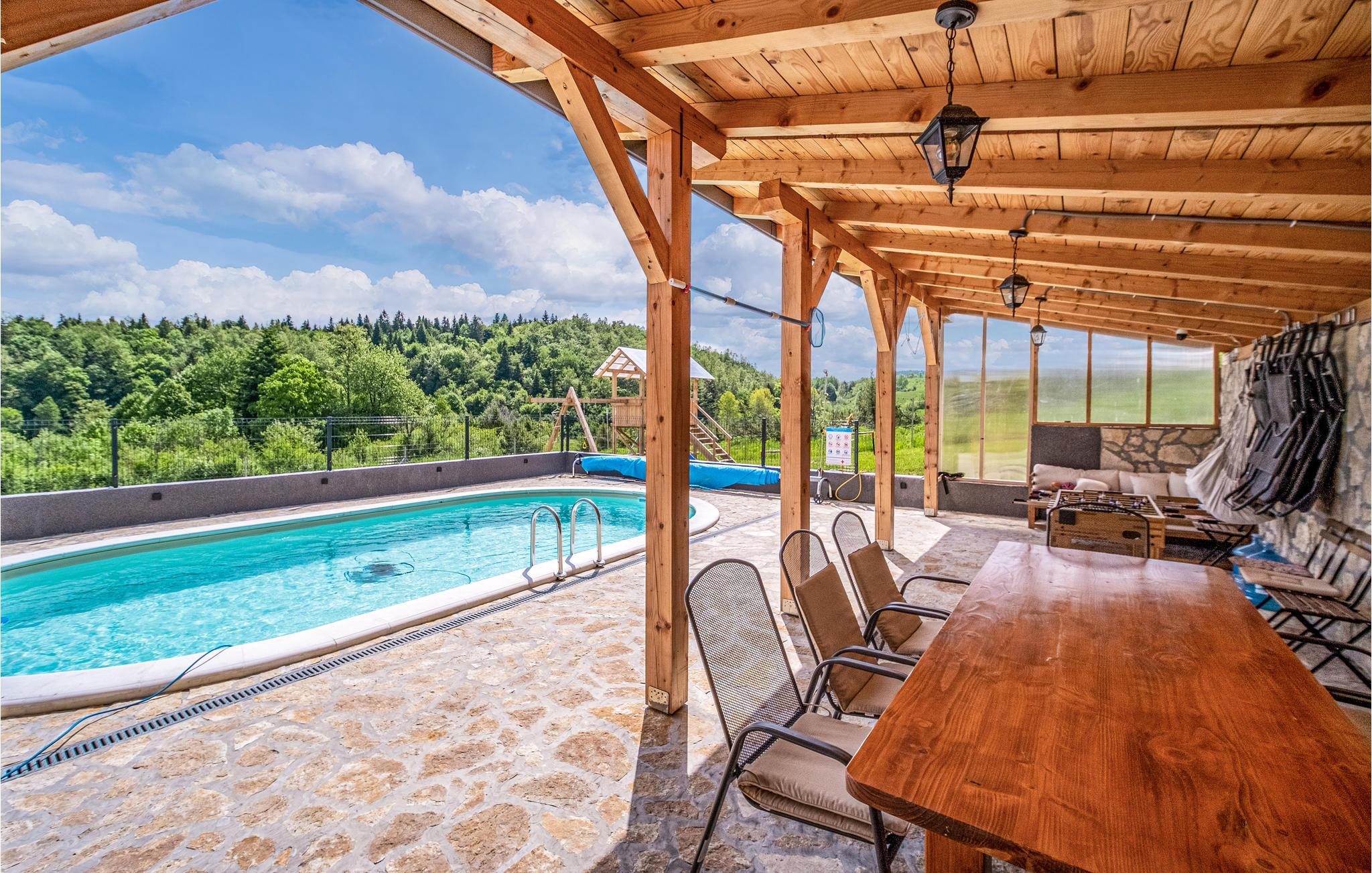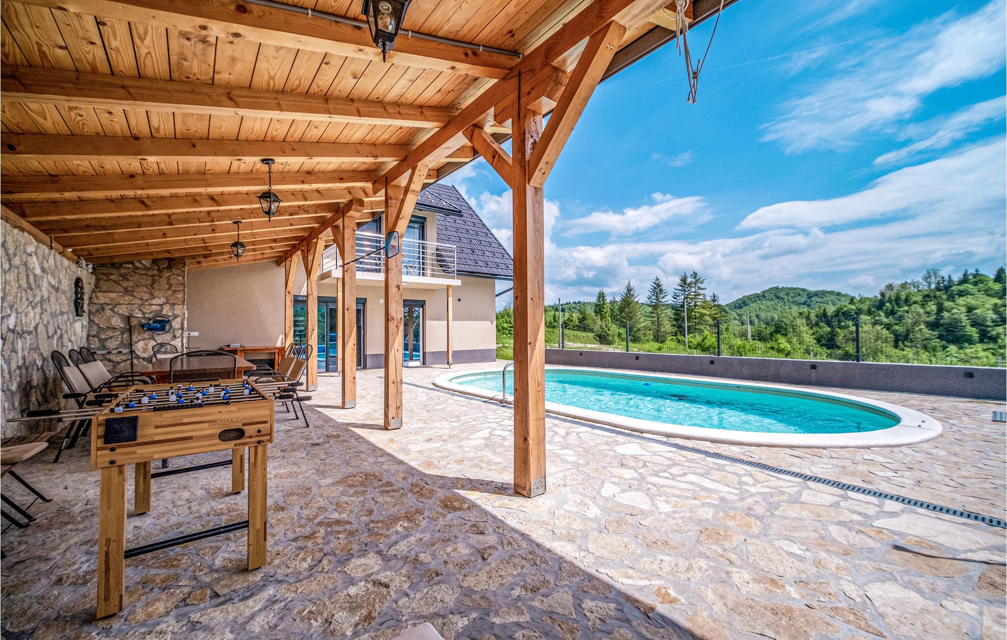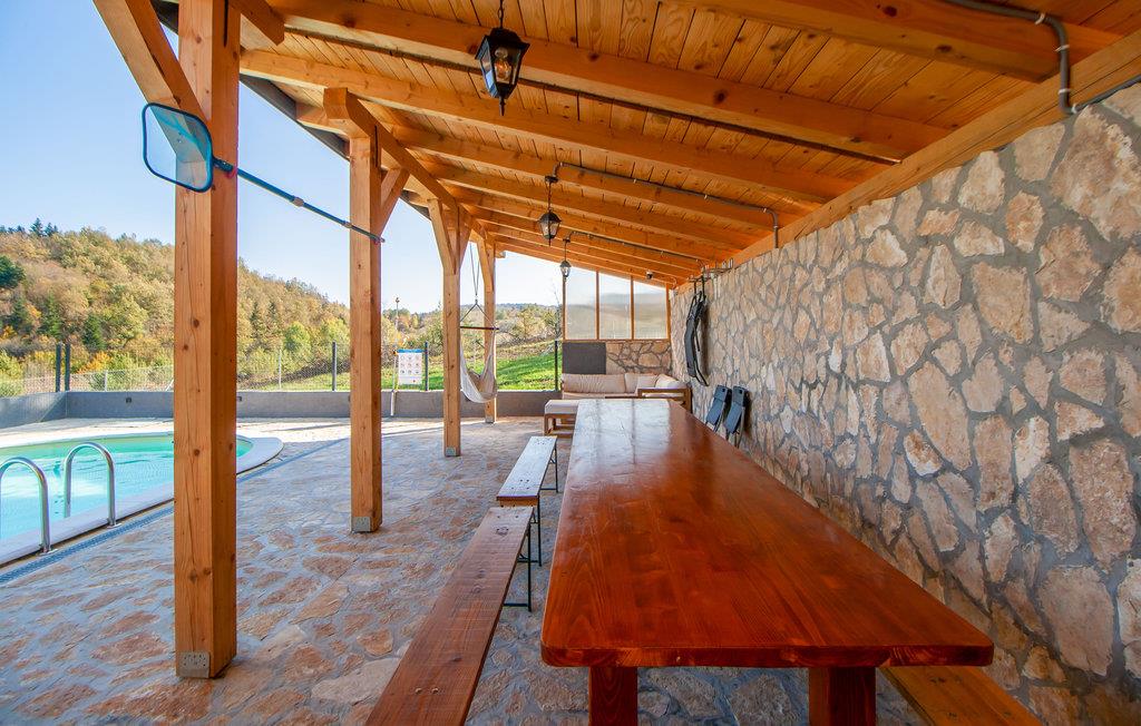 Dette smukke og rummelige feriehus ligger i rolige omgivelser i Ogulin-Kunic. Find hvile og afslapning i denne skønne bolig, som byder på indendørs wellness i spabadet og saunaen samt badesjov i poolen udenfor i haven. Nyd jeres feriemåltider på den overdækkede terrasse og sæt til jer rette i havemøblerne.