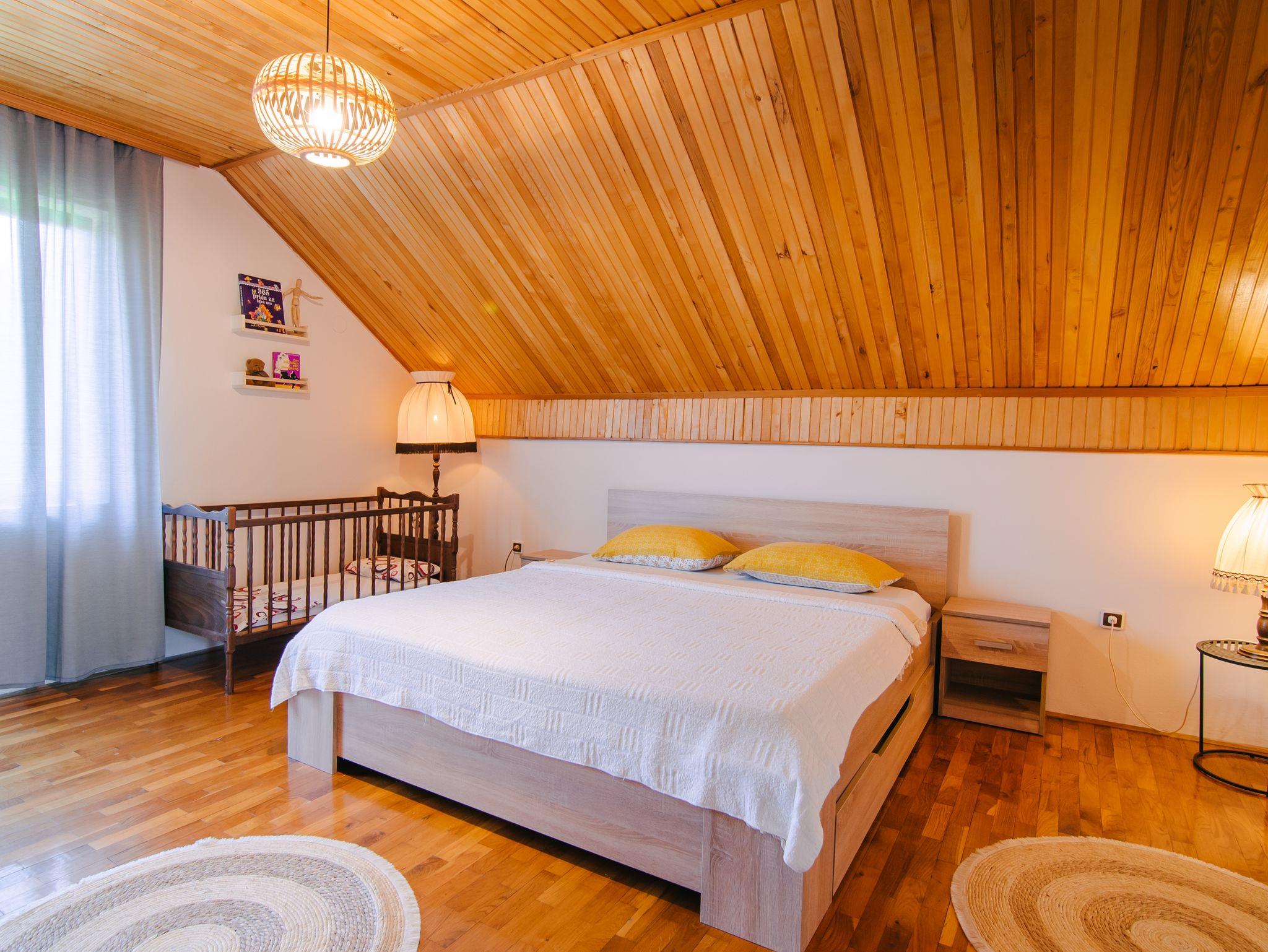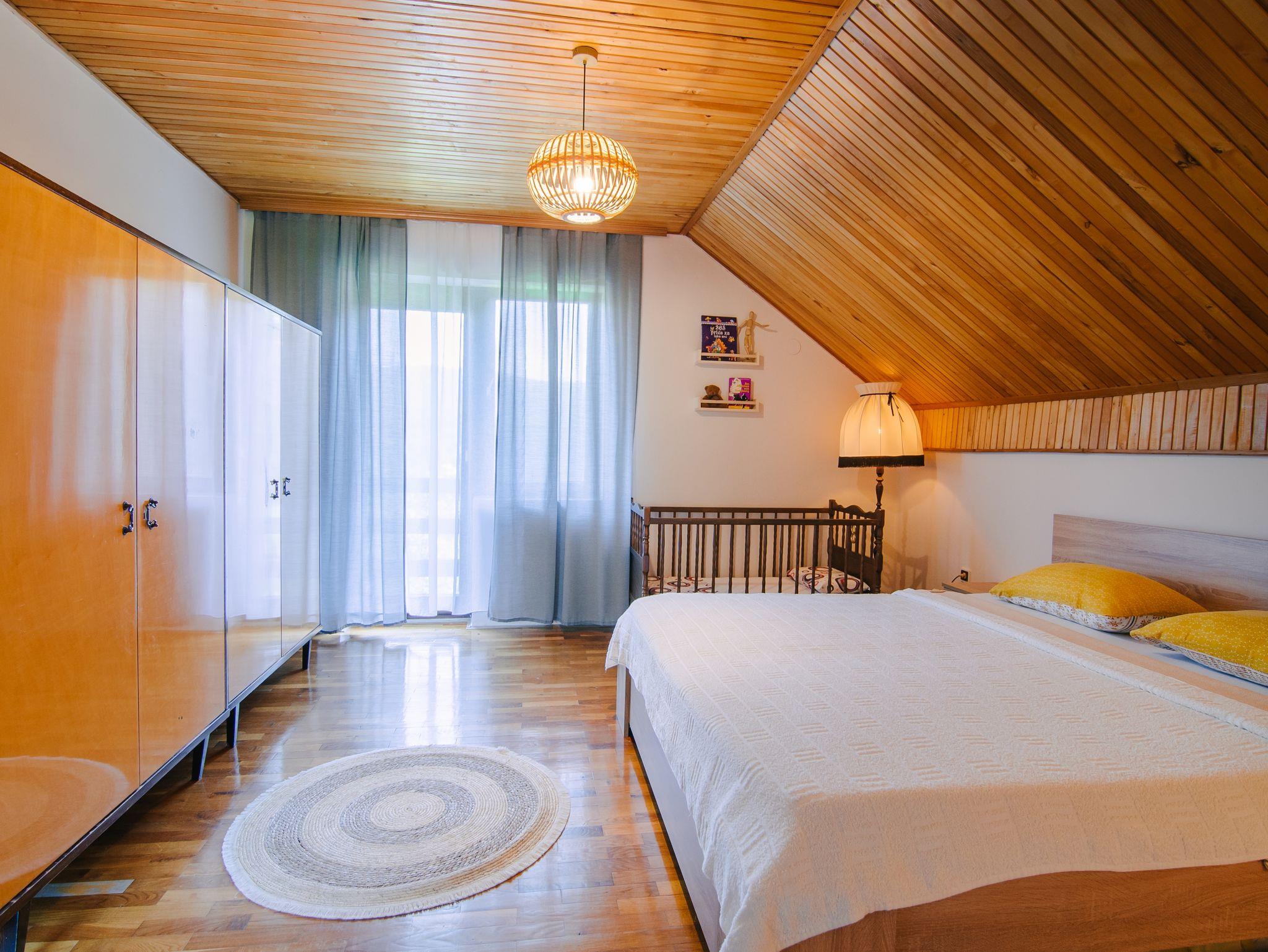 Haus bietet Platz für 8 Gäste. Die Betten sind in Schlafzimmern, die es 2 gibt, und in Wohnzimmer, innerhalb einer Gesamtfläche von 71m2, angeordnet. Die Gäste haben eine eigene Terrasse zur Verfügung, auf der sie in warmen Sommernächten genießen können. Für vollen Genuss und Entspannung gibt es einen privaten Grill für Gäste dieser Unterkunft. In der Unterkunftseinheit besteht die Möglichkeit des Mitbringens von Haustieren gegen Aufpreis. IM PREIS INBEGRIFFEN: Kurtaxe, Endreinigung, Zentralheizung, Parkplatz, Internet, Kinderbett, Bügeleisen, Föhn. VERBINDLICHE ZUSÄTZLICHE KOSTEN: Aufzahlung für Kurzaufenthalte (prozentualer Zuschlag pro Nächtigungsanzahl: 30% - 1, 20% - 2, 10% - 3). UNVERBINDLICHE ZUSÄTZLICHE KOSTEN: Haustiere (5,00 € pro Nacht). Die Verfügbarkeit zusätzlicher Dienstleistungen in Ihrem reservierten Termin und die Preise derselben (falls nicht aufgeführt) müssen im Voraus überprüft werden. Zusätzliche Dienstleistungen die in der Zahlungsaufforderung nicht aufgeführt sind werden direkt beim Vermieter bezahlt, angenommen der Gast nutzt auch diese. Ermäßigung auf den Grundpreis: Gratistag 14=13 (bei einem Aufenthalt von 14 Tagen oder mehr erhalten Sie einen Gratistag für den Aufenthalt bis 31.12.26).