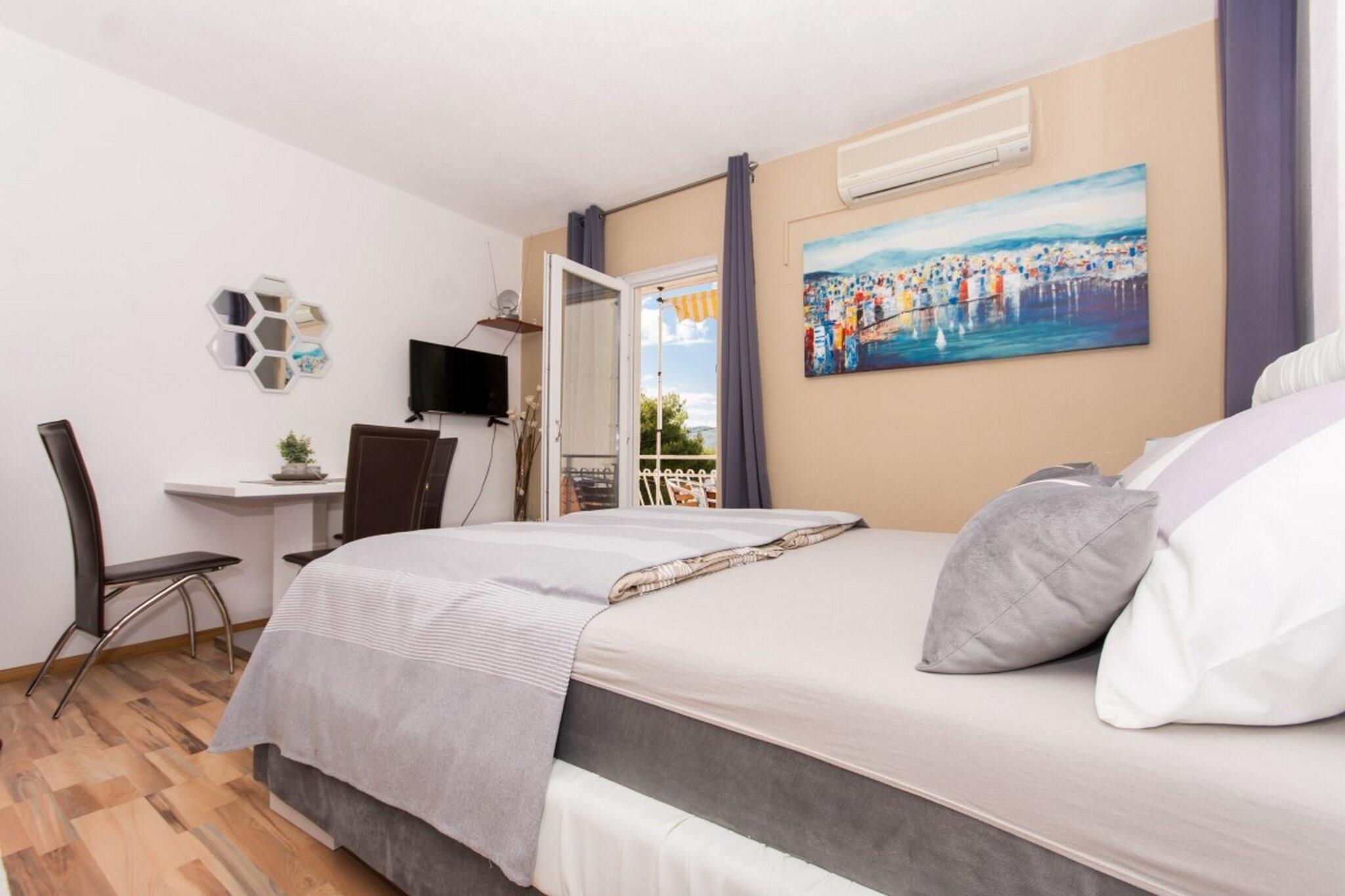 Villa Stil is located in Okrug Gornji located in the beautiful traditional village Okrug Gornji on the Island of Ciovo. Villa Stil is located only 350 m from the beach. Spacious terrace fitted with sun beds and parasols as well as a common seasonal outdoor swimming pool and a shared garden are at your disposal. Free private parking is provided, reservation is not needed. Pets are not allowed. Baby cot is available upon request. This studio apartment with balcony and sea view can accommodate three people. It features SAT LCD TV as well as air-conditioning. Kitchen is well equipped with refrigerator, trash cans, vitro ceramics and kitchen utensils. The private bathroom comes with shower and toilet.Hair dryer as well as linens and towels are at your disposal. By virtue of property's advantageous location, situated just 350 m from the restaurant and 350 m from the beach and bus stop, guests can find everything they need for every day life during their vacation in the vicinity of apartment. The closest super market is only 350 m away. Split airport is only 4.60 km away.