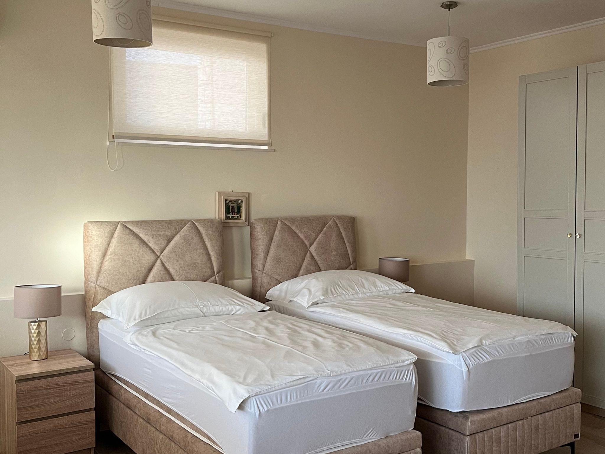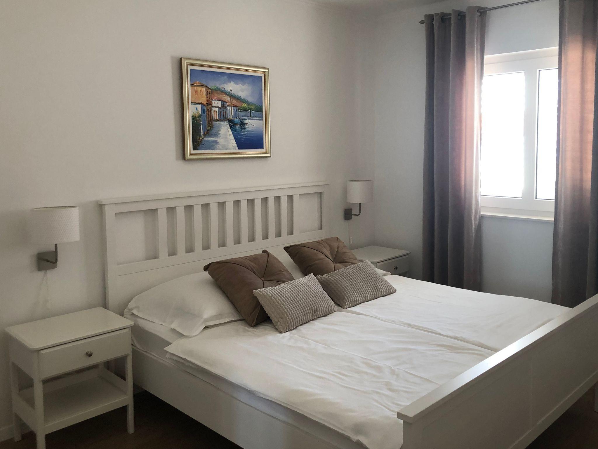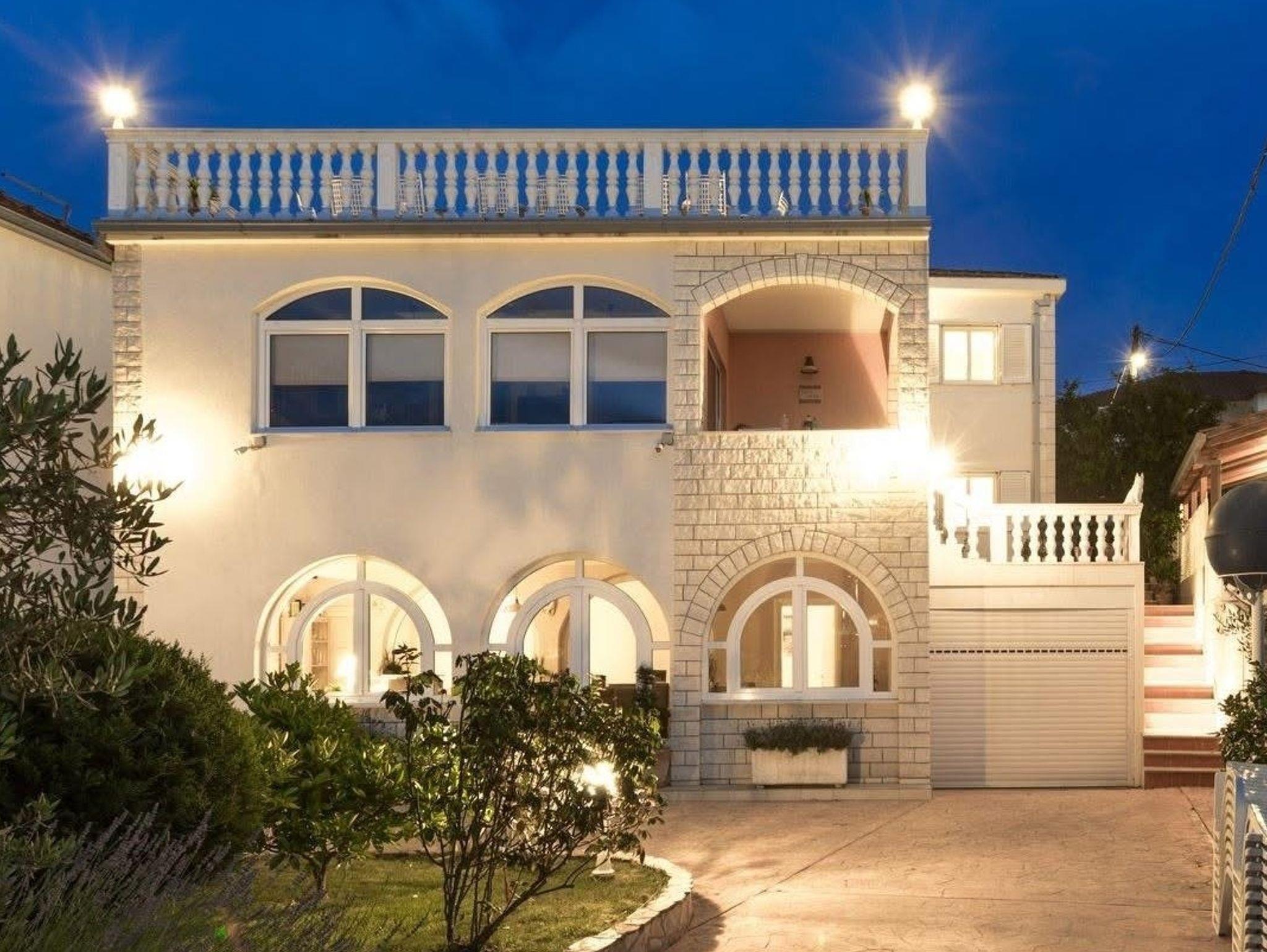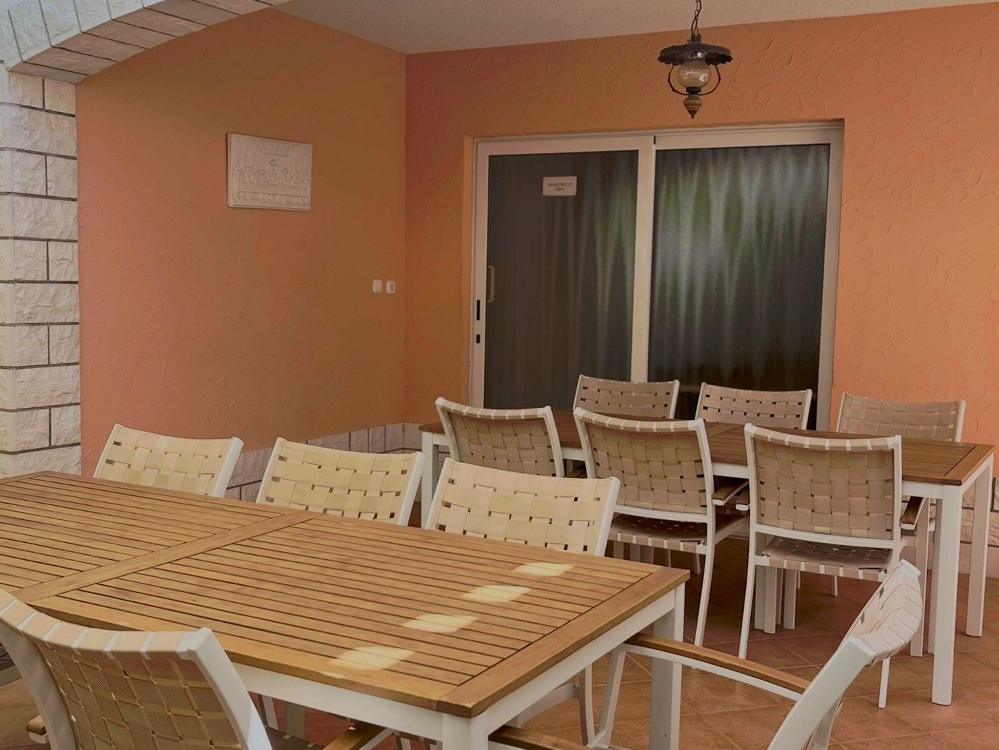 Ferienwohnung bietet Platz für 12 Gäste. Die Betten sind in Schlafzimmern, die es 5 gibt, und in Wohnzimmer, innerhalb einer Gesamtfläche von 144m2, angeordnet. Die Gäste haben eine eigene Terrasse zur Verfügung, auf der sie in warmen Sommernächten genießen können. Das Apartment bietet Meerblick. Es ist erlaubt, Speisen auf dem Gemeinschafts-Grill vorzubereiten. Räume der gebuchten Unterkunftseinheit werden nicht in eine Ganze verbunden. IM PREIS INBEGRIFFEN: Kurtaxe, Endreinigung, Klimatisierung, Parkplatz, Internet, Föhn, Liegestühle. VERBINDLICHE ZUSÄTZLICHE KOSTEN: Aufzahlung für Kurzaufenthalte (prozentualer Zuschlag pro Nächtigungsanzahl: 30% - 1, 20% - 2, 10% - 3). Die Verfügbarkeit zusätzlicher Dienstleistungen in Ihrem reservierten Termin und die Preise derselben (falls nicht aufgeführt) müssen im Voraus überprüft werden. Zusätzliche Dienstleistungen die in der Zahlungsaufforderung nicht aufgeführt sind werden direkt beim Vermieter bezahlt, angenommen der Gast nutzt auch diese. Ermäßigung auf den Grundpreis: Gratistag 14=13 (bei einem Aufenthalt von 14 Tagen oder mehr erhalten Sie einen Gratistag für den Aufenthalt bis 31.12.26).