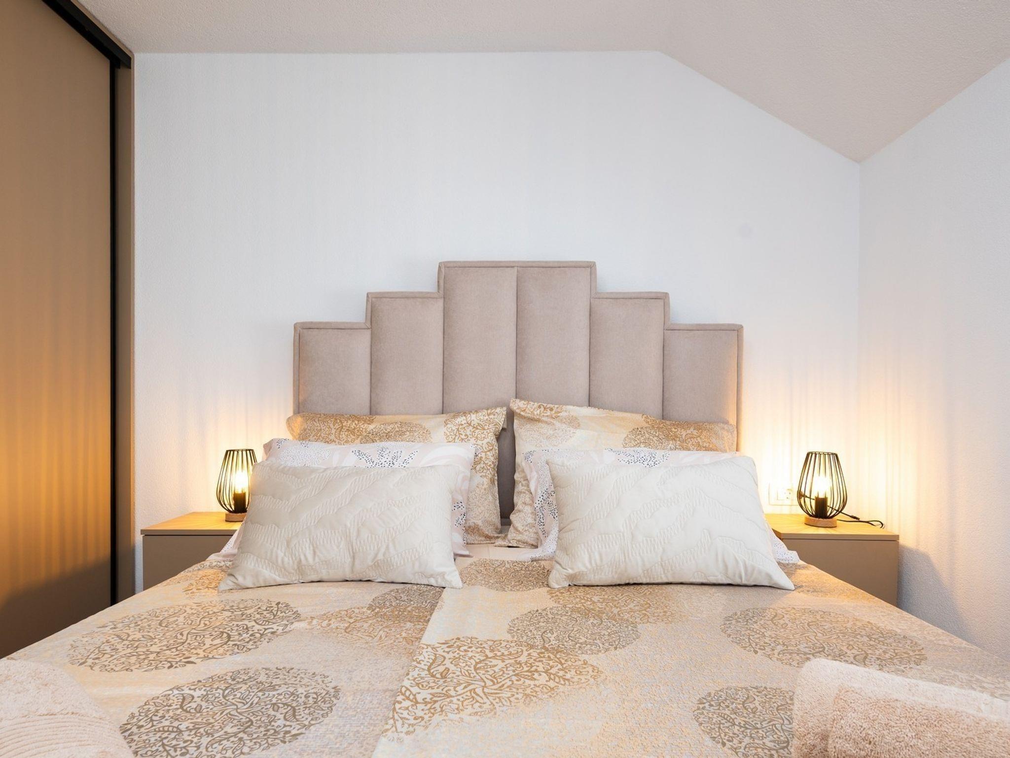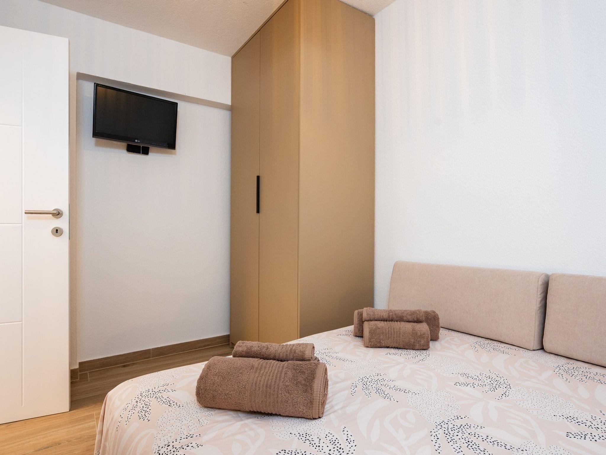 Ferienwohnung bietet Platz für 5 Gäste. Die Betten sind in Schlafzimmern, die es 2 gibt, und in Wohnzimmer, innerhalb einer Gesamtfläche von 55m2, angeordnet. Die Gäste haben einen eigenen Balkon zur Verfügung, auf der sie in warmen Sommernächten genießen können. Das Apartment bietet Meerblick. Es ist erlaubt, Speisen auf dem Gemeinschafts-Grill vorzubereiten. In der Unterkunftseinheit besteht die Möglichkeit des Mitbringens von Haustieren gegen Aufpreis. IM PREIS INBEGRIFFEN: Kurtaxe, Endreinigung, Klimatisierung, Parkplatz, Internet, Kinderbett, Bügeleisen, Bügelbrett, Föhn, tragbarer Grill. UNVERBINDLICHE ZUSÄTZLICHE KOSTEN: Haustiere (10,00 € pro Nacht). Die Verfügbarkeit zusätzlicher Dienstleistungen in Ihrem reservierten Termin und die Preise derselben (falls nicht aufgeführt) müssen im Voraus überprüft werden. Zusätzliche Dienstleistungen die in der Zahlungsaufforderung nicht aufgeführt sind werden direkt beim Vermieter bezahlt, angenommen der Gast nutzt auch diese.
