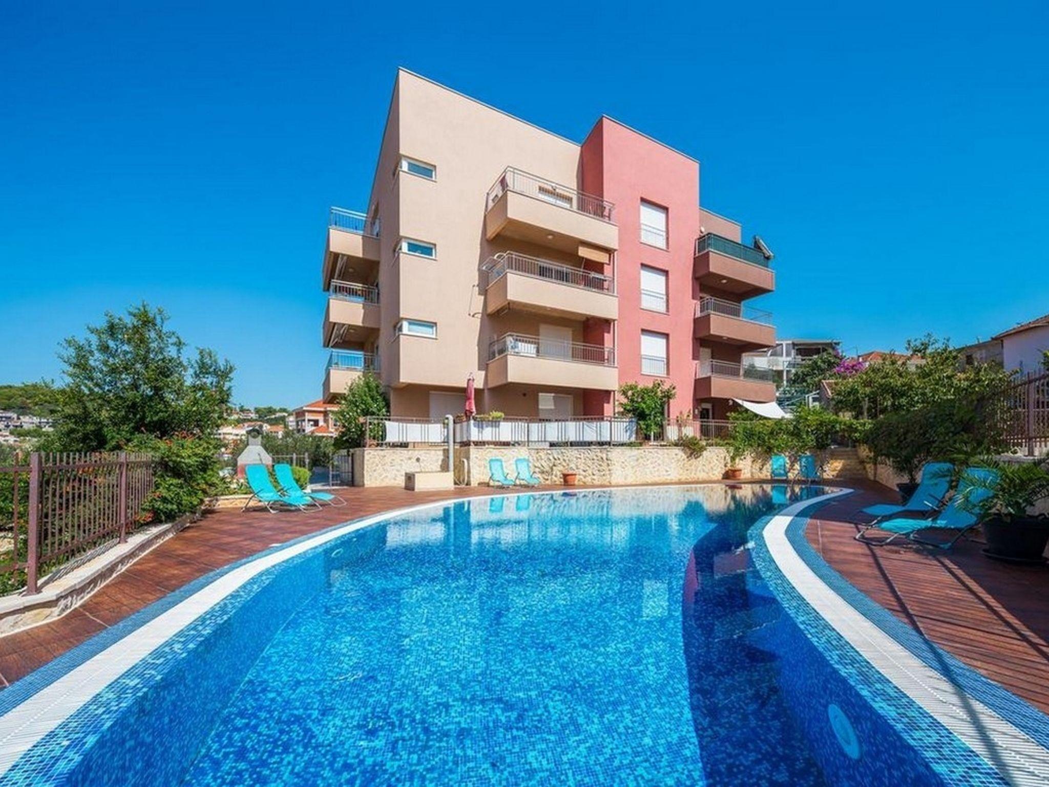 Ferienwohnungen mit Pool für Familien Okrug Gornji, Ciovo - 22587, 3-Zimmer-Ferienwohnung mit Terrasse und Meerblick Okrug Gornji, Ciovo A-22587-a