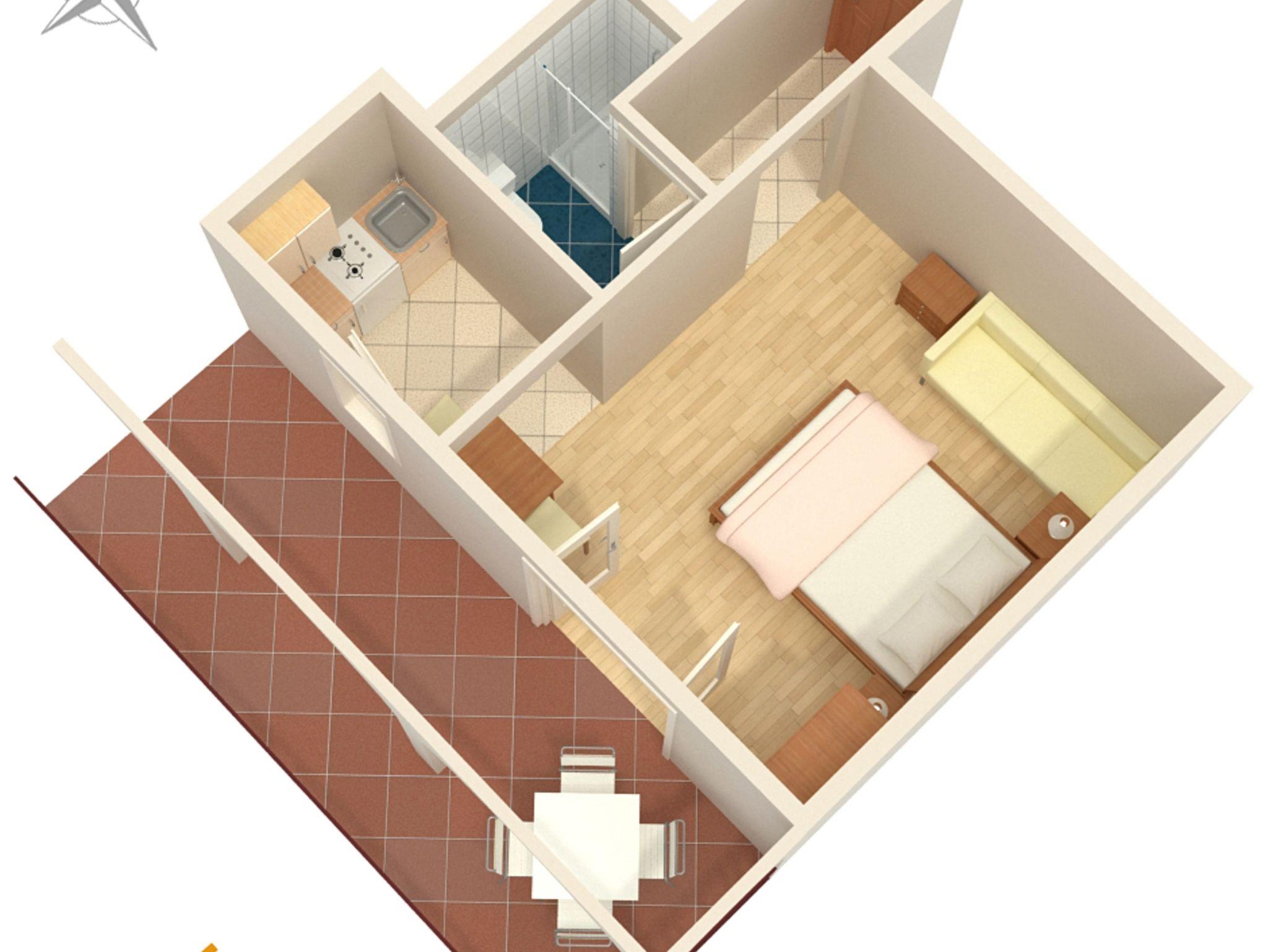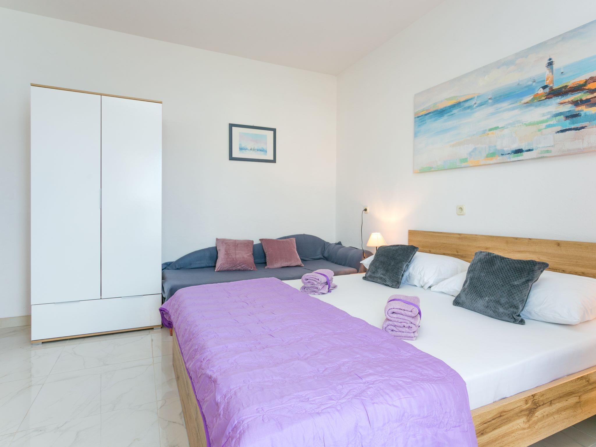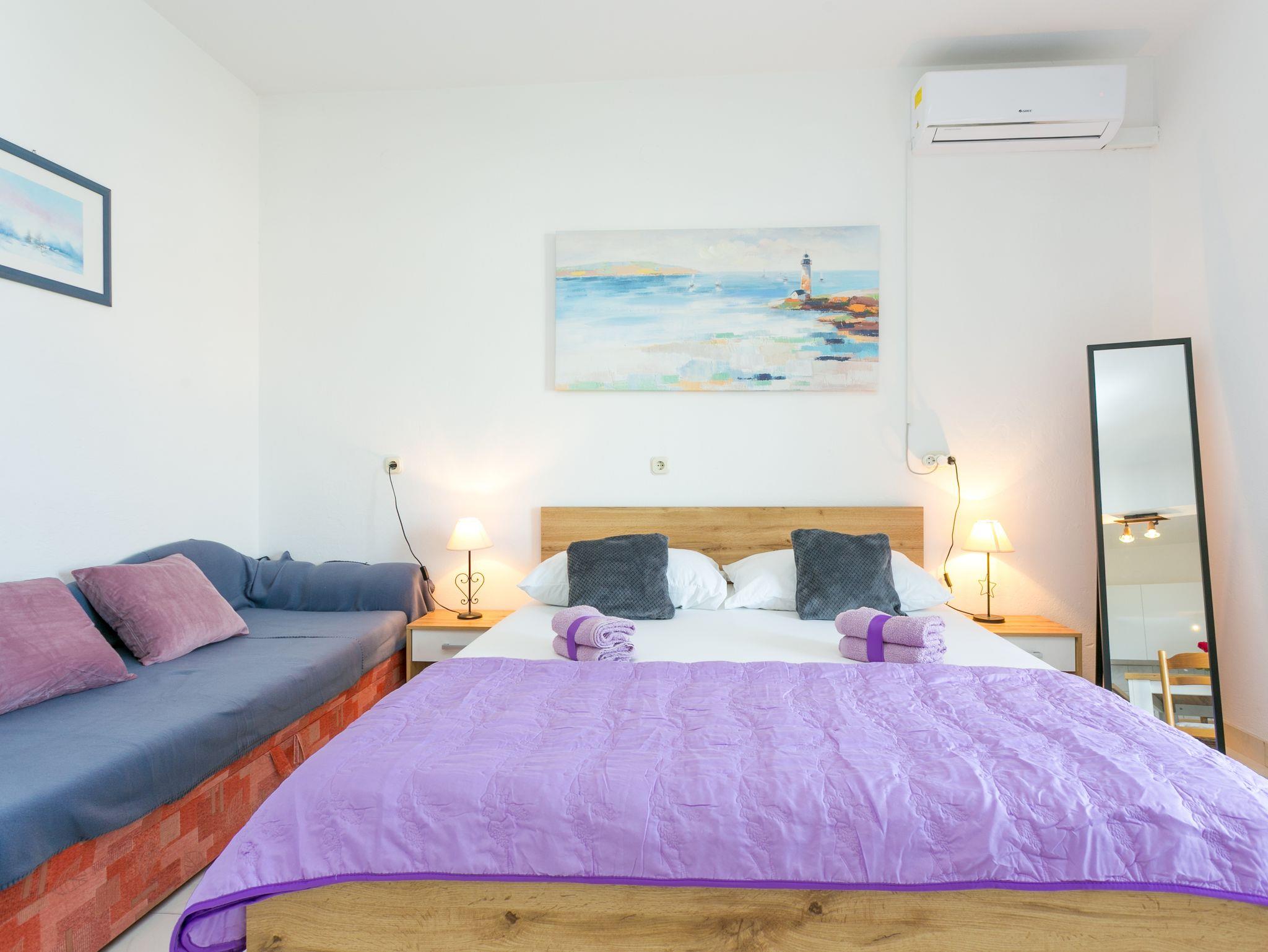 Studio bietet Platz für 3 Gäste. Die Betten sind in Schlafzimmern, die es 1 gibt, innerhalb einer Gesamtfläche von 24m2, angeordnet. Die Gäste haben eine eigene Terrasse zur Verfügung, auf der sie in warmen Sommernächten genießen können. Das Studio-Apartment bietet Meerblick. Es ist erlaubt, Speisen auf dem Gemeinschafts-Grill vorzubereiten. In der Unterkunftseinheit besteht die Möglichkeit des Mitbringens von Haustieren, und die Dienstleistung ist im Preis der Unterkunft enthalten. IM PREIS INBEGRIFFEN: Kurtaxe, Endreinigung, Klimatisierung, Parkplatz, Internet, Haustiere. Die Verfügbarkeit zusätzlicher Dienstleistungen in Ihrem reservierten Termin und die Preise derselben (falls nicht aufgeführt) müssen im Voraus überprüft werden. Zusätzliche Dienstleistungen die in der Zahlungsaufforderung nicht aufgeführt sind werden direkt beim Vermieter bezahlt, angenommen der Gast nutzt auch diese. Ermäßigung auf den Grundpreis: Gratistag 21=19 (bei einem Aufenthalt von 21 Tagen oder mehr erhalten Sie 2 Gratistage für den Aufenthalt bis 31.12.26).