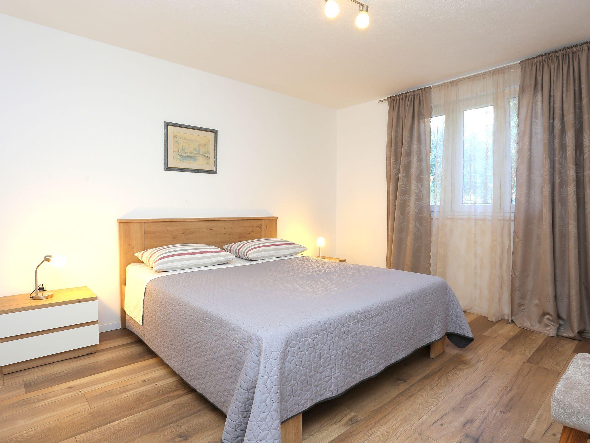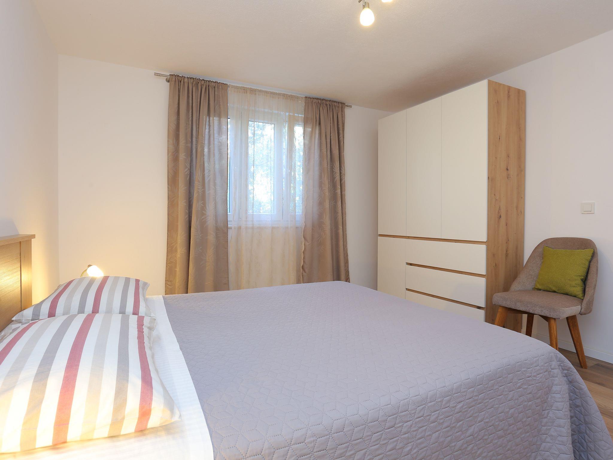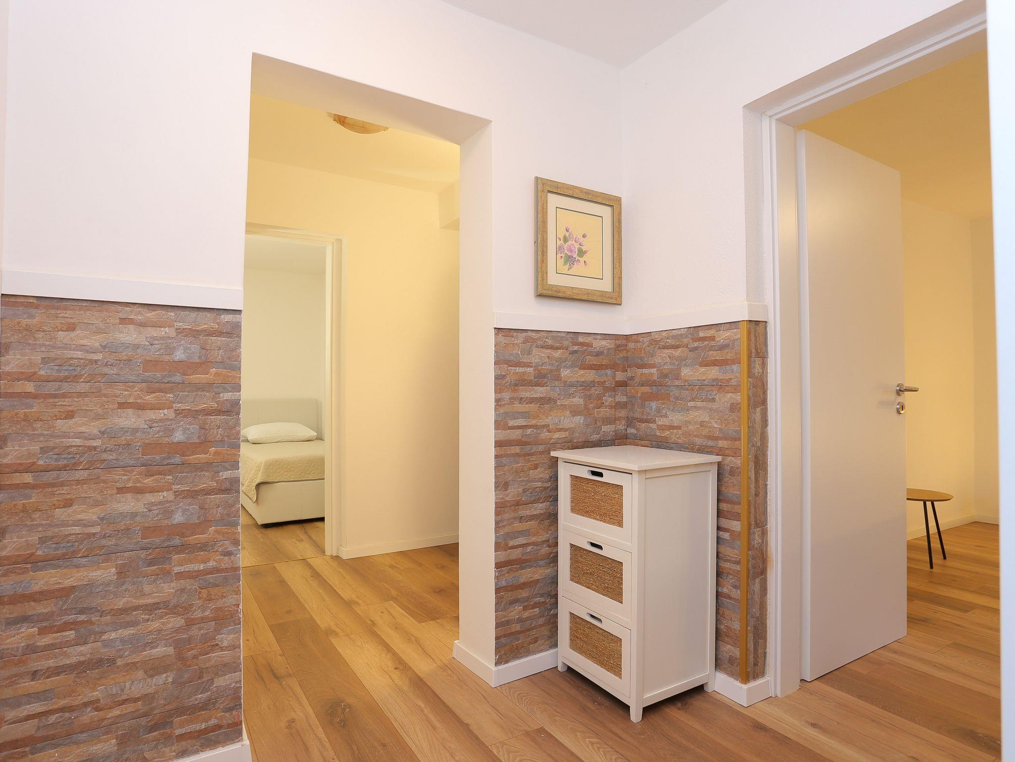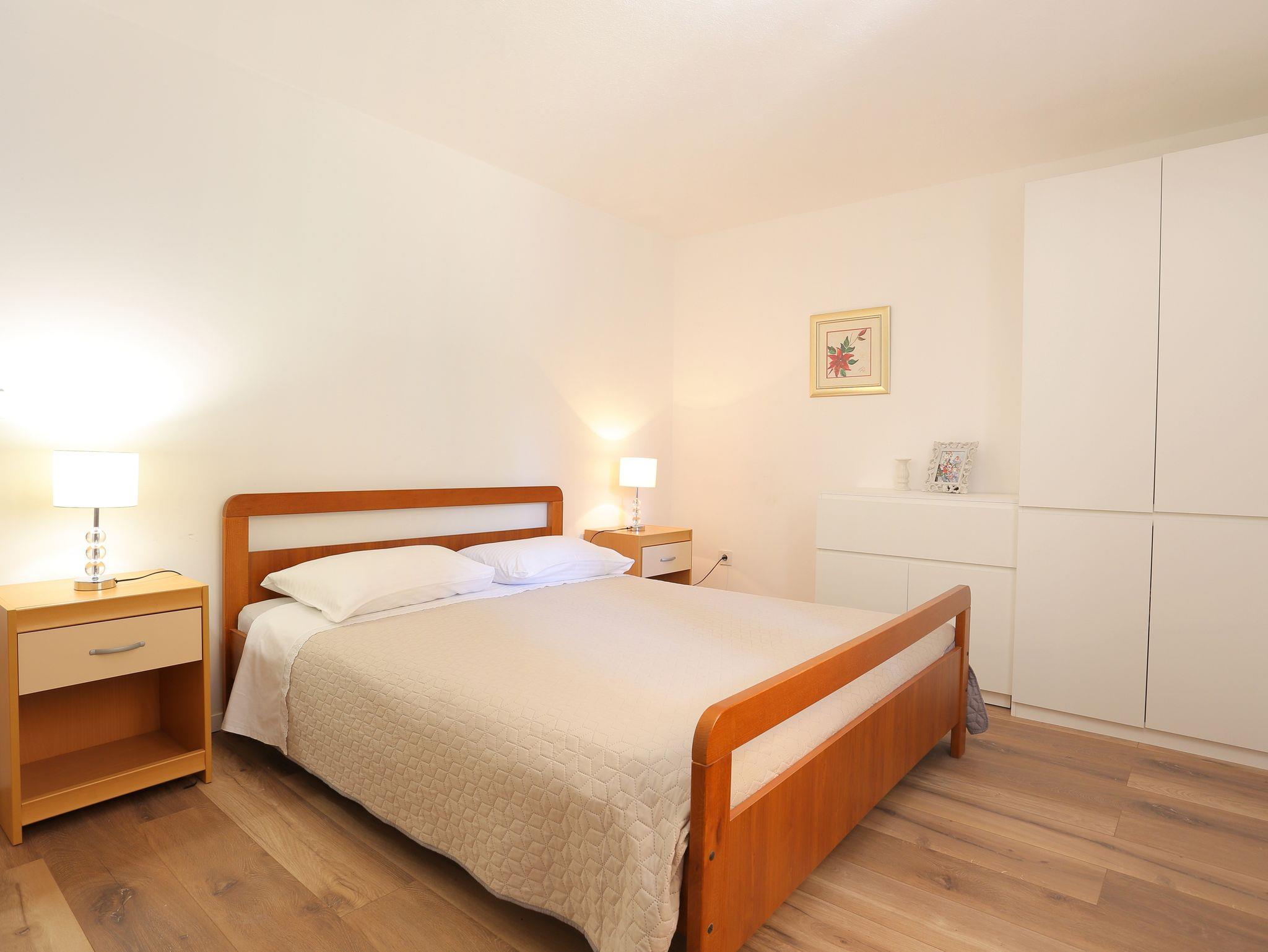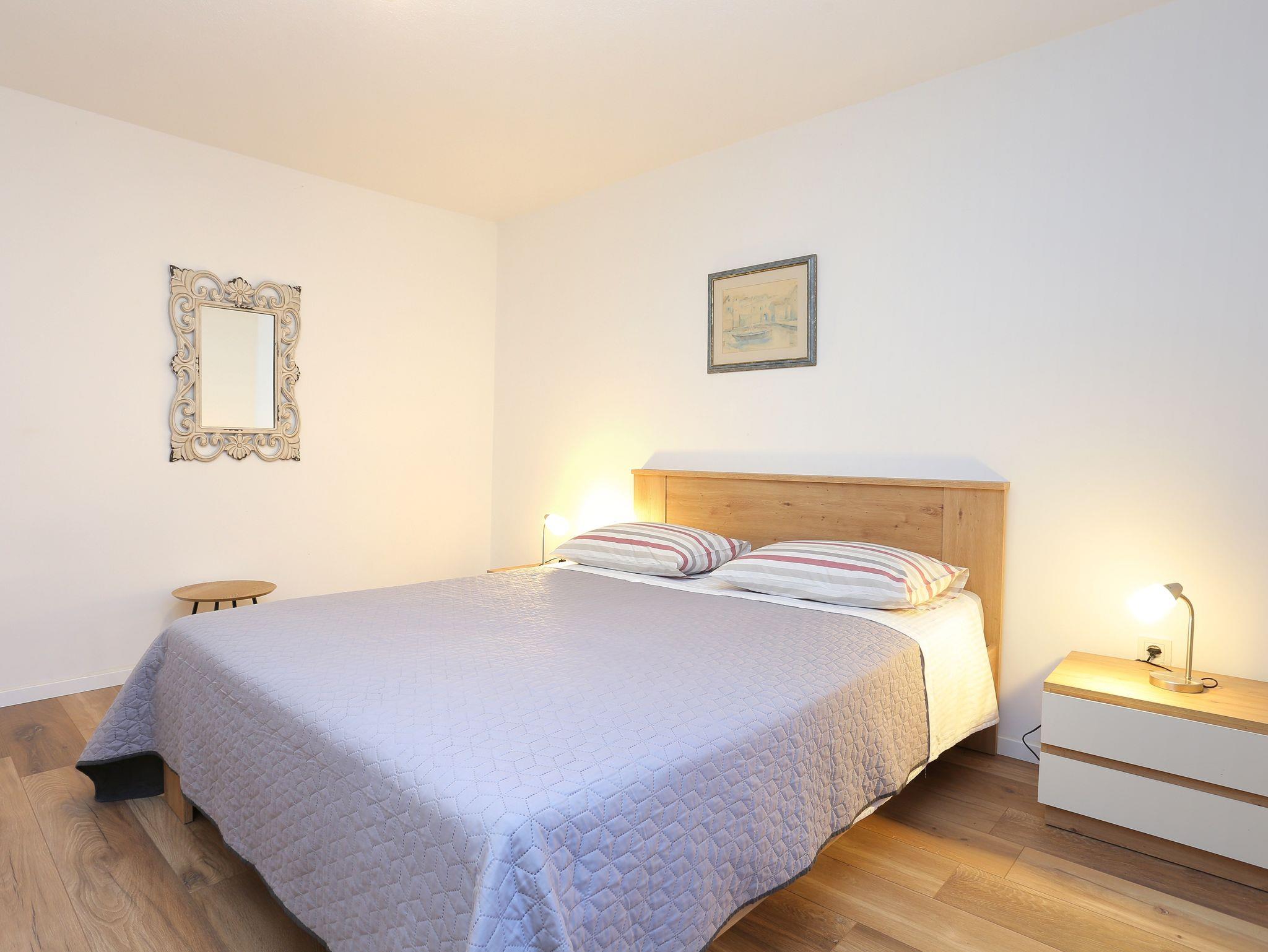 Ferienwohnung bietet Platz für 5 Gäste. Die Betten sind in Schlafzimmern, die es 2 gibt, innerhalb einer Gesamtfläche von 58m2, angeordnet. Die Gäste haben eine eigene Terrasse zur Verfügung, auf der sie in warmen Sommernächten genießen können. Es ist erlaubt, Speisen auf dem Gemeinschafts-Grill vorzubereiten. IM PREIS INBEGRIFFEN: Kurtaxe, Endreinigung, Klimatisierung, Parkplatz, Internet, Föhn. VERBINDLICHE ZUSÄTZLICHE KOSTEN: Aufzahlung für Kurzaufenthalte (prozentualer Zuschlag pro Nächtigungsanzahl: 30% - 1, 20% - 2, 10% - 3). UNVERBINDLICHE ZUSÄTZLICHE KOSTEN: Bootsanlegeplatz (10,00 € pro Nacht). Die Verfügbarkeit zusätzlicher Dienstleistungen in Ihrem reservierten Termin und die Preise derselben (falls nicht aufgeführt) müssen im Voraus überprüft werden. Zusätzliche Dienstleistungen die in der Zahlungsaufforderung nicht aufgeführt sind werden direkt beim Vermieter bezahlt, angenommen der Gast nutzt auch diese.