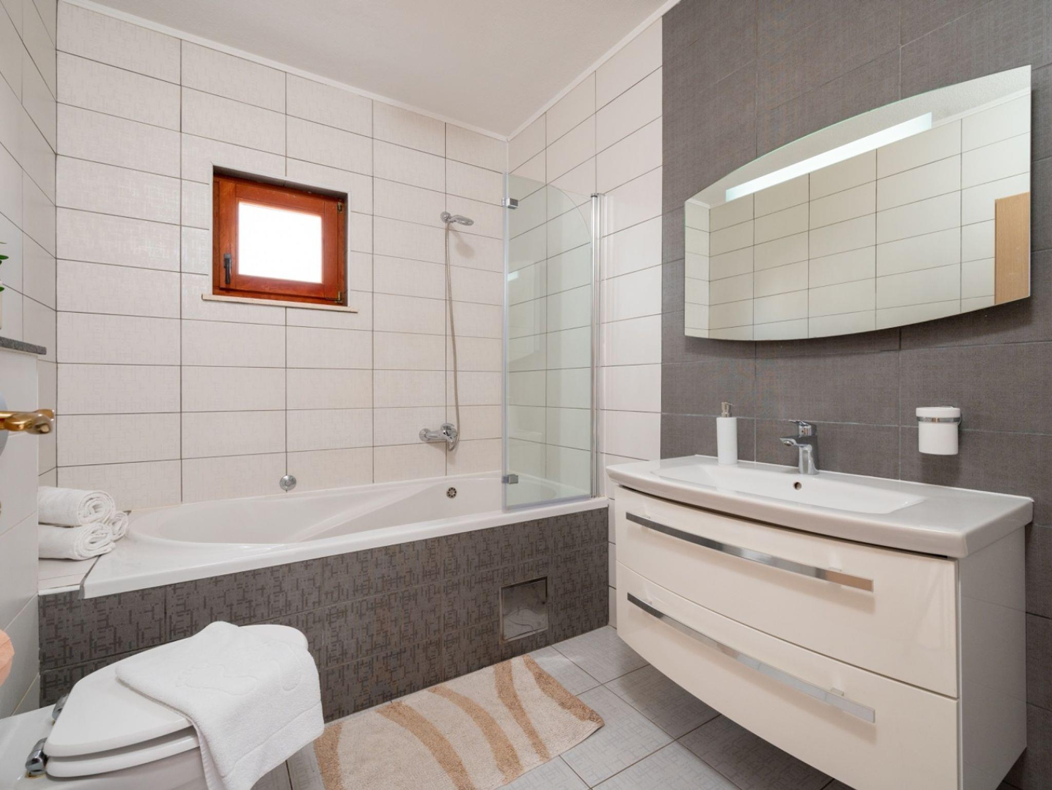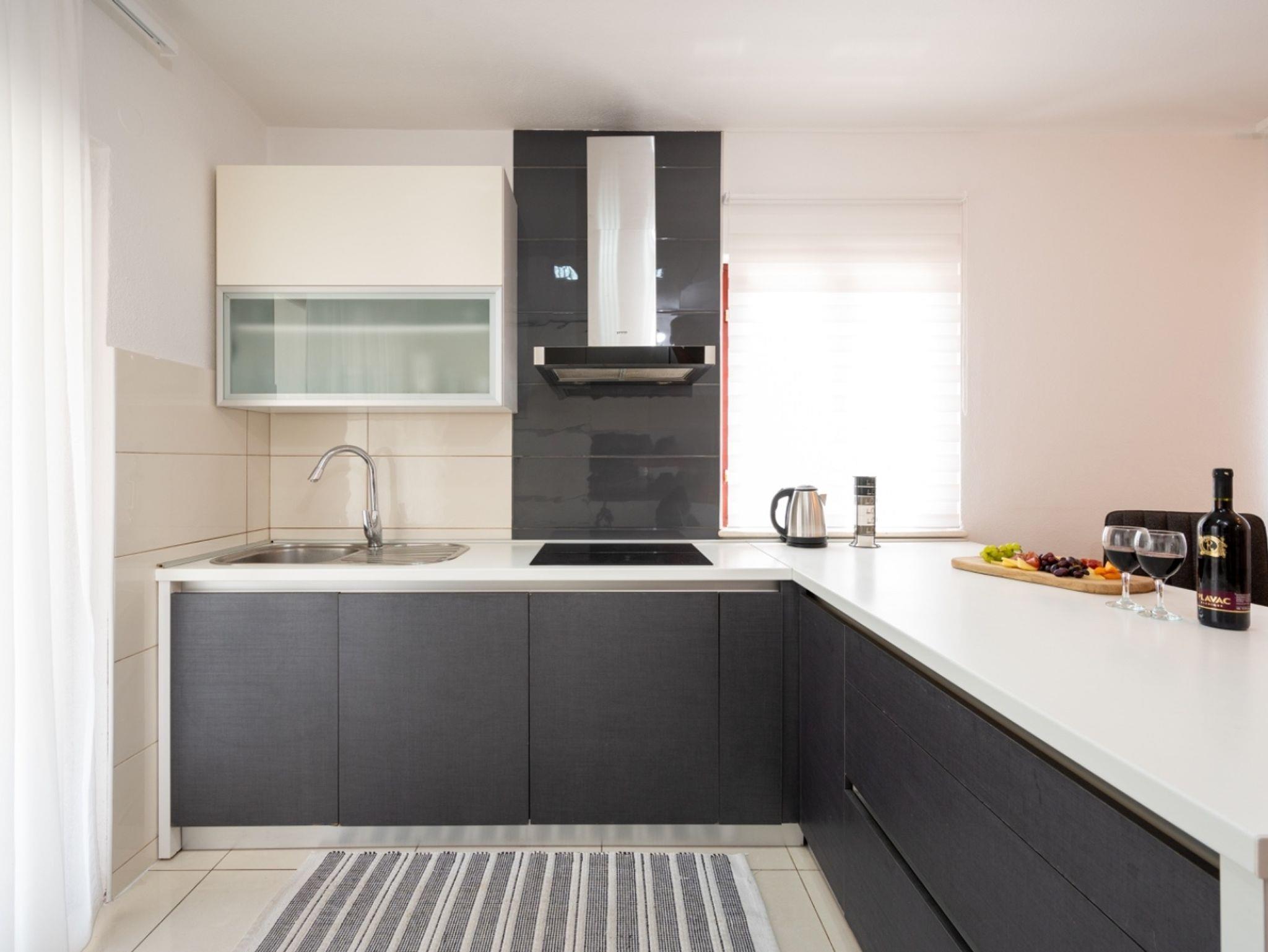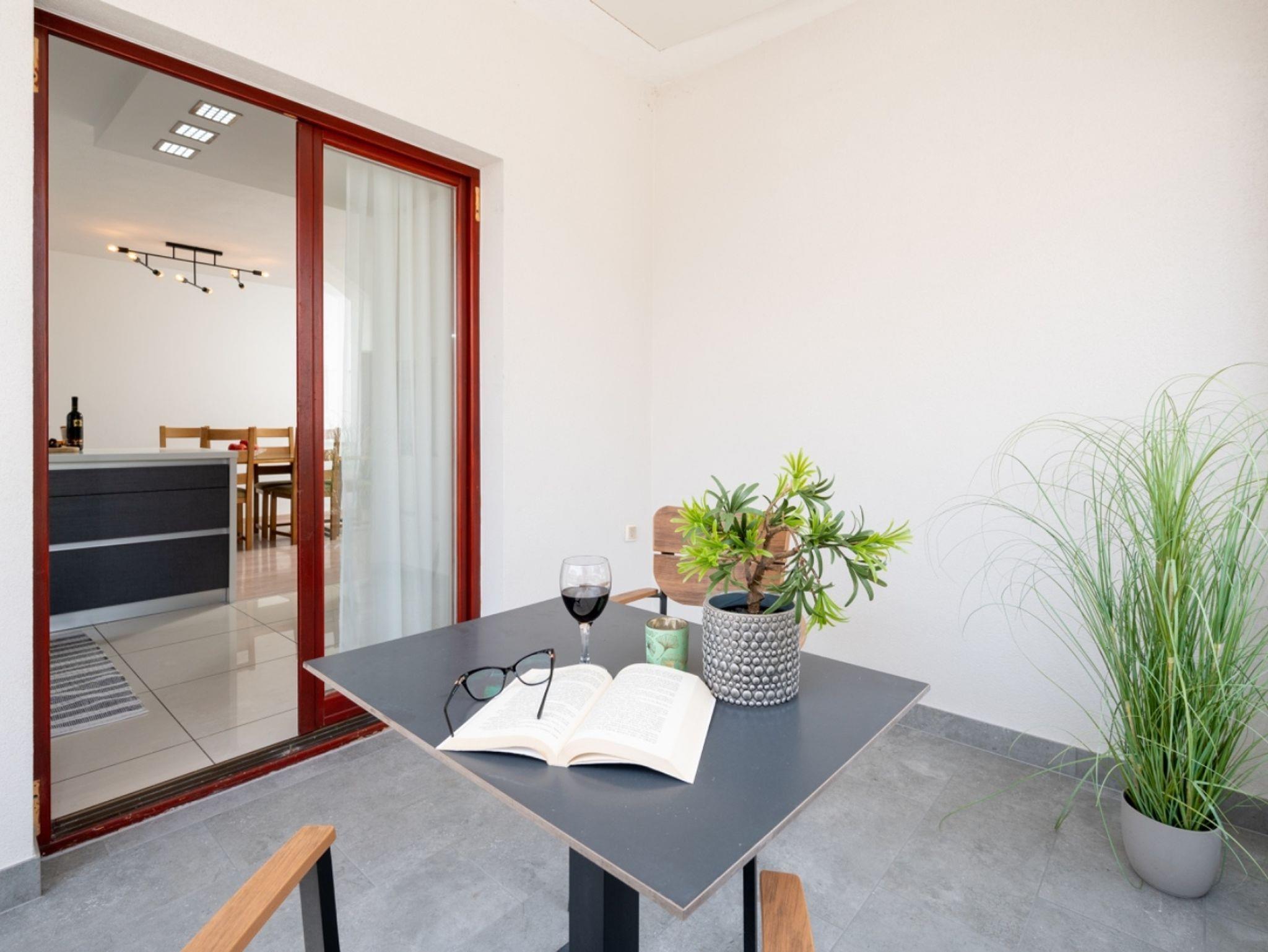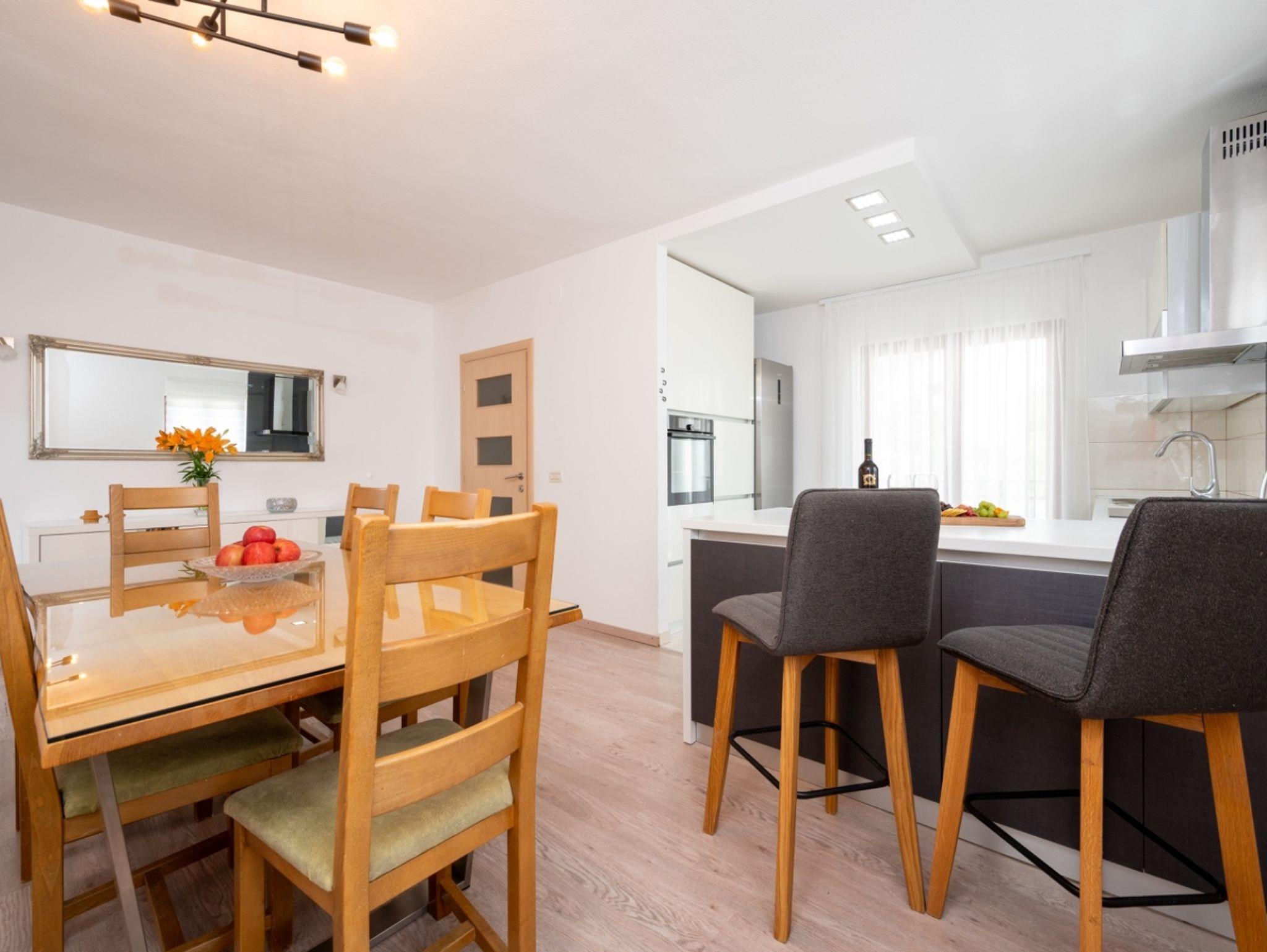 Ferienwohnung bietet Platz für 5 Gäste. Die Betten sind in Schlafzimmern, die es 2 gibt, und in Wohnzimmer, innerhalb einer Gesamtfläche von 90m2, angeordnet. Die Gäste haben eine eigene Terrasse zur Verfügung, auf der sie in warmen Sommernächten genießen können. Das Apartment bietet Meerblick. IM PREIS INBEGRIFFEN: Kurtaxe, Endreinigung, Klimatisierung, Parkplatz, Internet, Kinderbett, Bügeleisen, Bügelbrett, Föhn. VERBINDLICHE ZUSÄTZLICHE KOSTEN: Aufzahlung für Kurzaufenthalte (prozentualer Zuschlag pro Nächtigungsanzahl: 30% - 1, 20% - 2, 10% - 3). Die Verfügbarkeit zusätzlicher Dienstleistungen in Ihrem reservierten Termin und die Preise derselben (falls nicht aufgeführt) müssen im Voraus überprüft werden. Zusätzliche Dienstleistungen die in der Zahlungsaufforderung nicht aufgeführt sind werden direkt beim Vermieter bezahlt, angenommen der Gast nutzt auch diese.