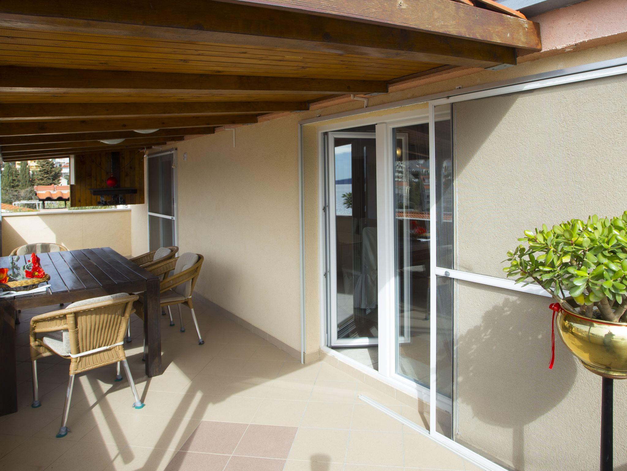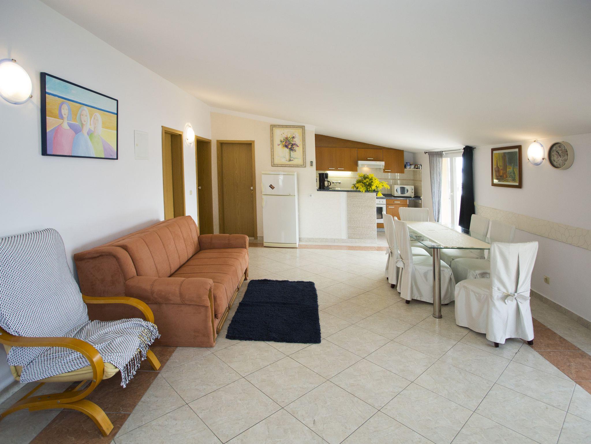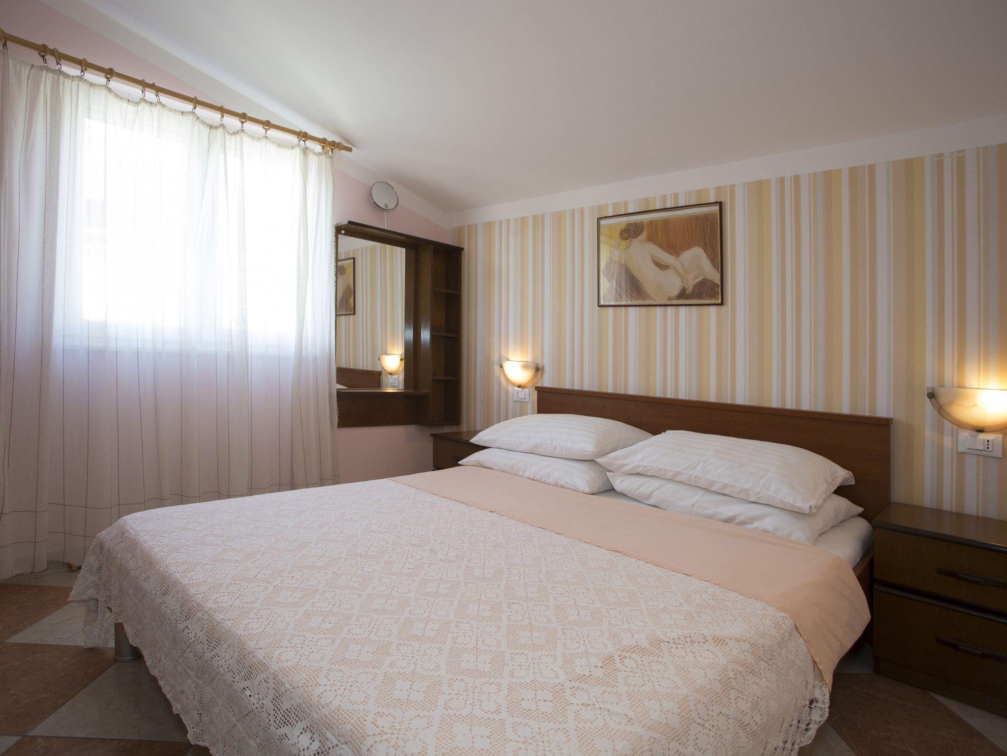 Ferienwohnung bietet Platz für 6 Gäste. Die Betten sind in Schlafzimmern, die es 2 gibt, und in Wohnzimmer, innerhalb einer Gesamtfläche von 52m2, angeordnet. Die Gäste haben eine eigene Terrasse zur Verfügung, auf der sie in warmen Sommernächten genießen können. Das Apartment bietet Meerblick. Es ist erlaubt, Speisen auf dem Gemeinschafts-Grill vorzubereiten. IM PREIS INBEGRIFFEN: Kurtaxe, Endreinigung, Klimatisierung, Parkplatz, Internet, Kinderbett, Bügeleisen, Bügelbrett, Föhn. VERBINDLICHE ZUSÄTZLICHE KOSTEN: Aufzahlung für Kurzaufenthalte (prozentualer Zuschlag pro Nächtigungsanzahl: 30% - 1, 20% - 2, 10% - 3). UNVERBINDLICHE ZUSÄTZLICHE KOSTEN: Bootsanlegeplatz (10,00 € pro Nacht). Die Verfügbarkeit zusätzlicher Dienstleistungen in Ihrem reservierten Termin und die Preise derselben (falls nicht aufgeführt) müssen im Voraus überprüft werden. Zusätzliche Dienstleistungen die in der Zahlungsaufforderung nicht aufgeführt sind werden direkt beim Vermieter bezahlt, angenommen der Gast nutzt auch diese.