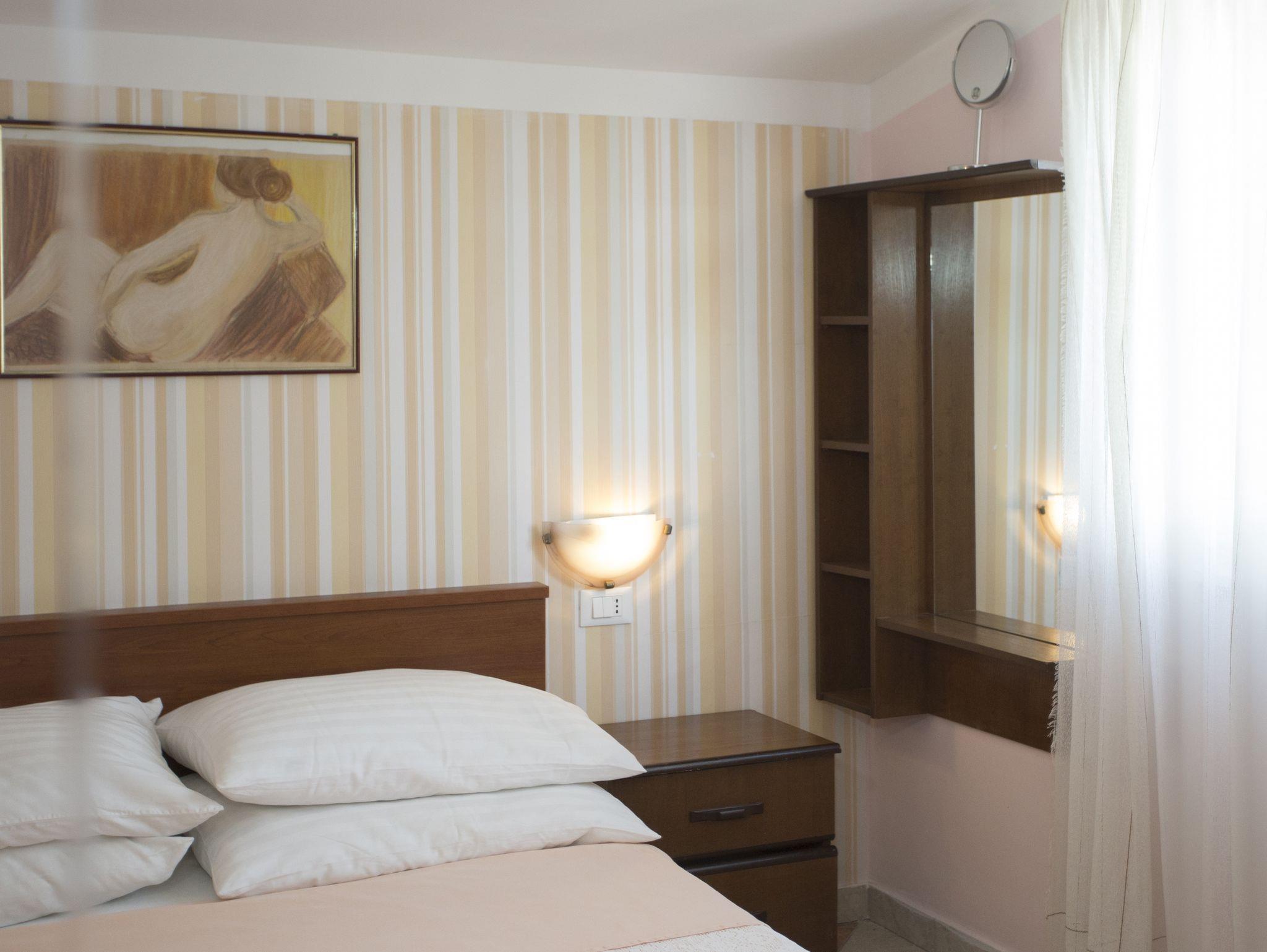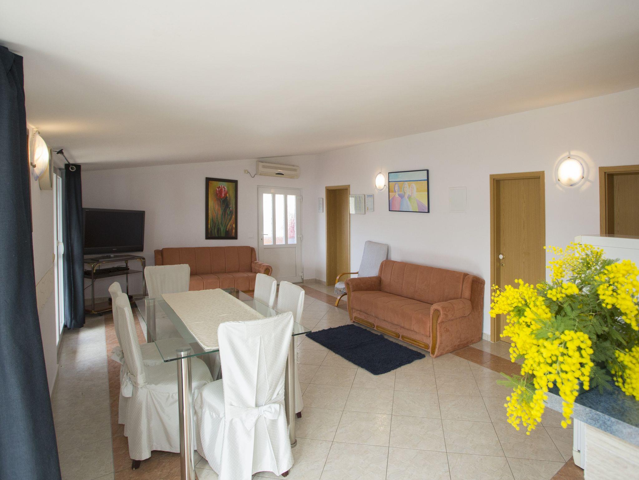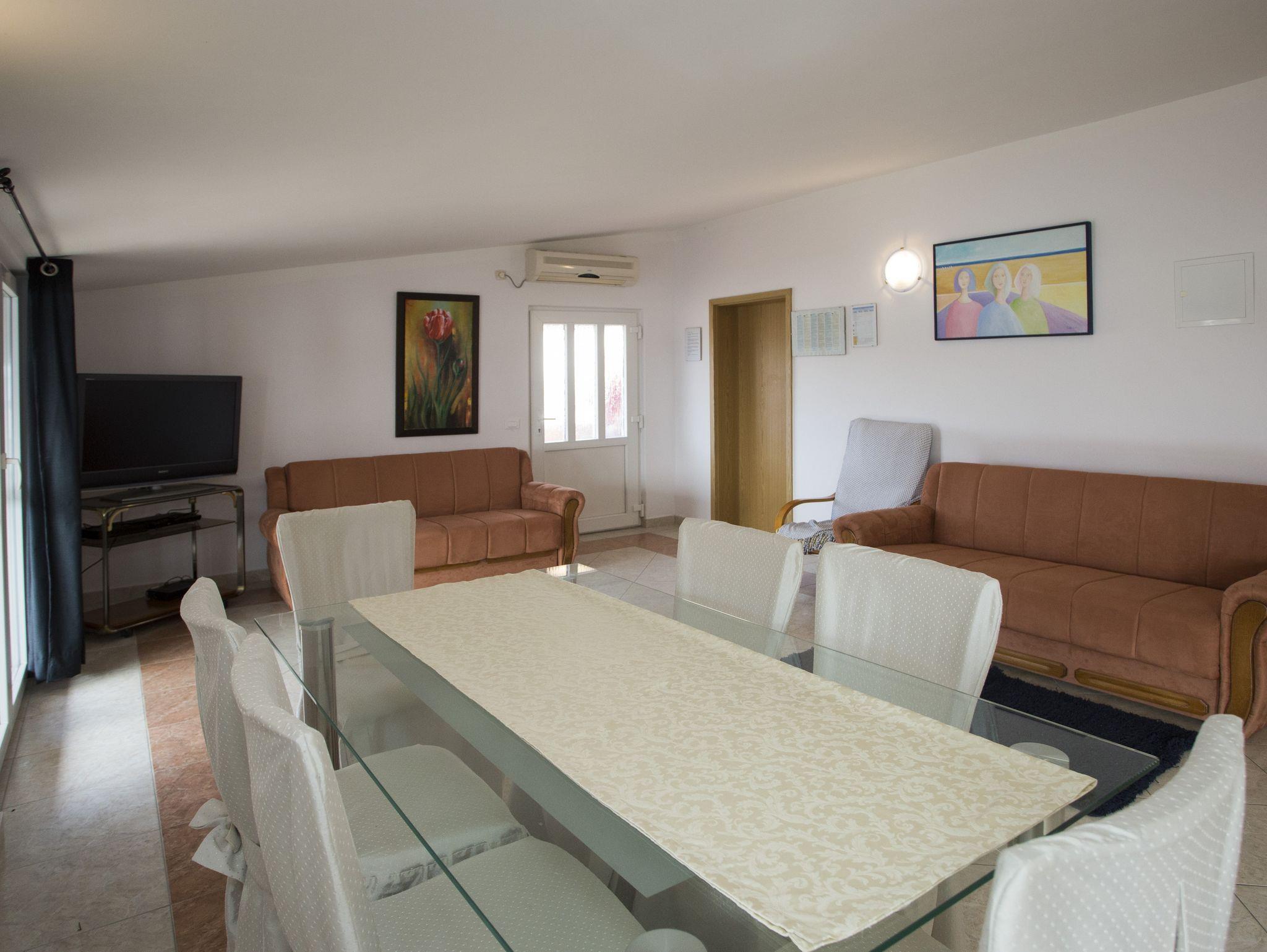 Ferienwohnung bietet Platz für 6 Gäste. Die Betten sind in Schlafzimmern, die es 2 gibt, und in Wohnzimmer, innerhalb einer Gesamtfläche von 52m2, angeordnet. Die Gäste haben eine eigene Terrasse zur Verfügung, auf der sie in warmen Sommernächten genießen können. Das Apartment bietet Meerblick. Es ist erlaubt, Speisen auf dem Gemeinschafts-Grill vorzubereiten. IM PREIS INBEGRIFFEN: Kurtaxe, Endreinigung, Klimatisierung, Parkplatz, Internet, Kinderbett, Bügeleisen, Bügelbrett, Föhn. VERBINDLICHE ZUSÄTZLICHE KOSTEN: Aufzahlung für Kurzaufenthalte (prozentualer Zuschlag pro Nächtigungsanzahl: 30% - 1, 20% - 2, 10% - 3). UNVERBINDLICHE ZUSÄTZLICHE KOSTEN: Bootsanlegeplatz (10,00 € pro Nacht). Die Verfügbarkeit zusätzlicher Dienstleistungen in Ihrem reservierten Termin und die Preise derselben (falls nicht aufgeführt) müssen im Voraus überprüft werden. Zusätzliche Dienstleistungen die in der Zahlungsaufforderung nicht aufgeführt sind werden direkt beim Vermieter bezahlt, angenommen der Gast nutzt auch diese.