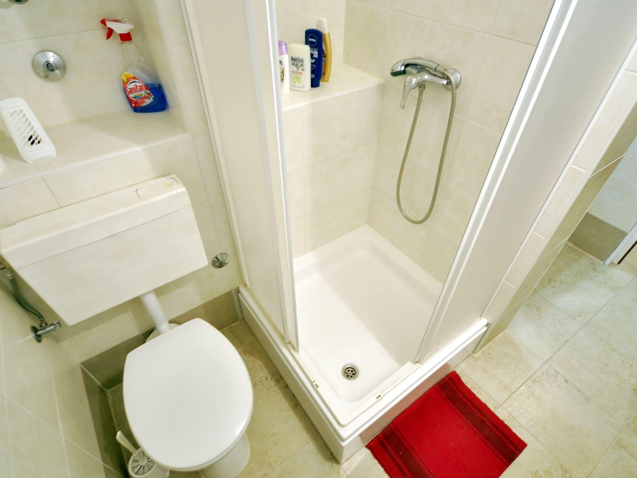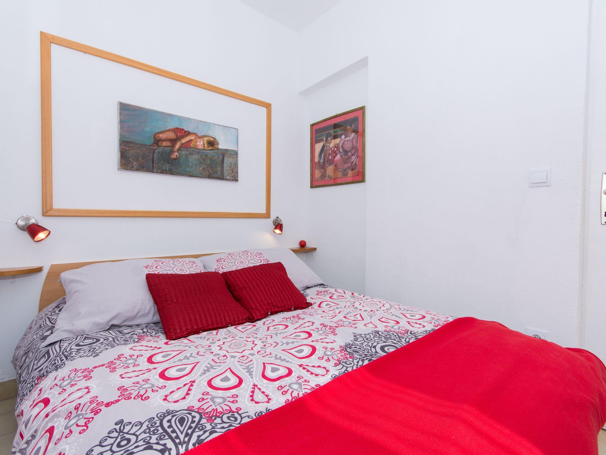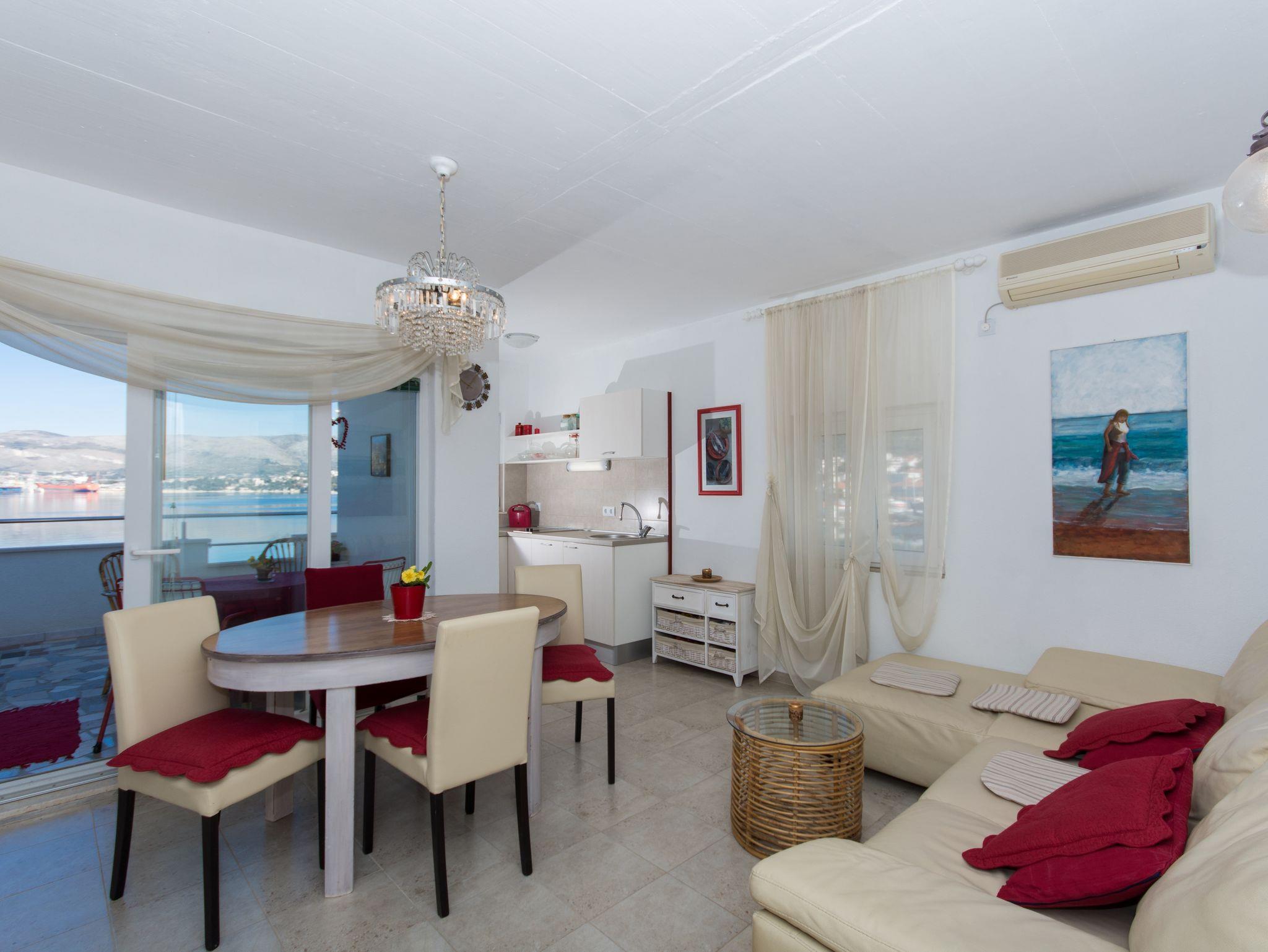 Ferienwohnung bietet Platz für 5 Gäste. Die Betten sind in Schlafzimmern, die es 2 gibt, und in Wohnzimmer, innerhalb einer Gesamtfläche von 39m2, angeordnet. Die Gäste haben eine eigene Terrasse zur Verfügung, auf der sie in warmen Sommernächten genießen können. Das Apartment bietet Meerblick. Es ist erlaubt, Speisen auf dem Gemeinschafts-Grill vorzubereiten. IM PREIS INBEGRIFFEN: Kurtaxe, Endreinigung, Klimatisierung, Parkplatz, Internet, Bügeleisen, Föhn. VERBINDLICHE ZUSÄTZLICHE KOSTEN: Aufzahlung für Kurzaufenthalte (prozentualer Zuschlag pro Nächtigungsanzahl: 30% - 1, 20% - 2, 10% - 3). Die Verfügbarkeit zusätzlicher Dienstleistungen in Ihrem reservierten Termin und die Preise derselben (falls nicht aufgeführt) müssen im Voraus überprüft werden. Zusätzliche Dienstleistungen die in der Zahlungsaufforderung nicht aufgeführt sind werden direkt beim Vermieter bezahlt, angenommen der Gast nutzt auch diese. Ermäßigung auf den Grundpreis: Gratistag 14=13 (bei einem Aufenthalt von 14 Tagen oder mehr erhalten Sie einen Gratistag für den Aufenthalt bis 31.12.26).