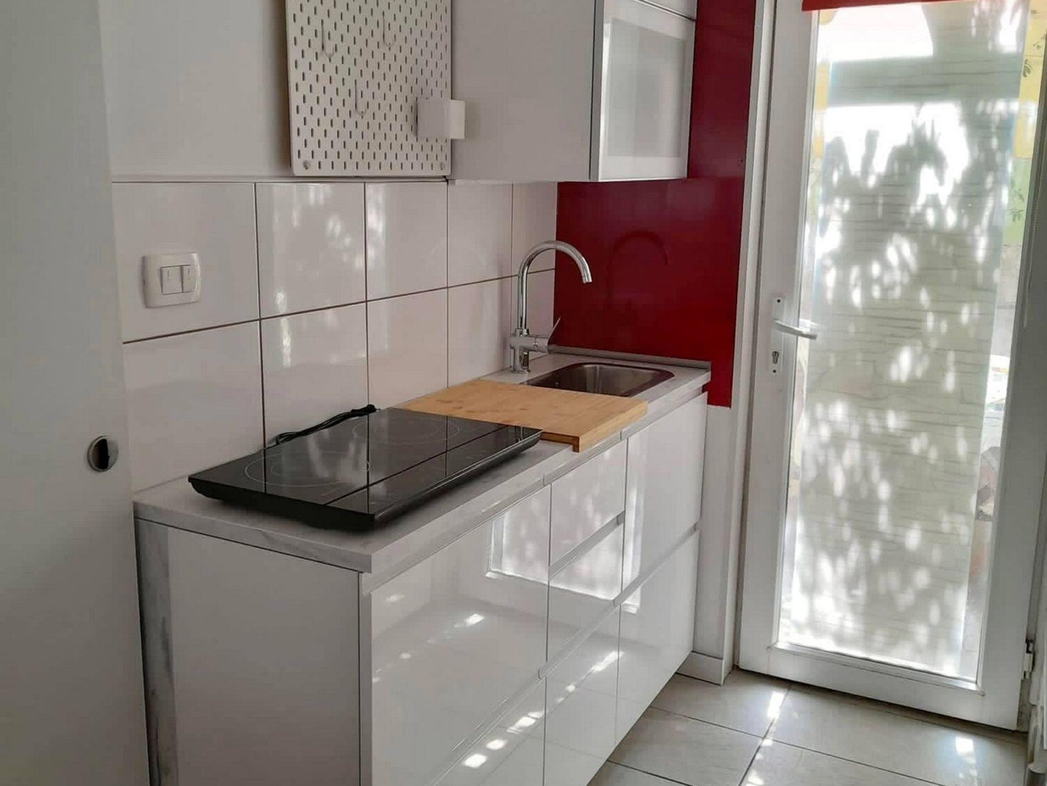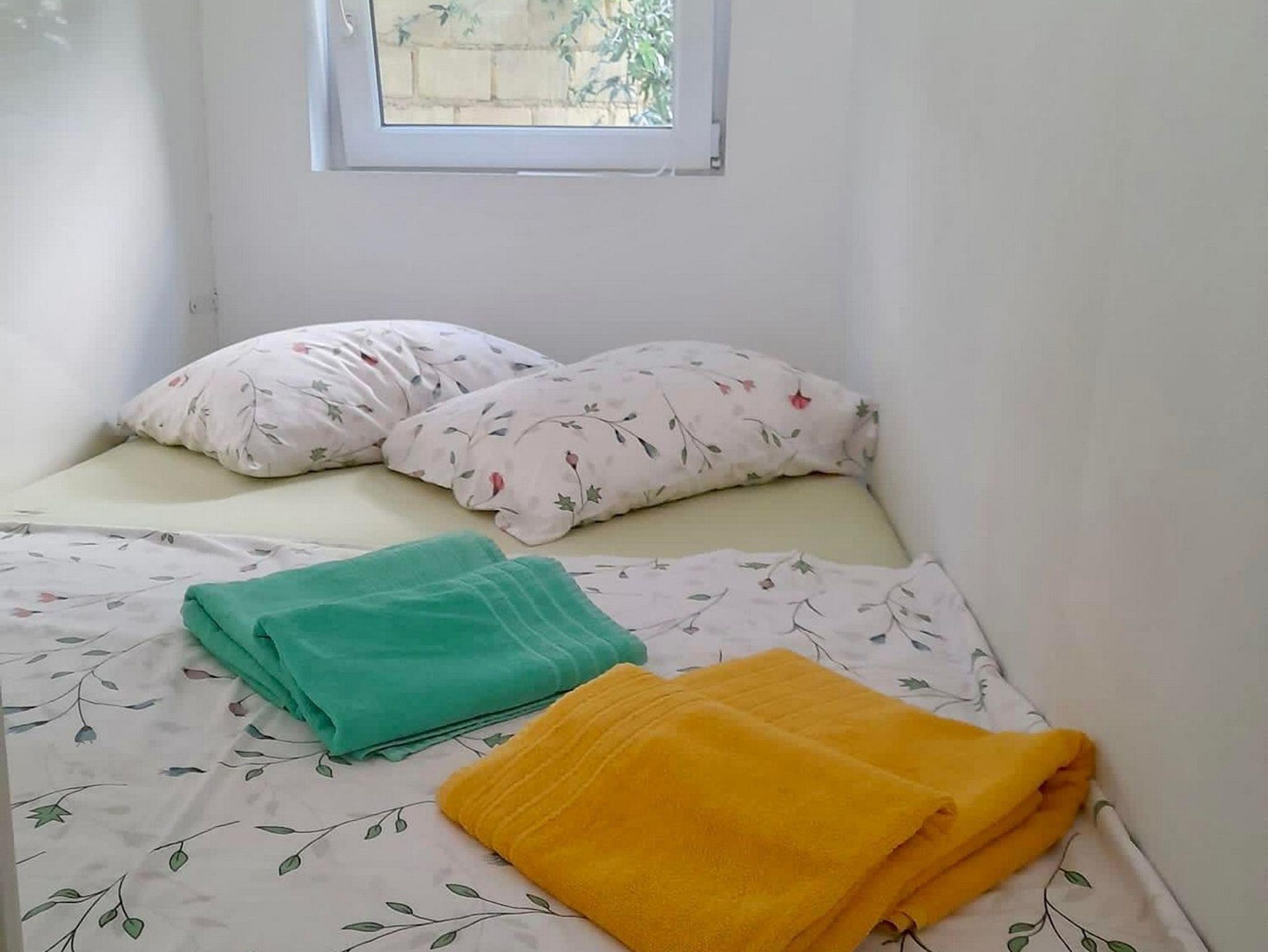 Studio bietet Platz für 3 Gäste. Die Betten sind in Schlafzimmern, die es 1 gibt, und in Wohnzimmer, innerhalb einer Gesamtfläche von 20m2, angeordnet. Die Gäste haben eine eigene Terrasse zur Verfügung, auf der sie in warmen Sommernächten genießen können. Es ist erlaubt, Speisen auf dem Gemeinschafts-Grill vorzubereiten. In der Unterkunftseinheit besteht die Möglichkeit des Mitbringens von Haustieren gegen Aufpreis. IM PREIS INBEGRIFFEN: Kurtaxe, Endreinigung, Klimatisierung, Parkplatz, Internet, Kinderbett, Bügeleisen, Bügelbrett, Föhn. VERBINDLICHE ZUSÄTZLICHE KOSTEN: Aufzahlung für Kurzaufenthalte (prozentualer Zuschlag pro Nächtigungsanzahl: 30% - 1, 20% - 2, 10% - 3). UNVERBINDLICHE ZUSÄTZLICHE KOSTEN: Bootsanlegeplatz (20,00 € pro Nacht), Haustiere (10,00 € pro Nacht). Die Verfügbarkeit zusätzlicher Dienstleistungen in Ihrem reservierten Termin und die Preise derselben (falls nicht aufgeführt) müssen im Voraus überprüft werden. Zusätzliche Dienstleistungen die in der Zahlungsaufforderung nicht aufgeführt sind werden direkt beim Vermieter bezahlt, angenommen der Gast nutzt auch diese. Ermäßigung auf den Grundpreis: Gratistag 14=13 (bei einem Aufenthalt von 14 Tagen oder mehr erhalten Sie einen Gratistag für den Aufenthalt bis 31.12.26).