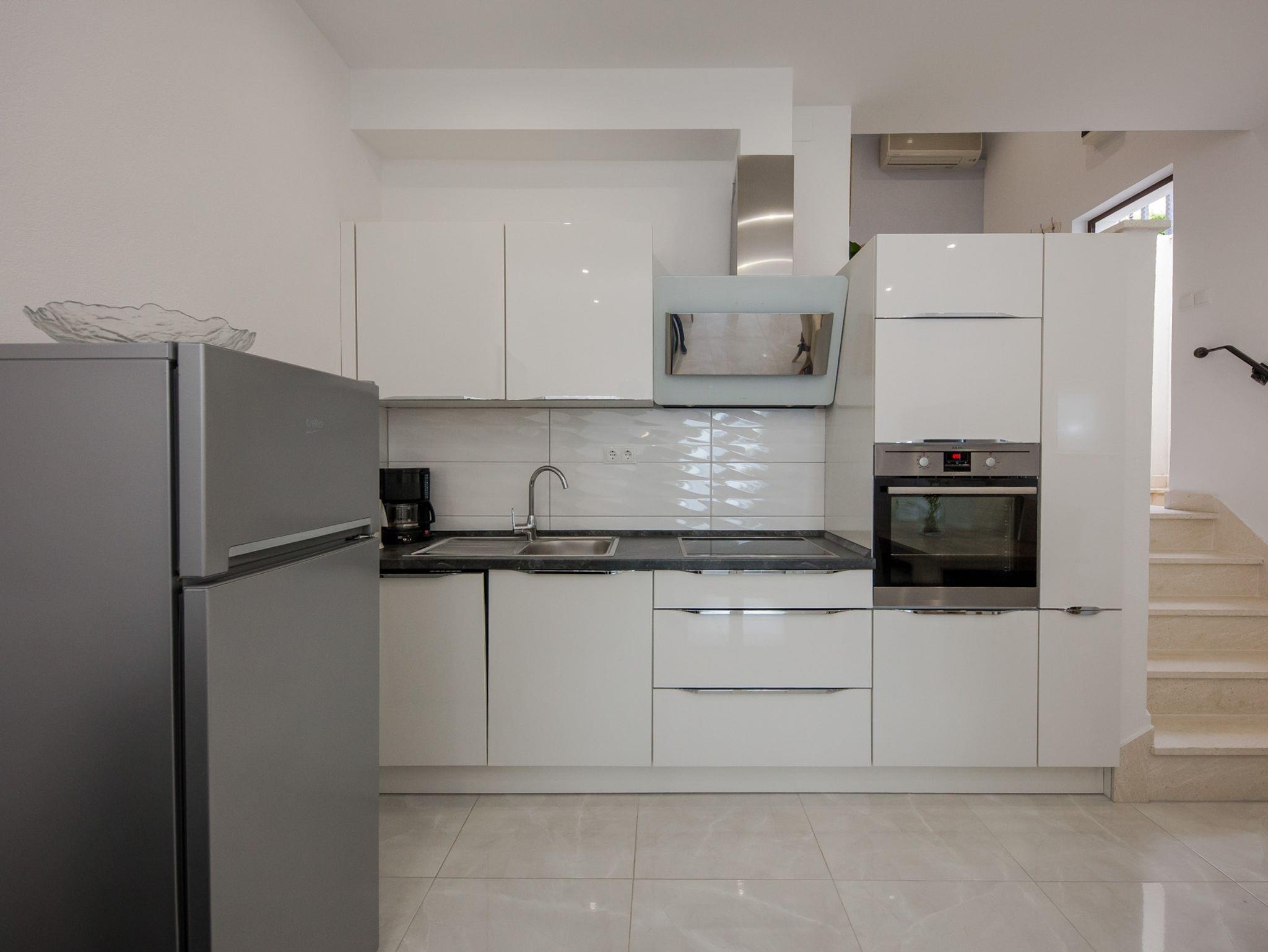 Ferienwohnung bietet Platz für 4 Gäste. Die Betten sind in Schlafzimmern, die es 2 gibt, innerhalb einer Gesamtfläche von 42m2, angeordnet. Die Gäste haben eine eigene Terrasse zur Verfügung, auf der sie in warmen Sommernächten genießen können. Das Apartment bietet Meerblick. Es ist erlaubt, Speisen auf dem Gemeinschafts-Grill vorzubereiten. IM PREIS INBEGRIFFEN: Kurtaxe, Endreinigung, Klimatisierung, Parkplatz, Internet, Bügeleisen, Bügelbrett, Föhn, Liegestühle. VERBINDLICHE ZUSÄTZLICHE KOSTEN: Aufzahlung für Kurzaufenthalte (prozentualer Zuschlag pro Nächtigungsanzahl: 30% - 1, 20% - 2, 10% - 3). Die Verfügbarkeit zusätzlicher Dienstleistungen in Ihrem reservierten Termin und die Preise derselben (falls nicht aufgeführt) müssen im Voraus überprüft werden. Zusätzliche Dienstleistungen die in der Zahlungsaufforderung nicht aufgeführt sind werden direkt beim Vermieter bezahlt, angenommen der Gast nutzt auch diese.
