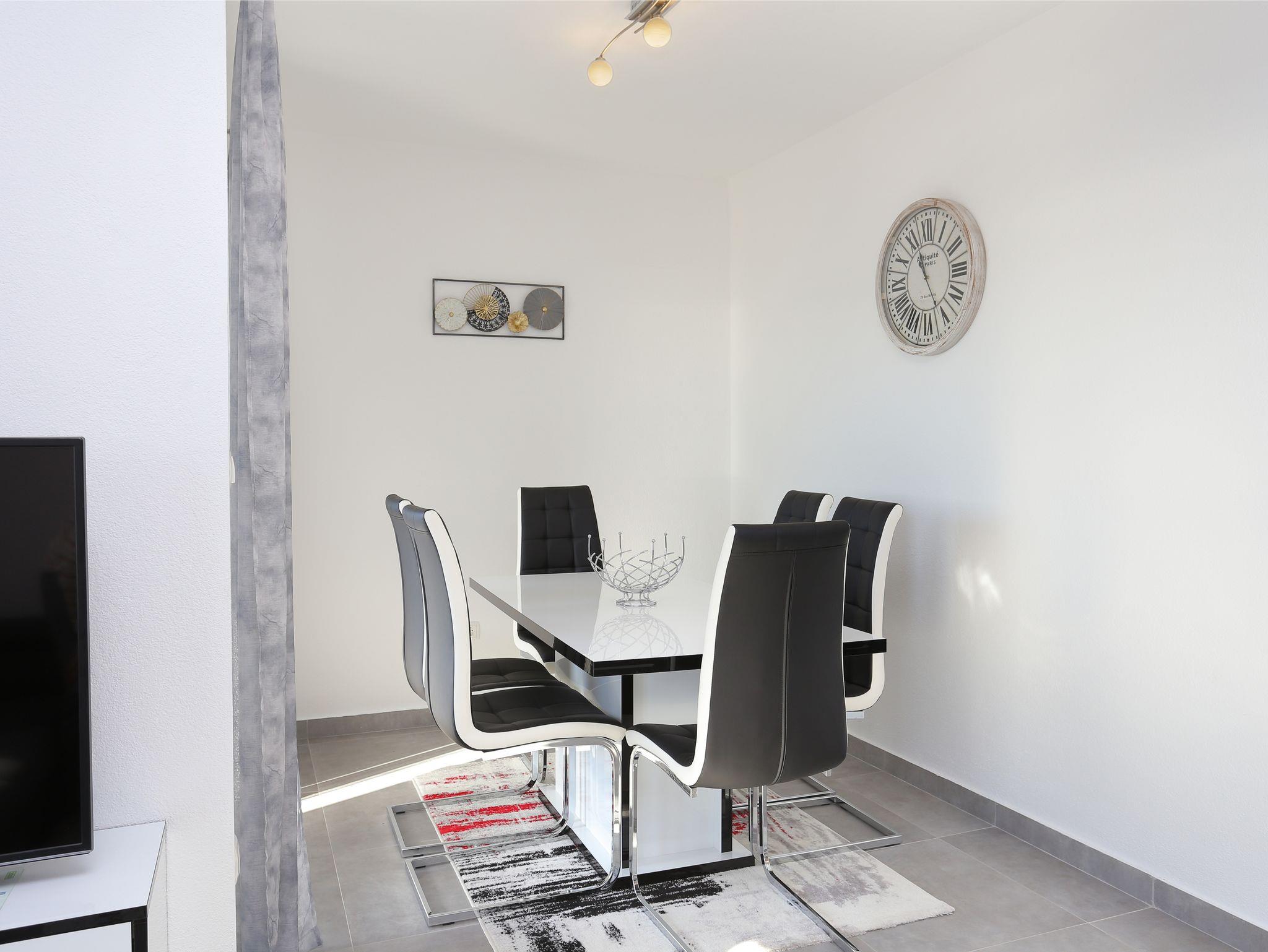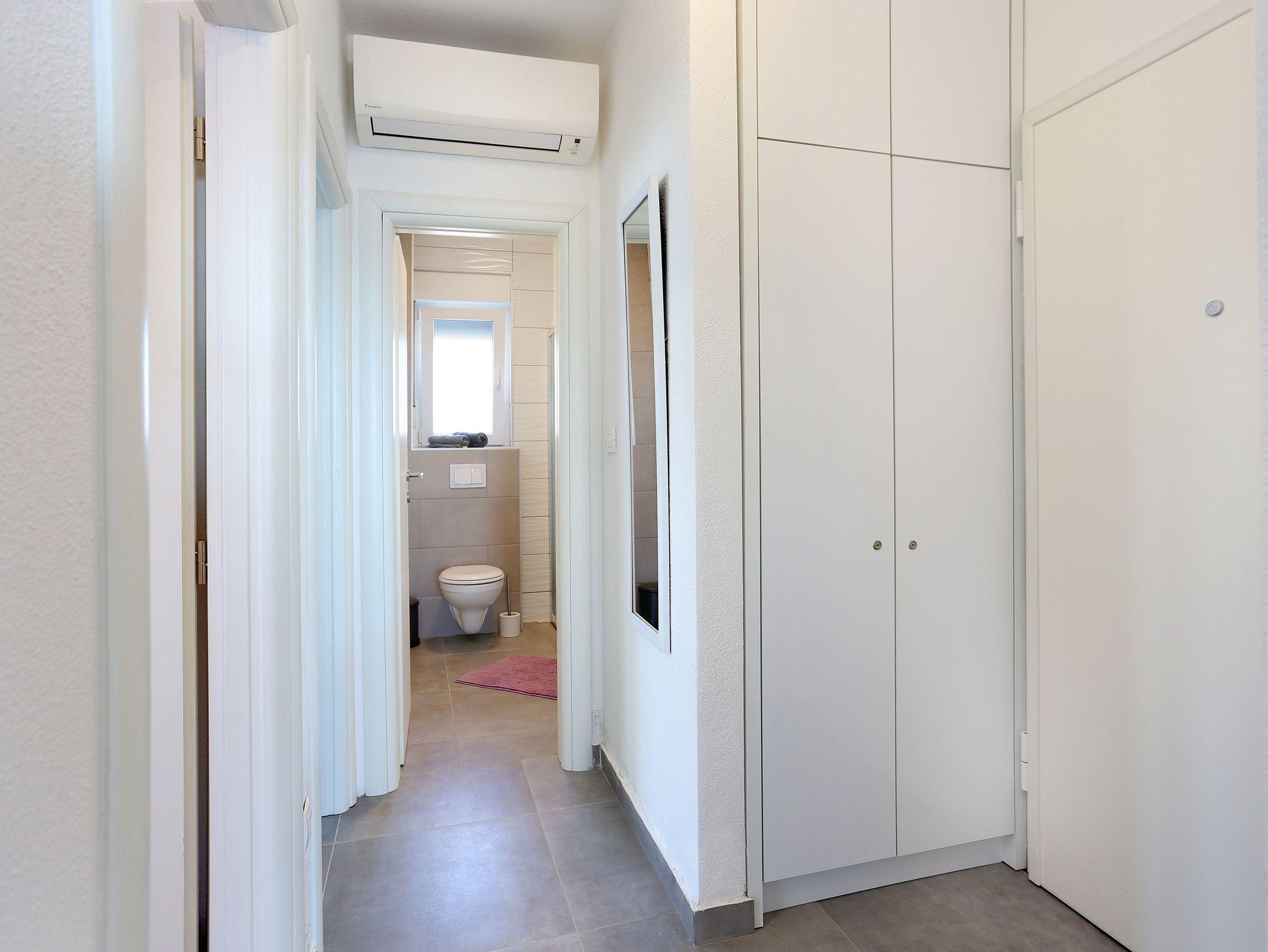 Ferienwohnung bietet Platz für 4 Gäste. Die Betten sind in Schlafzimmern, die es 2 gibt, innerhalb einer Gesamtfläche von 53m2, angeordnet. Die Gäste haben eine eigene Terrasse zur Verfügung, auf der sie in warmen Sommernächten genießen können. Das Apartment bietet Meerblick. Es ist erlaubt, Speisen auf dem Gemeinschafts-Grill vorzubereiten. Während ihres Aufenthalts können Gäste das gemeinsam zur Nutzung stehende Schwimmbad benutzen. Unterkunftseinheit hat Räume, die von dem Rest der Einheit abgetrennt werden. In der gebuchten Unterkunftseinheit zahlt man am Ort ein Depositum ( der Preis ist an der Internetseite angeführt ). IM PREIS INBEGRIFFEN: Kurtaxe, Endreinigung, Klimatisierung, Pool, Parkplatz, Internet, Bügeleisen, Bügelbrett, Föhn, 1 Bett für Kinder (im Preis enthalten). VERBINDLICHE ZUSÄTZLICHE KOSTEN: Kaution (200,00 € Einmalzahlung), Aufzahlung für Kurzaufenthalte (prozentualer Zuschlag pro Nächtigungsanzahl: 30% - 1, 20% - 2, 10% - 3). Die Verfügbarkeit zusätzlicher Dienstleistungen in Ihrem reservierten Termin und die Preise derselben (falls nicht aufgeführt) müssen im Voraus überprüft werden. Zusätzliche Dienstleistungen die in der Zahlungsaufforderung nicht aufgeführt sind werden direkt beim Vermieter bezahlt, angenommen der Gast nutzt auch diese. Ermäßigung auf den Grundpreis: Gratistag 14=13 (bei einem Aufenthalt von 14 Tagen oder mehr erhalten Sie einen Gratistag für den Aufenthalt bis 31.12.26).