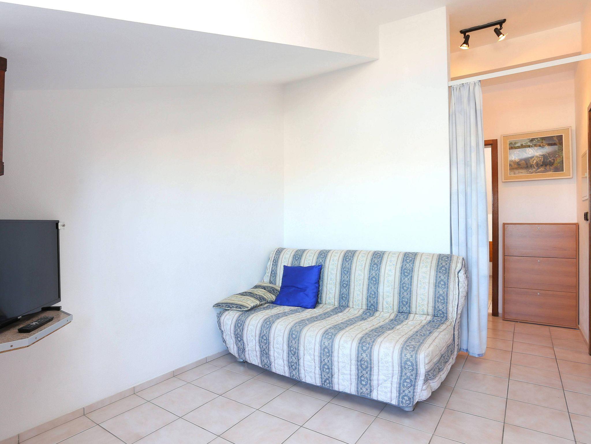 Ferienwohnung bietet Platz für 4 Gäste. Die Betten sind in Schlafzimmern, die es 1 gibt, und in Wohnzimmer, innerhalb einer Gesamtfläche von 30m2, angeordnet. Die Gäste haben einen eigenen Balkon zur Verfügung, auf der sie in warmen Sommernächten genießen können. Das Apartment bietet Meerblick. Es ist erlaubt, Speisen auf dem Gemeinschafts-Grill vorzubereiten. Während ihres Aufenthalts können Gäste das gemeinsam zur Nutzung stehende Schwimmbad benutzen. IM PREIS INBEGRIFFEN: Kurtaxe, Endreinigung, Klimatisierung, Pool, Parkplatz, Internet, Bügeleisen, Bügelbrett, Föhn. VERBINDLICHE ZUSÄTZLICHE KOSTEN: Aufzahlung für Kurzaufenthalte (prozentualer Zuschlag pro Nächtigungsanzahl: 30% - 1, 20% - 2, 10% - 3). UNVERBINDLICHE ZUSÄTZLICHE KOSTEN: Wäschewaschen (3,00 € Waschen). Die Verfügbarkeit zusätzlicher Dienstleistungen in Ihrem reservierten Termin und die Preise derselben (falls nicht aufgeführt) müssen im Voraus überprüft werden. Zusätzliche Dienstleistungen die in der Zahlungsaufforderung nicht aufgeführt sind werden direkt beim Vermieter bezahlt, angenommen der Gast nutzt auch diese.