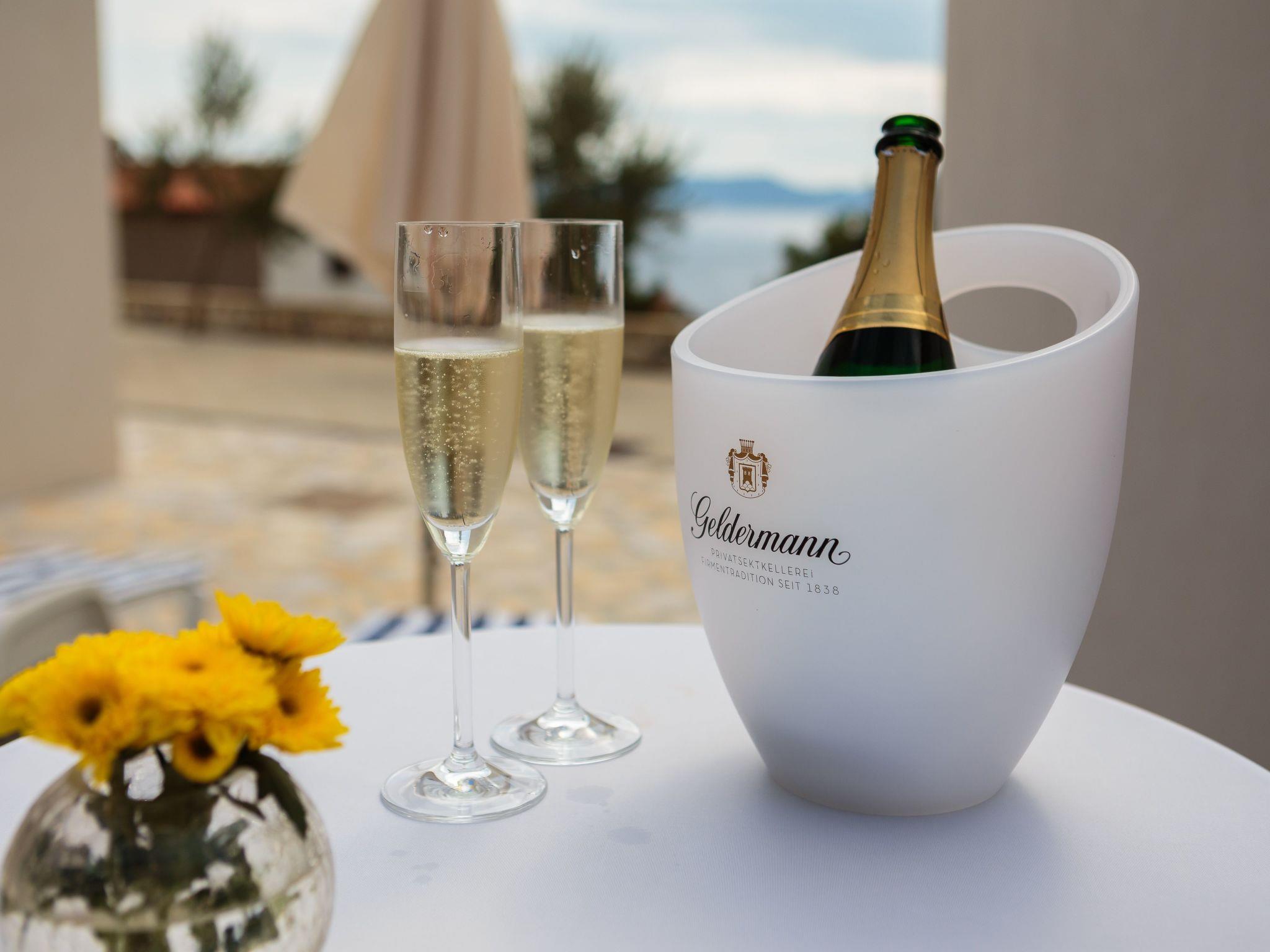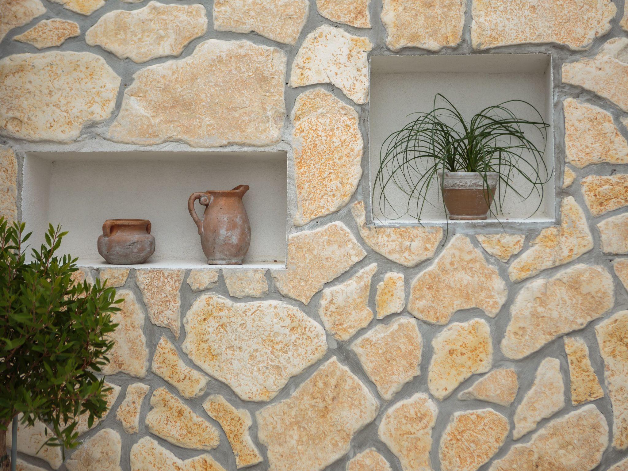 Right in front of and behind the house there are vineyards. It is only about a 200-metre walk to the nearest beach. Nearby there are also many inviting bays.
