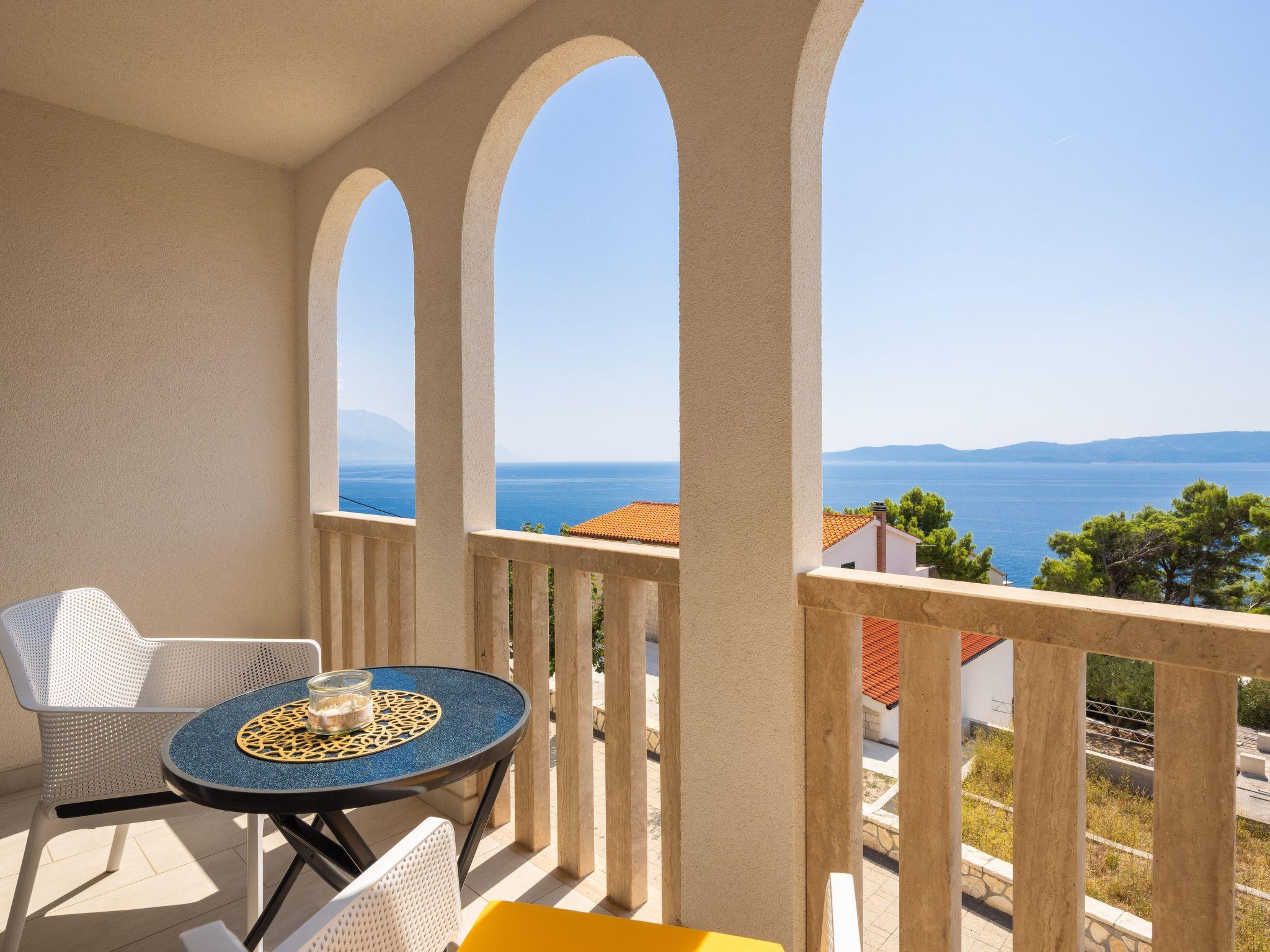 Enjoy your holiday in this exclusive apartment building with a Mediterranean building style. This gem offers a breathtaking and unimpeded panoramic view of the sea, the Makarska riviera not far away and the island of Brac in the background. Your holiday residence consists of four separate apartments with their own entrances.