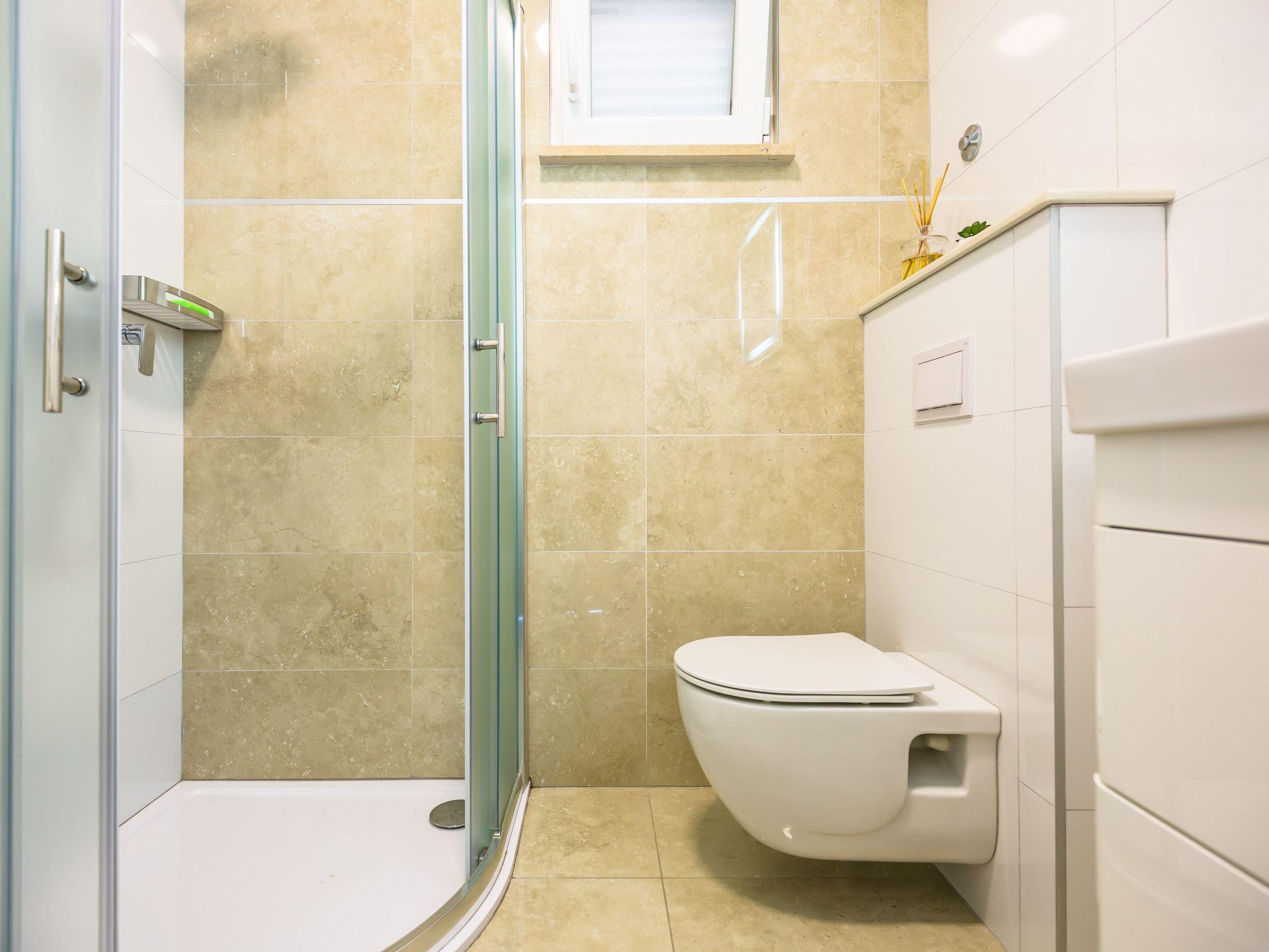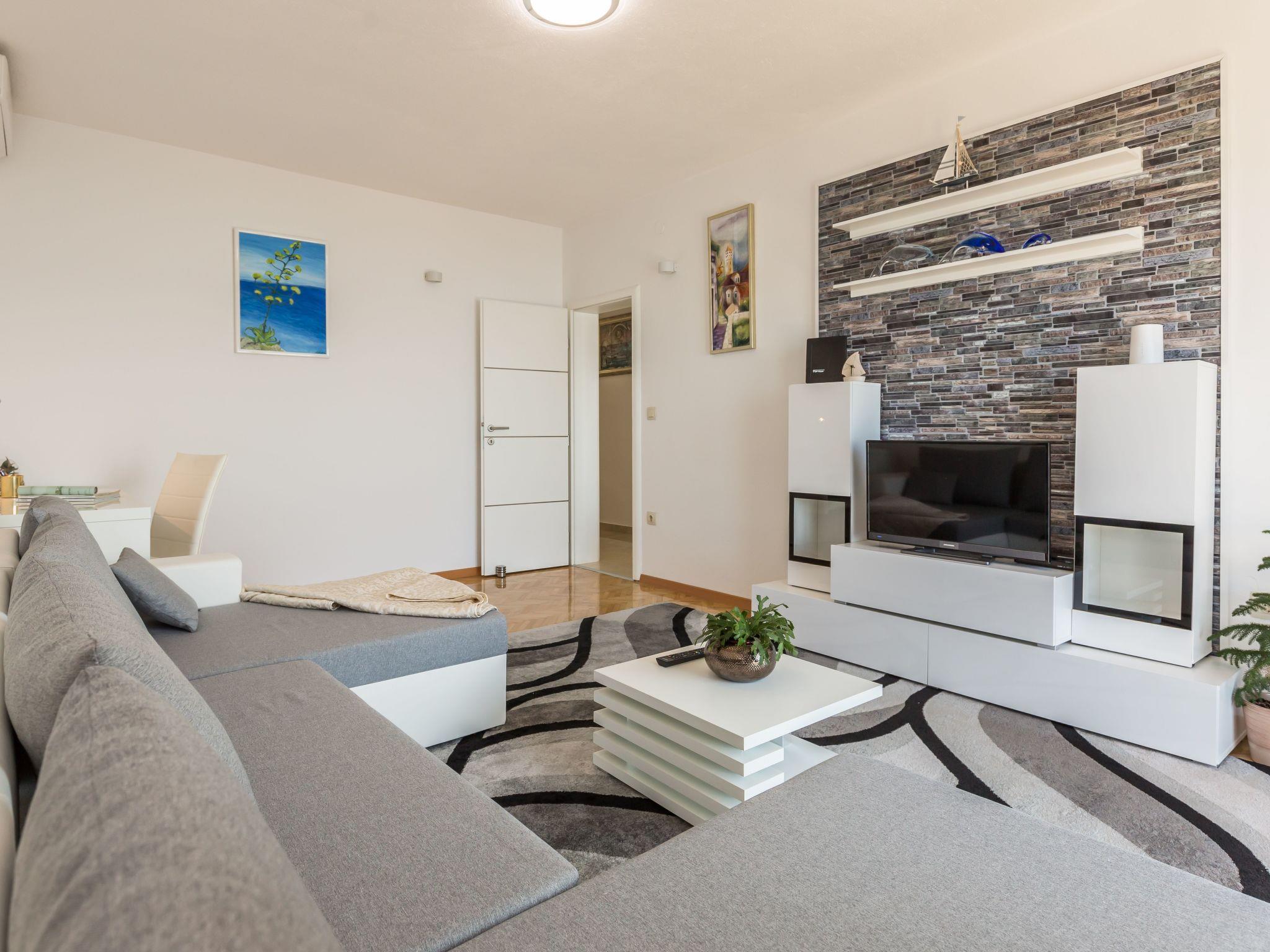 Apartments with balcony, conveniently located, not far from the beach and town center. Apartment is completly renovated in 2019. This detached holiday house is in the port town of Omis, in a very quiet area, just 600 meters from the center. Sandy beach is 700m away. The 90 m² large apartment.It has a open plan kitchen with dining area.There is a dining table for 6 Persons .Kitchen is equipped with stove, oven, fridge, freezer and kettle.There are 2 bedrooms.In each of the two bedrooms has a double bed for 2 Person.In one bedroom there is a sofa bed for 1 Person.Living room has a large sofa bed for 2 Persons.Total number of guests:Bedroom_1: 2+1Bedroom:2: 2+0 The bathroom is equipped with sink, shower, toilet and washing machine.Air condition is in a living room.Wi-Fi.SAT-TV.The large furnished balcony offers beautiful views of the city, the sea and the island of Brac.Private parking available for a car.