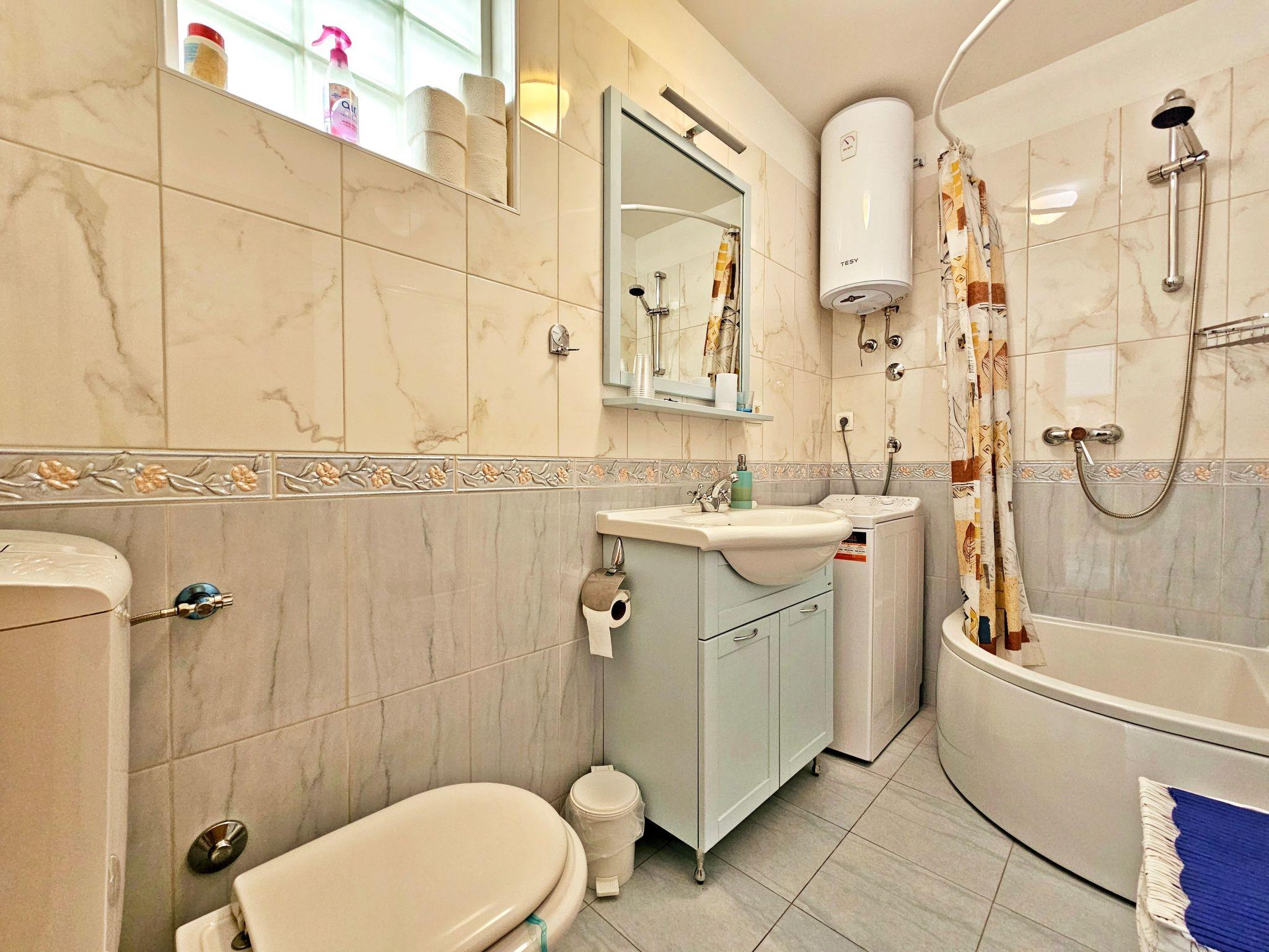 The apartment is located on the third floor of the domestic tourism house, facing the sea with sweeping views of the islands from the balcony. The beach is 50 meters from the apartment, so our accommodation offers a full day to enjoy swimming, fishing, diving and other water sports. We also offer free use of kayaks to all guests during their stay in the house. it is very suitable for families with children. Car parking is provided and free of charge. Very close to the apartment is market, restaurant, caffe bar, beach bar and a bus station. The apartment has two bedroom and two bathrooms. The apartment has a terrace of 15 m2 with a large dining table and a swing. Also apartment has a balcony of 10 m2 with table and chairs. The kitchen is equipped with all necessary appliances, spacious living area where is the sofa.