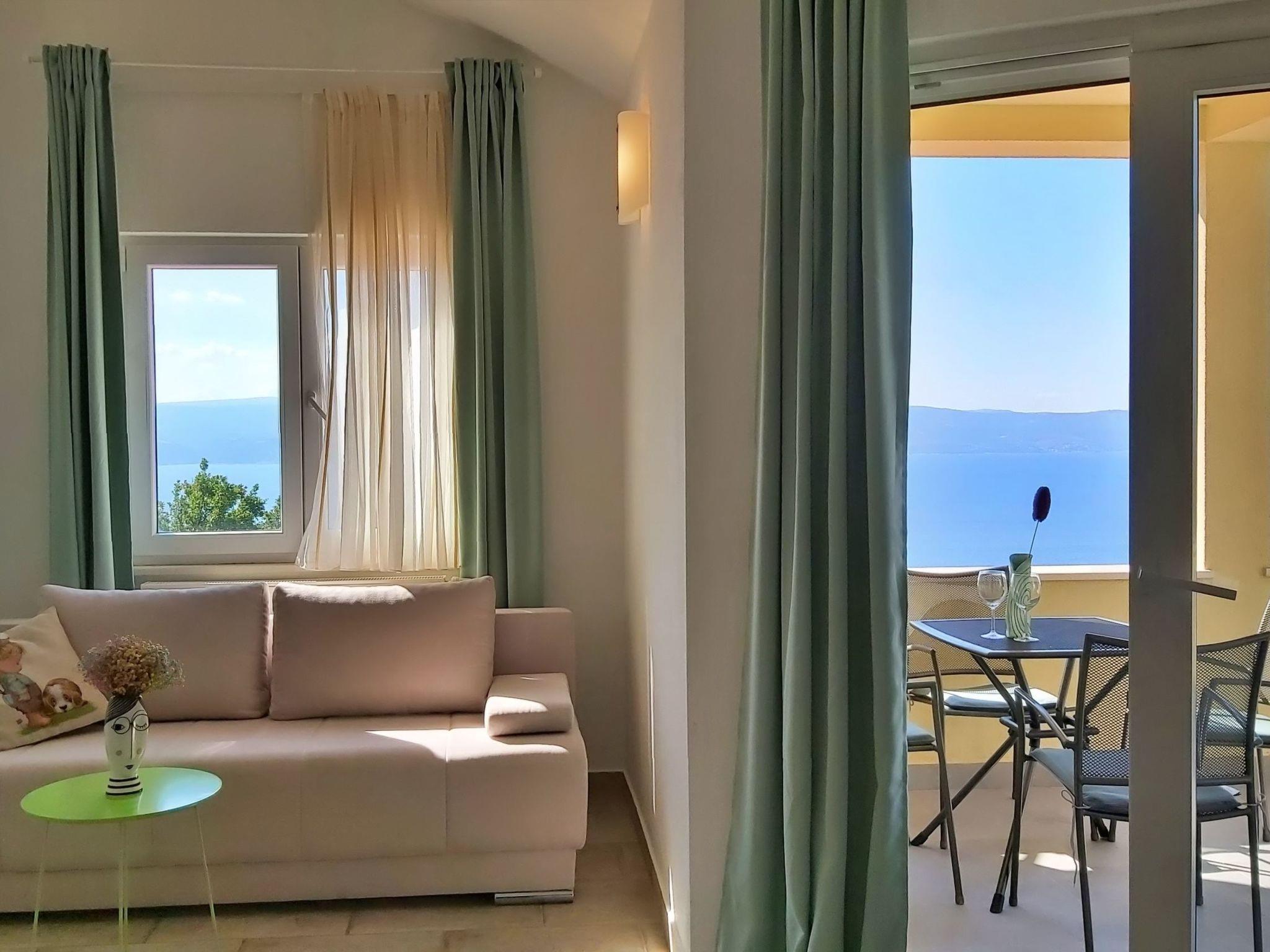 The apartment can accommodate up to 4 persons (2+2) and it’s layout features one bedroom with a double bed, a living room with a view of the sea, with an extendable couch for two extra sleeping possibilities. In addition, the apartment has a fully equipped kitchen (microwave, oven, refrigerator, pots, pans, cutlery etc. included) and a dining area and one bathroom.The apartment also features a beautiful, large balcony with a stunning view of the sea and Omis town and its surroundings. The balcony has outdoor furniture. Wi-Fi, SAT/TV and air-conditioning are available as additional amenities.