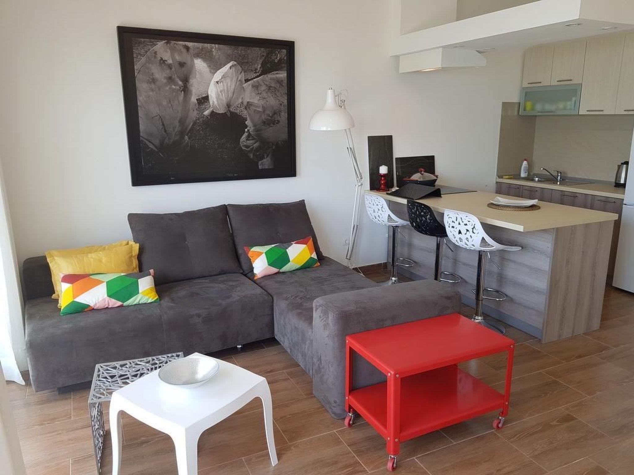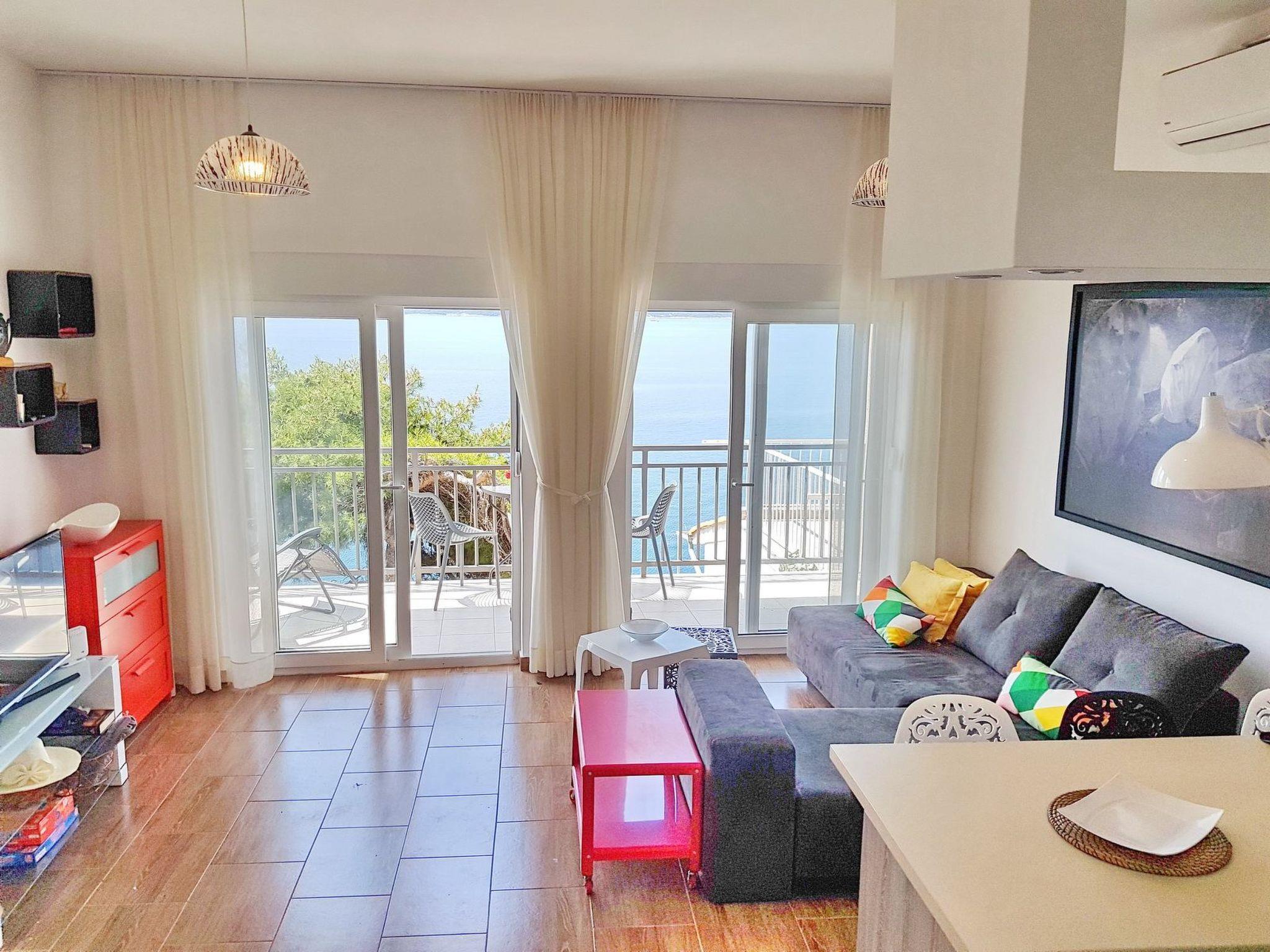 Flat 1 is located on the lowest floor, with a bedroom (double bed and bunk bed), living room with sofa bed for one person, kitchen, bathroom with shower and a balcony with sea view.
