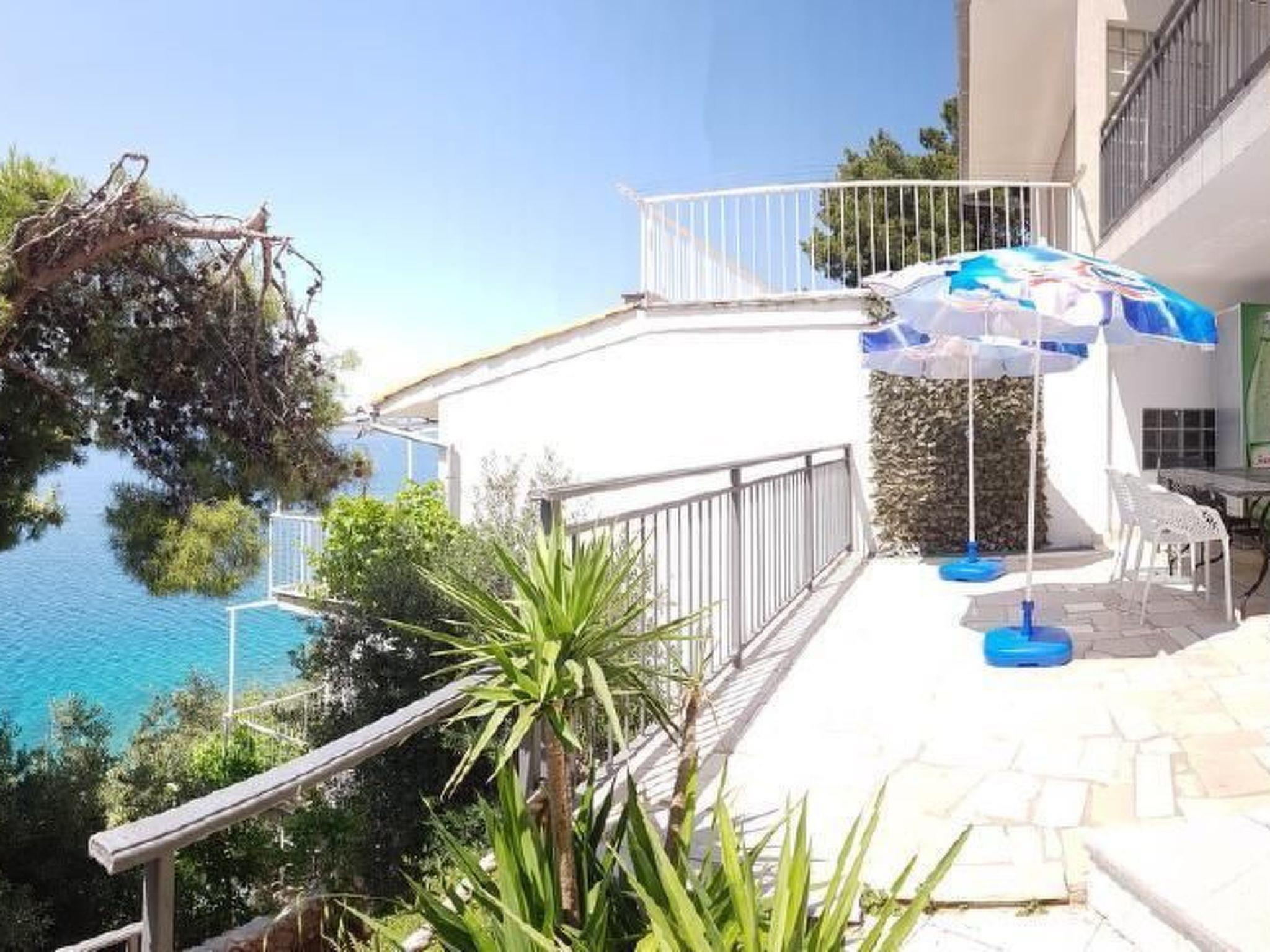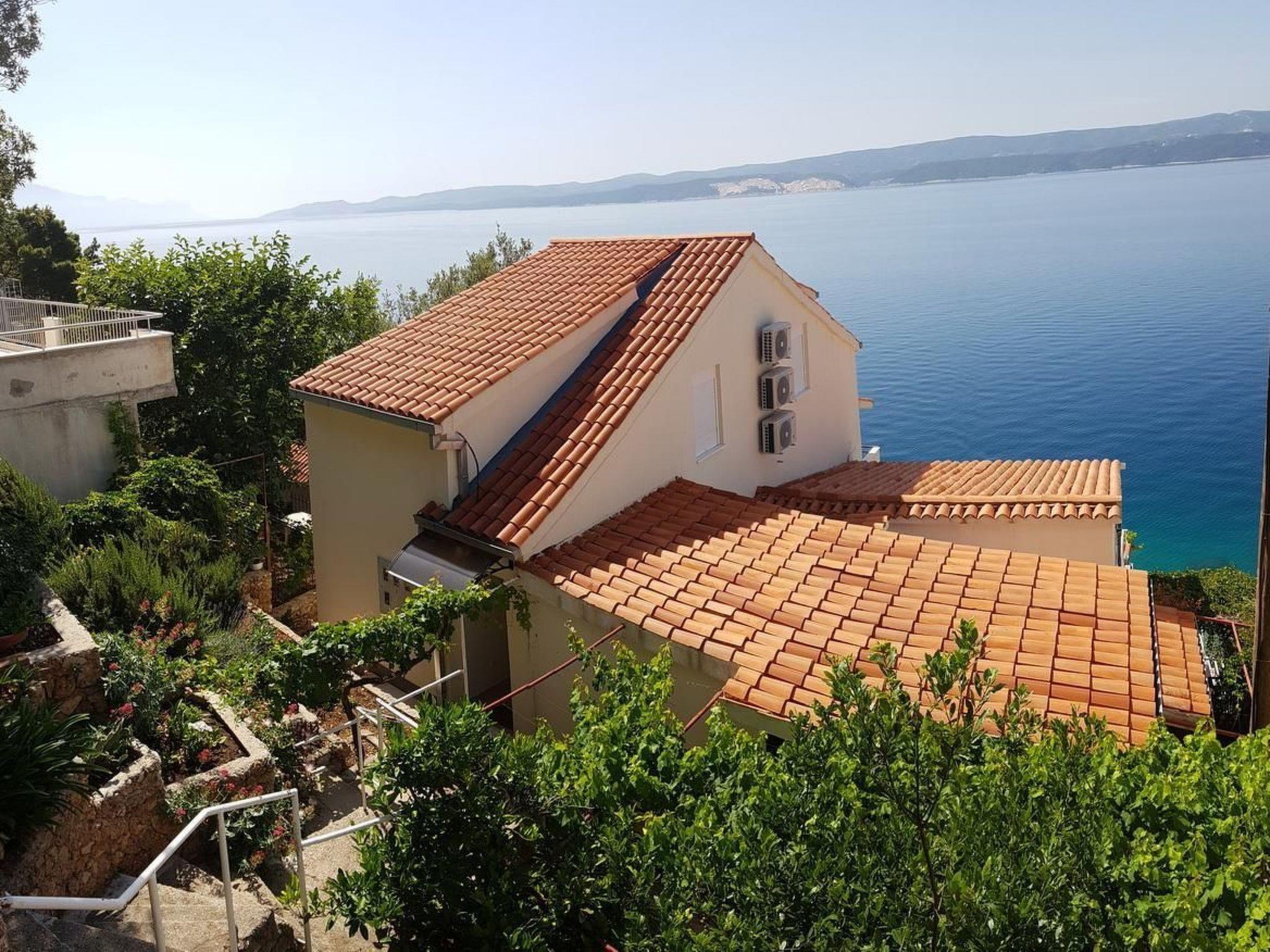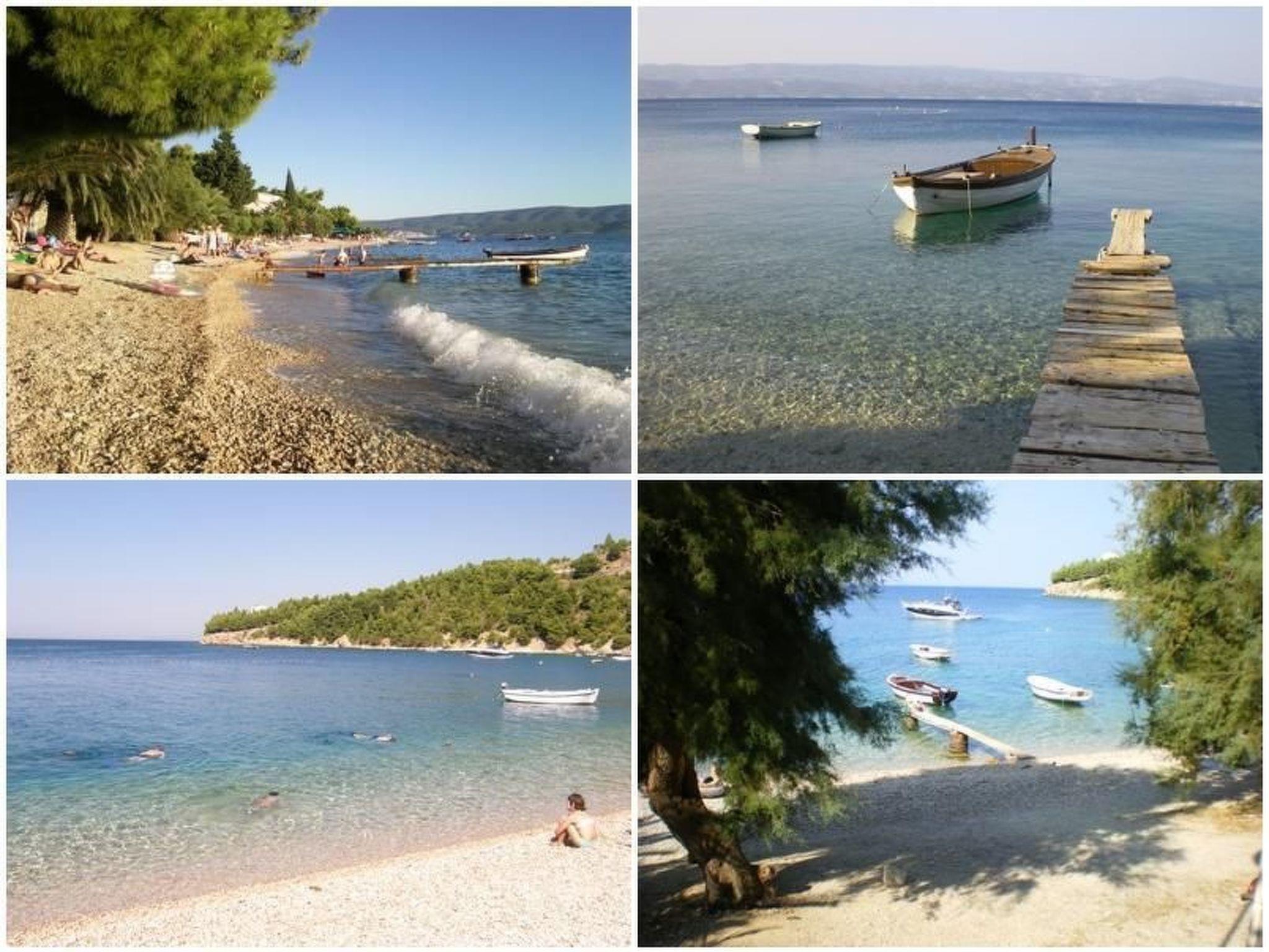 The holiday home can only be rented as 1 'ne unit complete 2 flats together. The beach can be reached via approx. 100 steps. It is gravel - fine gravel. In the neighbourhood there are various possibilities to be active in the water like: Jet - and water ski, banana, boat hire and much more. It is well maintained, new, modern and well equipped, with fully fitted kitchens. It is located below the coastal road with a view of the sea and a wonderful view of the island of Brac opposite. The beach can be reached directly by about 100 steps. Large terraces and balconies.