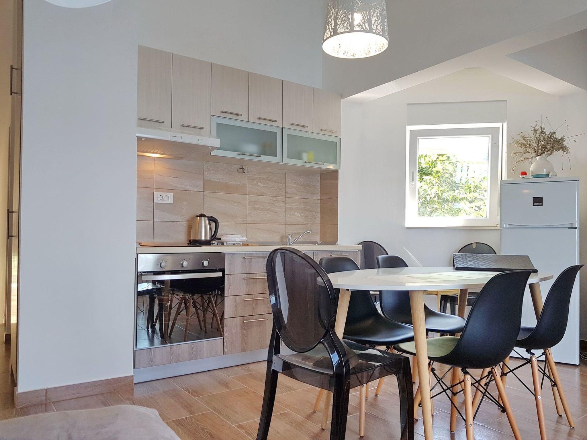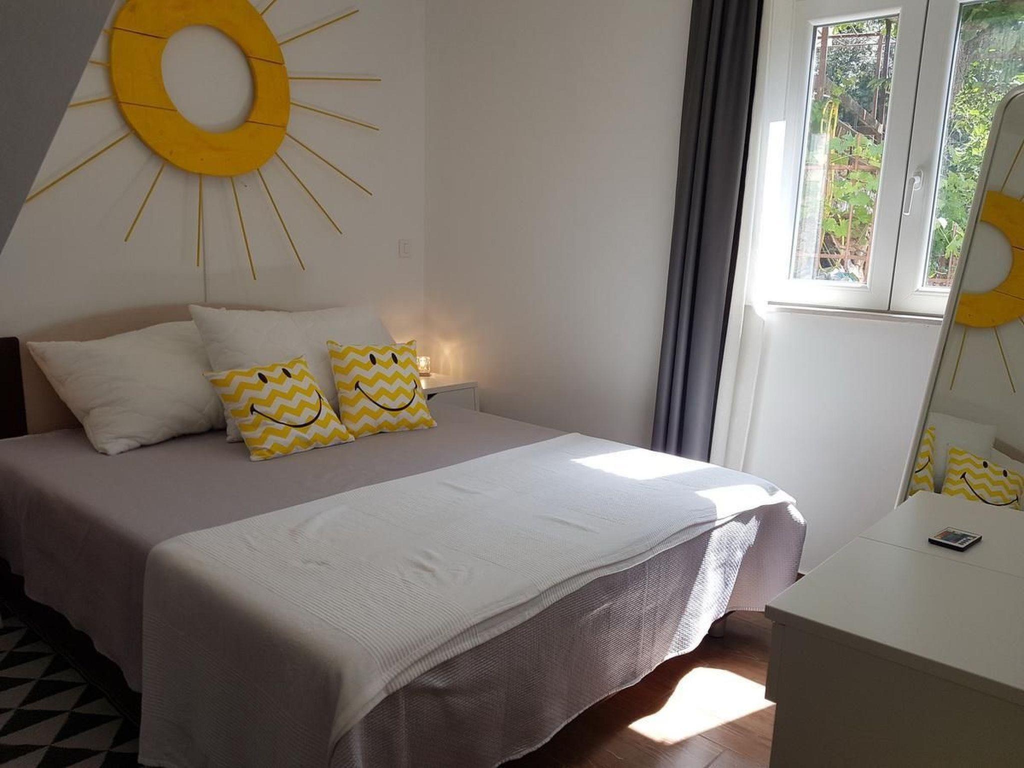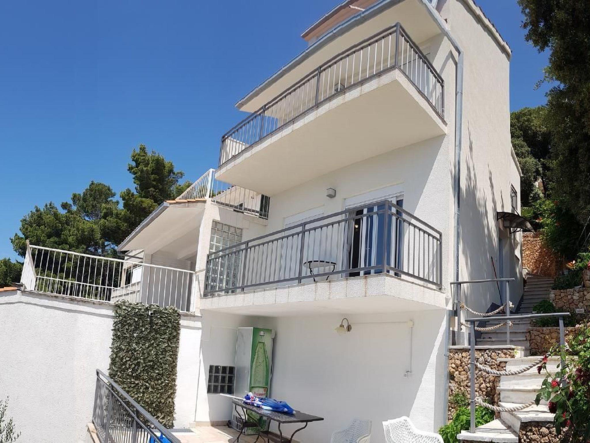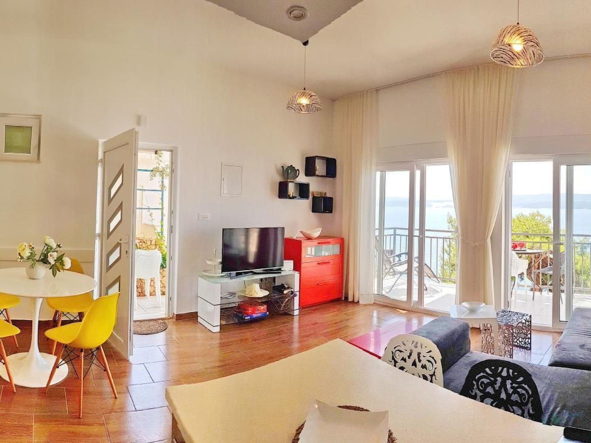 The holiday home can only be rented as 1 'ne unit complete 2 flats together. The beach can be reached via approx. 100 steps. It is gravel - fine gravel. In the neighbourhood there are various possibilities to be active in the water like: Jet - and water ski, banana, boat hire and much more. It is well maintained, new, modern and well equipped, with fully fitted kitchens. It is located below the coastal road with a view of the sea and a wonderful view of the island of Brac opposite. The beach can be reached directly by about 100 steps. Large terraces and balconies.