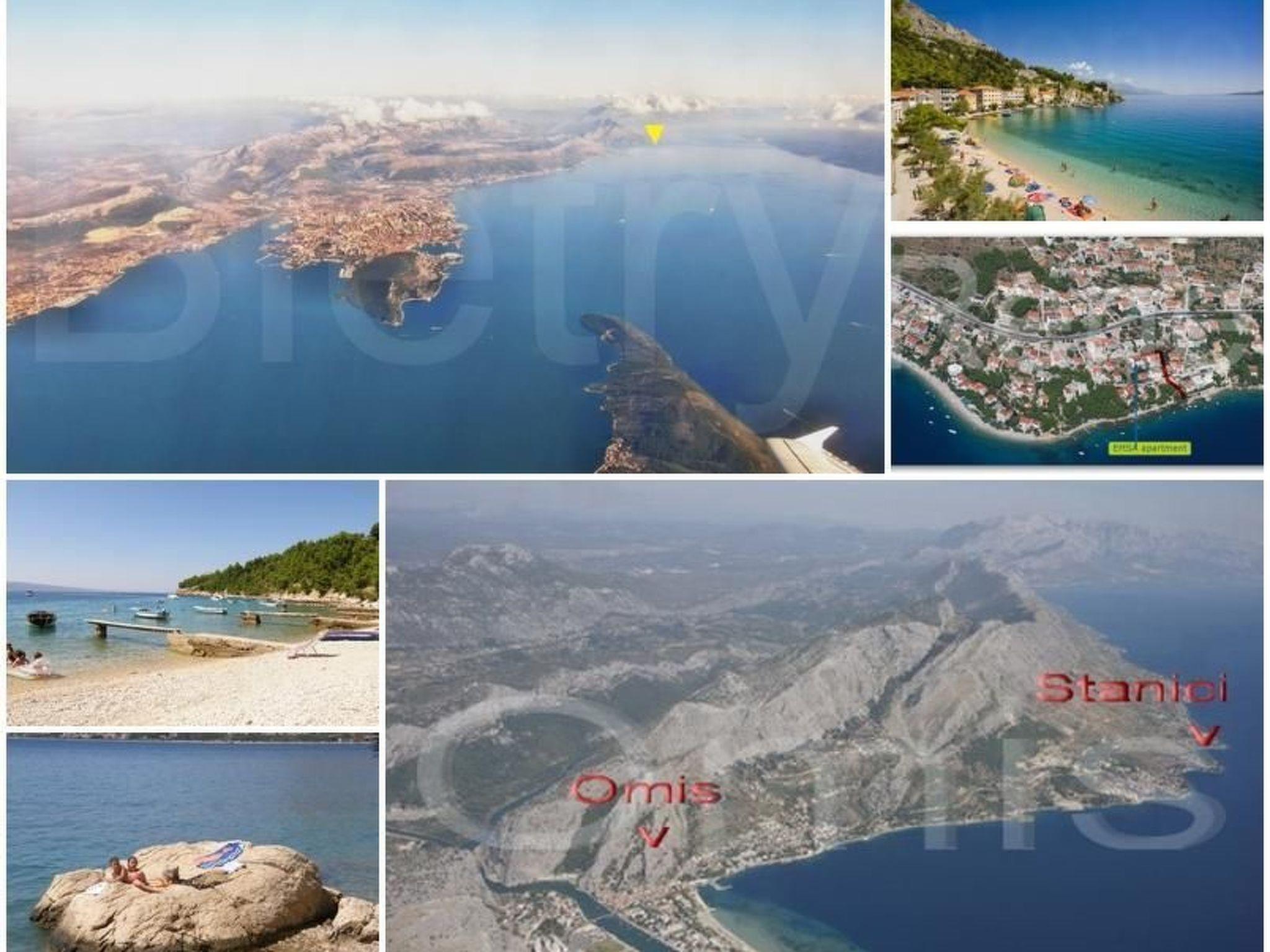 SurroundingNearby sports facilities : Bike tours, Climbing, Diving, Fishing, Mountain climbing, Mountainbiking, Rafting, Sailing, Water skiingRental Facilities : Bicycle rental service, Boat rental service, car rental.Surrounding 1Excursion possibilities : Attractions in the area:• Radmanove Mlinice (accessible by boat and car)• Dinopark• tourist train (Bimmelzug from Omis to the tourist resort Radmanove Mlinice)• Split (30 km)• Trogir (45 km)• Cave Vranjaca (35 km)• Sinjska Alka - Riding Games Sinj (60 km)• Sion fortress (35 km)• Sibenik (105 km)• Sibenik Krka Waterfalls, National Park (114 km)• Biokovo Nature Park Sveti Jure 1762 meters above sea level 67 (km)• Ston Roman Fort, Fortress Wall, Franciscan Monastery, Seawater Saline 154 (km)• Dubrovnik (197 km) approx. 3.5 hours by car• Boat tours: Hvar, Brac, SoltaLocation description : Welcome to Stanici! Stanici is a small fishing village located 5 km from Omis (with sandy beach or beaches) in the direction of Makarska and Dubrovnik. The village has retained its originality, but offers its guests a holiday full comfort in private pensions, hotels,villas,apartment and apartments. The air here is clean, the water is clear, the beach is quiet and very far from the aggressive pace of modern life and tourist industry. From the steep hillside you can enjoy beautiful views of the sea to the opposite island of Brac. In the surroundings you can always find a secluded cove with "your" own small pebbly beach. The people are nice and very hospitable. You will be glad to welcome you with homemade wine and talk with you even if they do not speak your language. To ensure their physical well-being offer some restaurants, coffee bars, the food and drinks for every taste and every budget. In Stanici there are 2 small markets with bakerys with fresh bread and sweet pastries, dairy products, fruit and vegetable markets run every day. In the center where there is a bus stop there is the travel agency Adriatoptours which can help you in all aspects. Can all fragrances and colors of the agricultural products they find at the weekly market in Omis. There you will find some banks, the church, with several emergency physicians.Other leisure facilities : There are also many sports facilities such as: rent a jet ski, rent a scooter, bannane, water skiing, diving, snorkeling, rafting, hiking, climbing, free climbing, fishing, horse riding, MTB mountain biking, cycling, playing volleyball on the sandy beach, Golf, Surfing, Sailing, Skyten.
