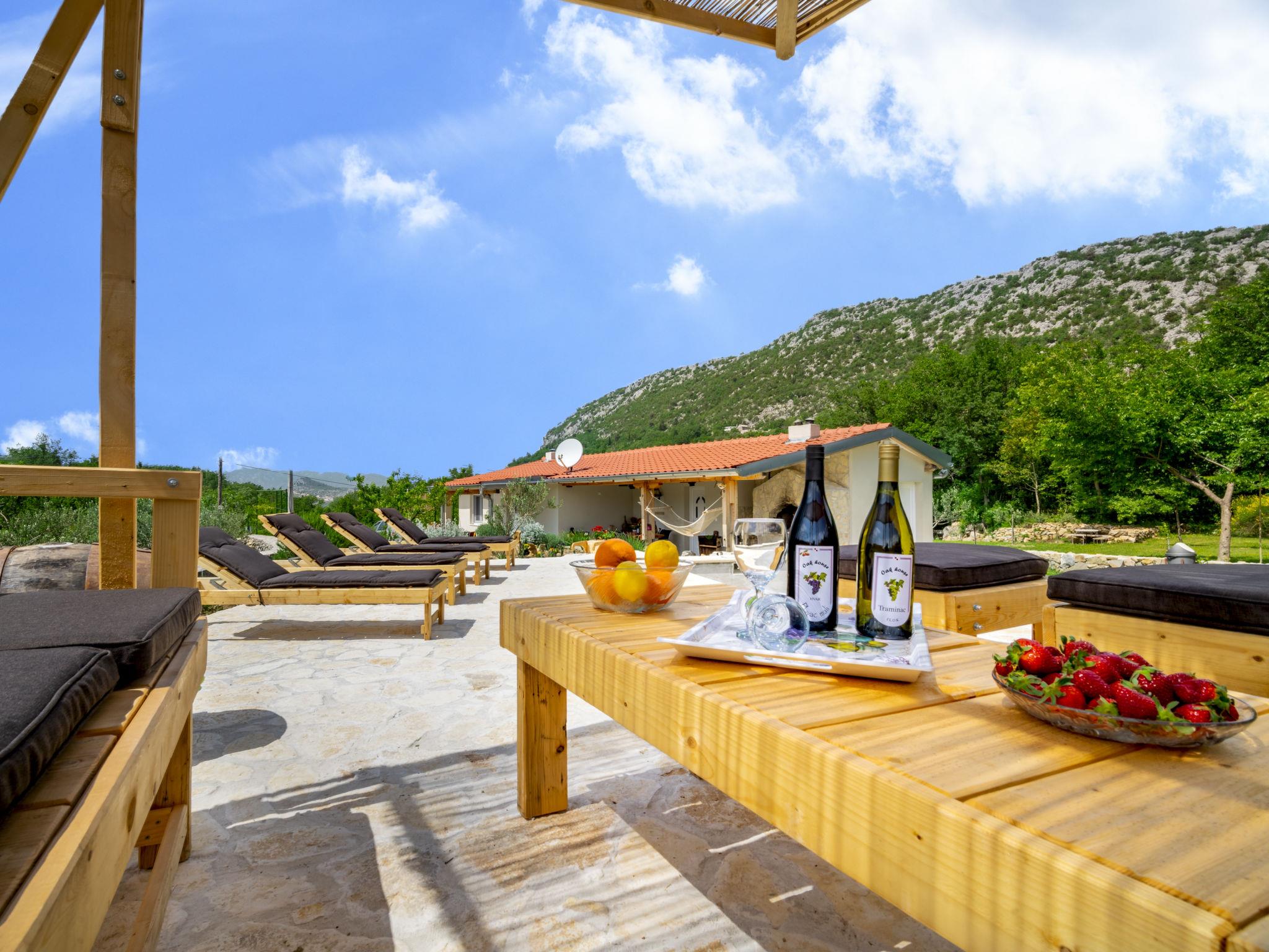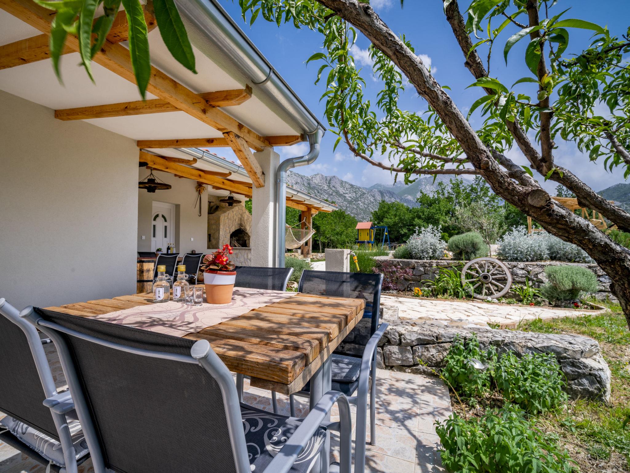 Zadvarje 26 km from Omiš: Single-family house "Jozo". In the hamlet Šodani 3 km from the centre of Zadvarje, 9 km from the centre of Brela, 12 km from the centre of Makarska, in a quiet, sunny position, 5 km from the sea, in the countryside. Private: property 1'570 m2 (fenced), garden 200 m2 with lawn 500 m2, swimming pool angular (9 x 3 m, 29 m2, depth 150 cm, seasonal availability: 01.May. - 01.Oct.) with internal staircase. Outdoor shower, barbecue, children's playground (swing). In the house: internet access, washing machine. Parking (for 5 cars) at the house on the premises. Shop 3 km, restaurant 3 km, bus stop 350 m, pebble beach 5 km. Walking paths from the house 100 m, cycle lane 150 m.