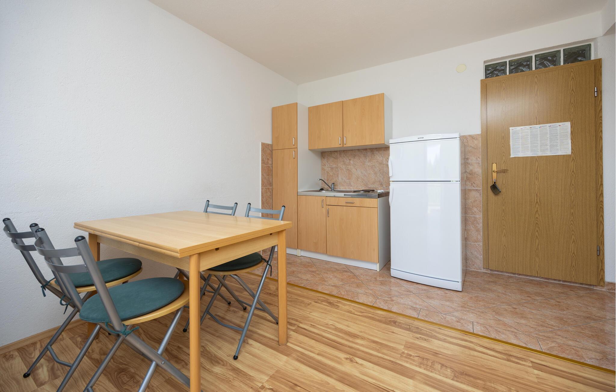 Dette feriehus ligger højt og er omgivet af pinjetræer, her ligger denne hyggeligt indrettede lejlighed til en vellykket ferie. En beliggenhed til en afslappet ferie. Det tager kun få minutter at køre til en lang kiesstrand og havet, så her kan I tilbringe mange dage med at bade og solbade under den varme kroatiske sommersol. Besøg de mange atmosfærefylde småbyer i området og find jeres yndlingsstrand ud til de lune Adriaterhav. Besøg også byerne Omiš og Makarska med mange former for sommerunderholdning.